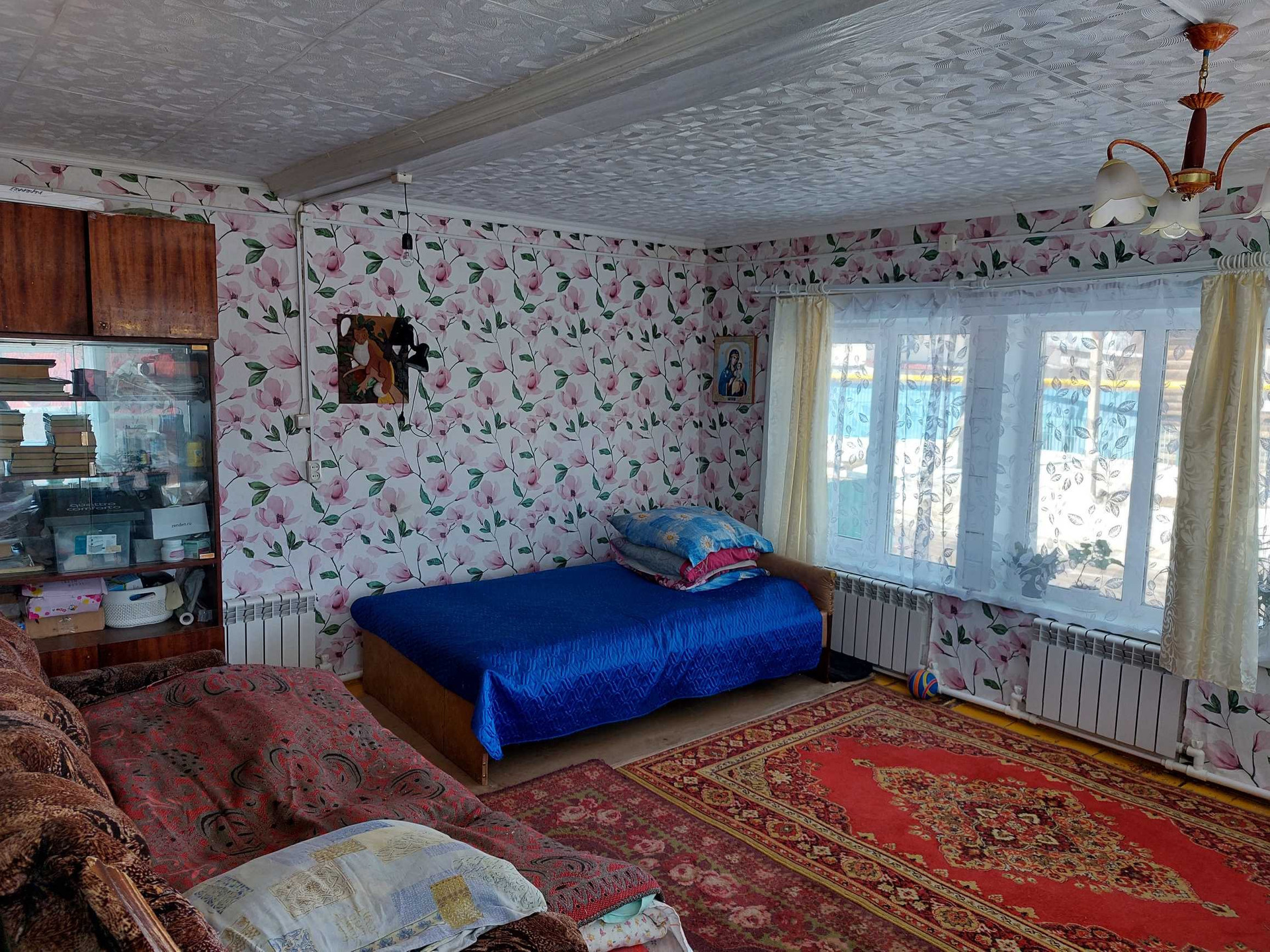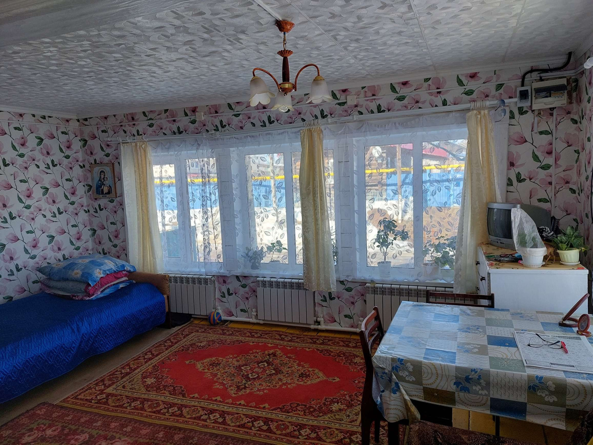 Забронирован. Дом расположен вдоль центральной асфальтированной дороги, расположение великолепное. Вид из дома выходит на остановку, вы никогда не пропустите свой автобус. Также через дорогу от дома есть продуктовый магазин,  что очень удобно. До социально значимых мест 10 минут ходьбы (детский сад, почта, администрация, школа).