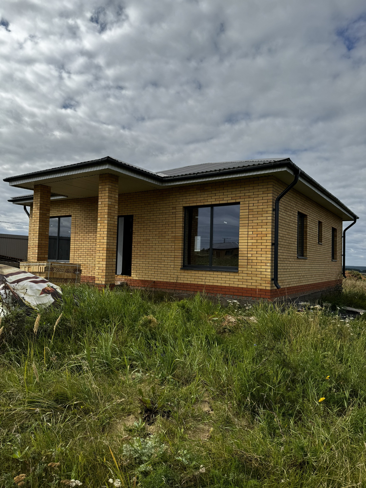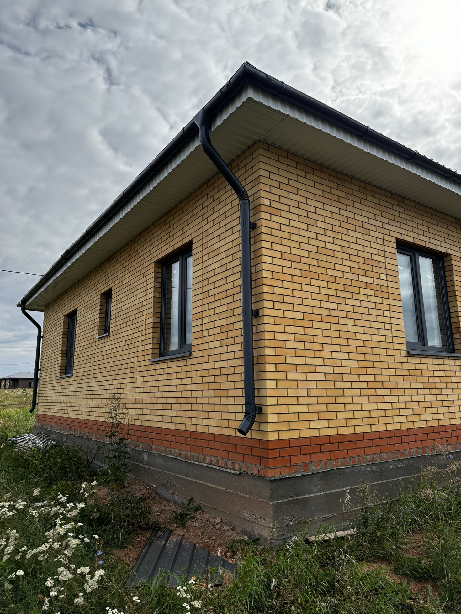 ▪️наружные стены из газобетона 300 мм Униблок D500. Облицовка- кирпич цвет солома