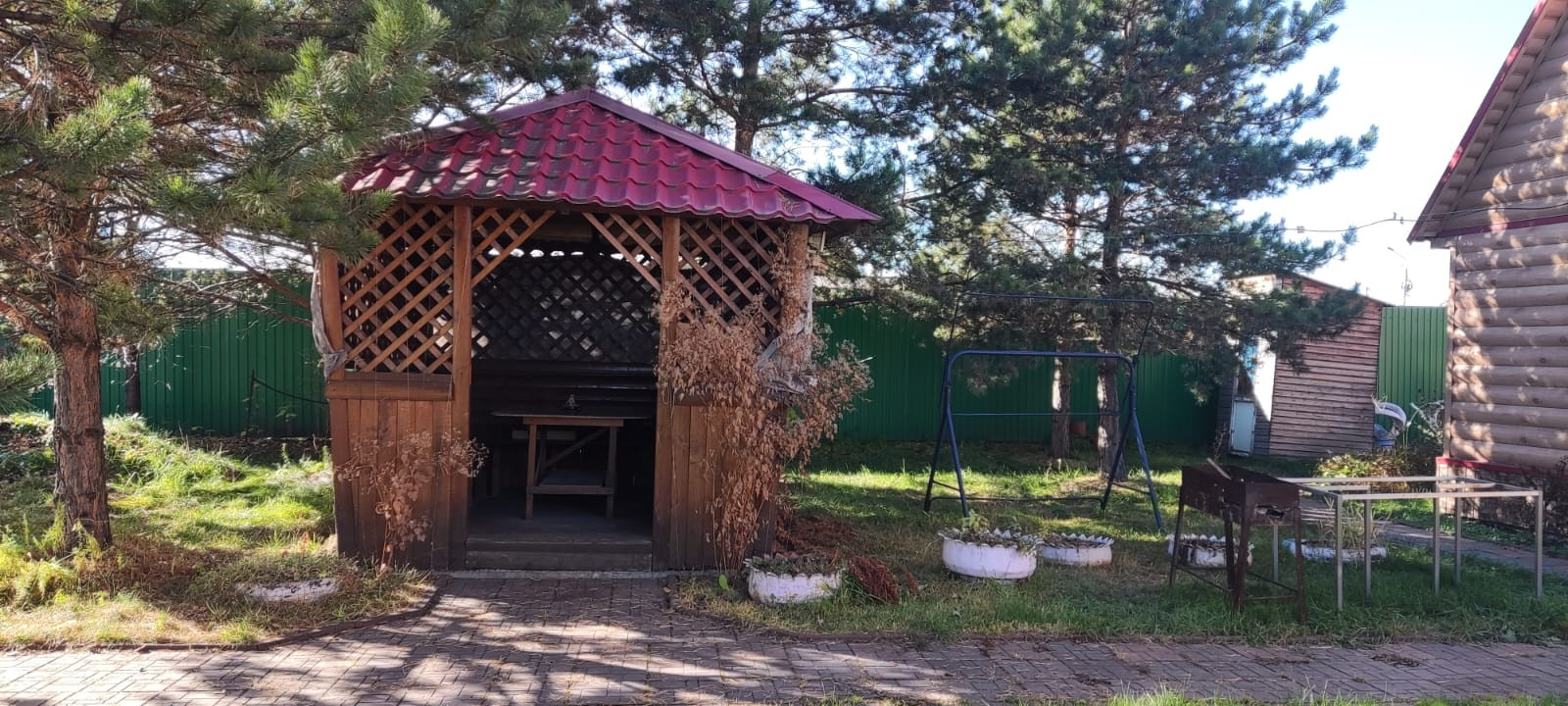Мансарда летней кухни оборудована под небольшую комнату и обшита вагонкой. Имеется большой котел отопления (Бункер "Стаханов" 15/40.),отопление в доме пока не проведено. На первом и втором этажах дома предусмотрены выводы для двух санузлов. На втором этаже частично произведена внутренняя отделка, на первом этаже отделки нет. Стиральная машинка автомат, кухонный гарнитур, которыми оборудована летняя кухня, а также душевая кабинка, которая имеется в бане, остаются покупателю в подарок. Усадьба частично огорожена забором (со стороны улицы-бетонный забор, со стороны соседей-металлопрофиль).В огороде имеются плодово-ягодные культуры: малина, смородина, крыжовник, яблоня с большими вкусными яблоками, несколько яблонь полукультурок с раннеспелыми и позднеспелыми яблочками, клубника, черешня, жимолость, вишня, слива, черноплодная рябина. На участке 2 поликарбонатные теплицы по 6 м, большой бак для полива в огороде, скважина. Придомовая территория засеяна газоном. Огород от придомовой территории отделён большими красивыми соснами. Есть деревянная беседка со столом и лавочками, проведено электричество. Электричество к усадьбе проведено 380 Вольт со всеми необходимыми согласованиями. Также имеется металлический гараж. Из декоративных деревьев, кроме сосен, на территории усадьбы имеются: сирень, калина, рябина, маньчжурский орех, дубки. На участке посажены: гортензии, розы, кематисы, пионы, лилии, хосты и др. Земля в собственности. Уличный туалет оборудован полноценной системой канализации (раковина с холодной водой, полотенцесушитель, унитаз со сливом в выгребную яму), электричество.