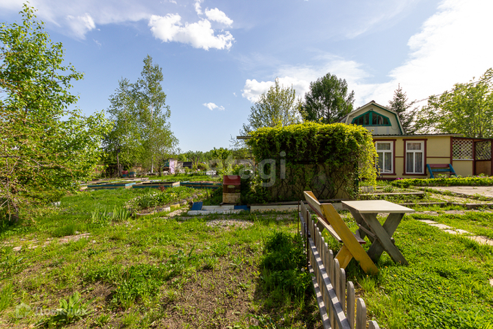 На участке имеется множество насаждений и плодородных деревьев(груша, кедр, ель, большое разнообразие ягод и множество видов цветов: лилии, пионы, и т д), грядки.