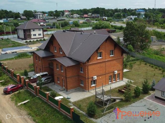 Продаем двухэтажный коттедж на две семьи (дуплекс), расположенный в с. Ильинка, по ул. Молодежная, 5.Общая площадь коттеджа 453 кв.м, в указанную площадь входит гараж 39 кв.м на два автомобиля. Построен в 2017 году из керамзитобетонных плит, с утеплением стен и кровли, облицован декоративным кирпичом. Фундамент дома ленточного типа по технологии многоэтажного строительства. Участок земли 21 сотка, в собственности.Особенностью дома является наличие отдельных входов и обособленность северной и южной его частей по первому и второму этажам. Это даёт возможность комфортно проживать двум семьям. Дом строили при грамотном проектировании и инженерном сопровождение на всех этапах строительства. Использовали только качественные материалы. Тёплые полы труба Д20 PE VALTEC, инсталляции Grohe, кабель по ГОСТ, импортный керамогранит и кафель, краски General Paint. Оборудованы водоотводящие дренажи фундамента, дренажи сбора поверхностный вод. отмостка шириной 2 метра. Устроен контур заземления. Все ответственные работы выполнялись русскими мастерами.Предусмотрено три въезда на участок через автоматические ворота. Гараж внутри коттеджа оборудован двумя гаражными автоматическими воротами DoorHan. Два отдельных входа со стороны главного фасада и три выхода в сад. Лестница на балкон второго этажа, со стороны сада.На территории участка (южная часть) расположена баня (36 кв.м), возможно использование как гостевого домика.Платежи за коммунальные услуги Вас приятно удивят. Высокая энергоэффективность дома. Канализация - шамбо 25 м3, стенка 10 мм. Вода центральная, газ заведен в дом, отопление тёплые полы (котлы газ/электричество). Электричество 80 квт, счетчики тариф день/ночь. Готовы к продаже части дома (в каждую часть войдет свой участок, гараж, въезд), раздел выполним в течение месяца после подтверждения намерения о покупке. В селе есть вся социальная инфраструктура, чистку дорог и освещение улиц осуществляет муниципалитет.Все достоинства дома можно оценить только побывав в нем.