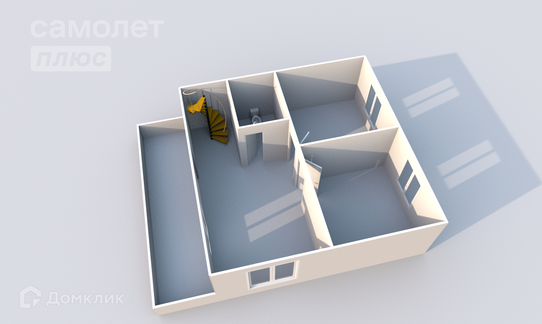 1 этаж: гостиная - кухня, сан узел, 2 комнаты