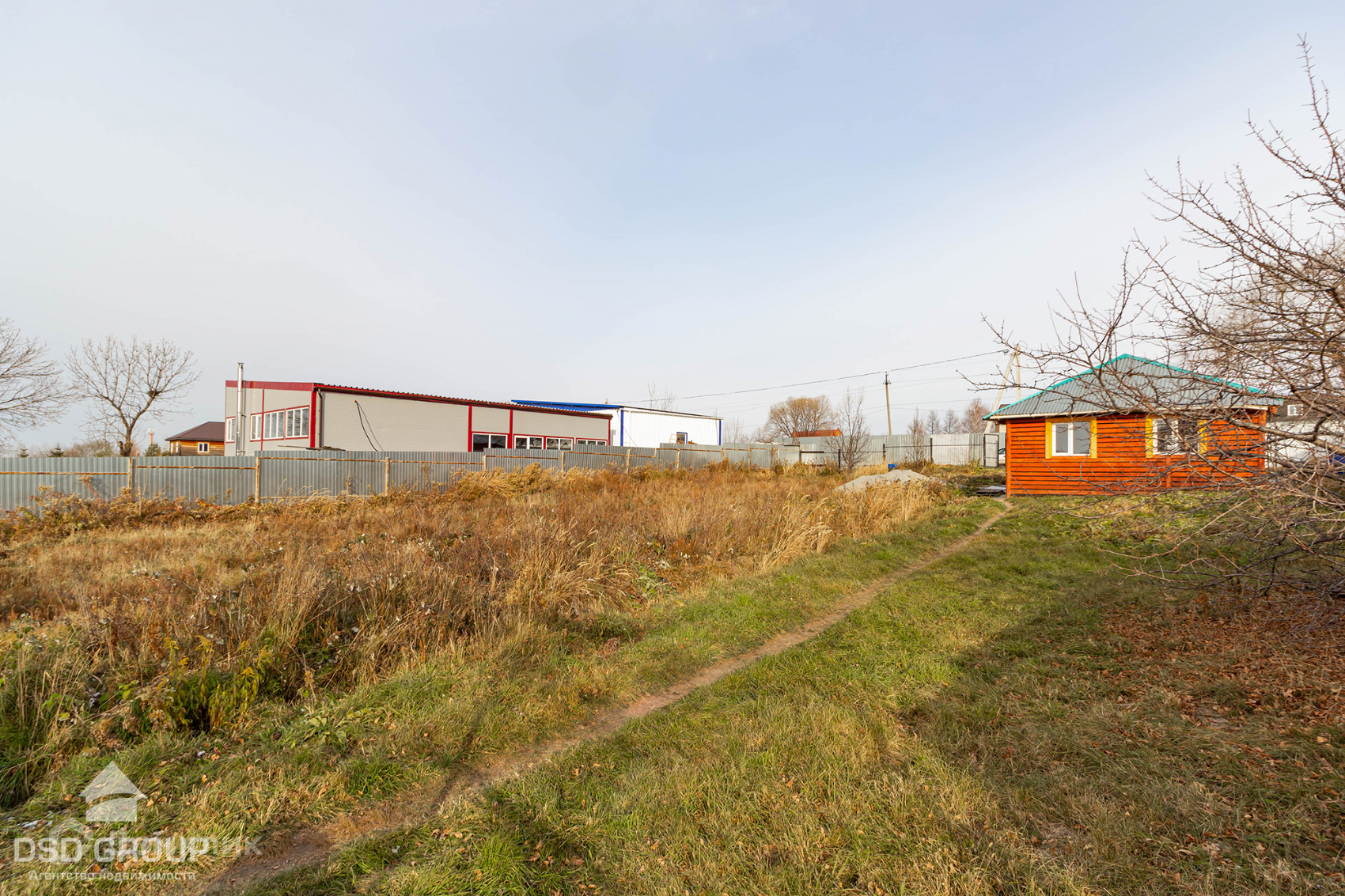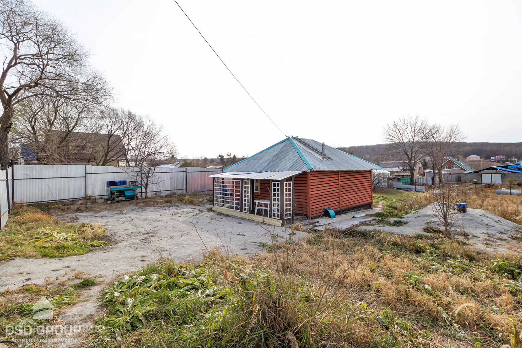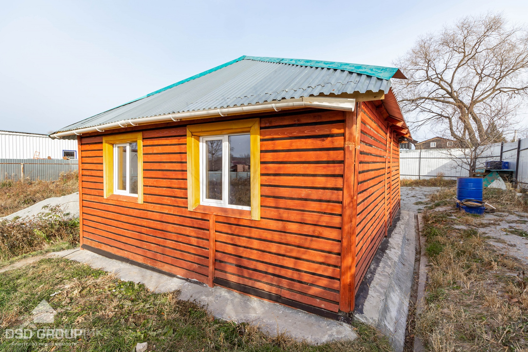 Огорожен забором.