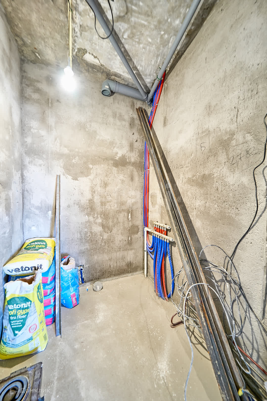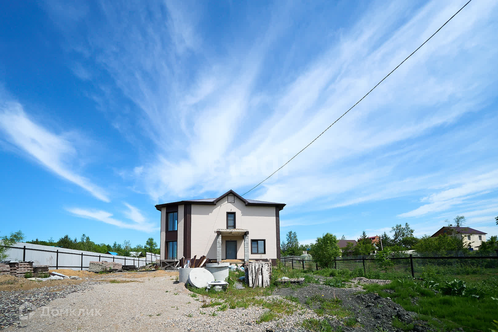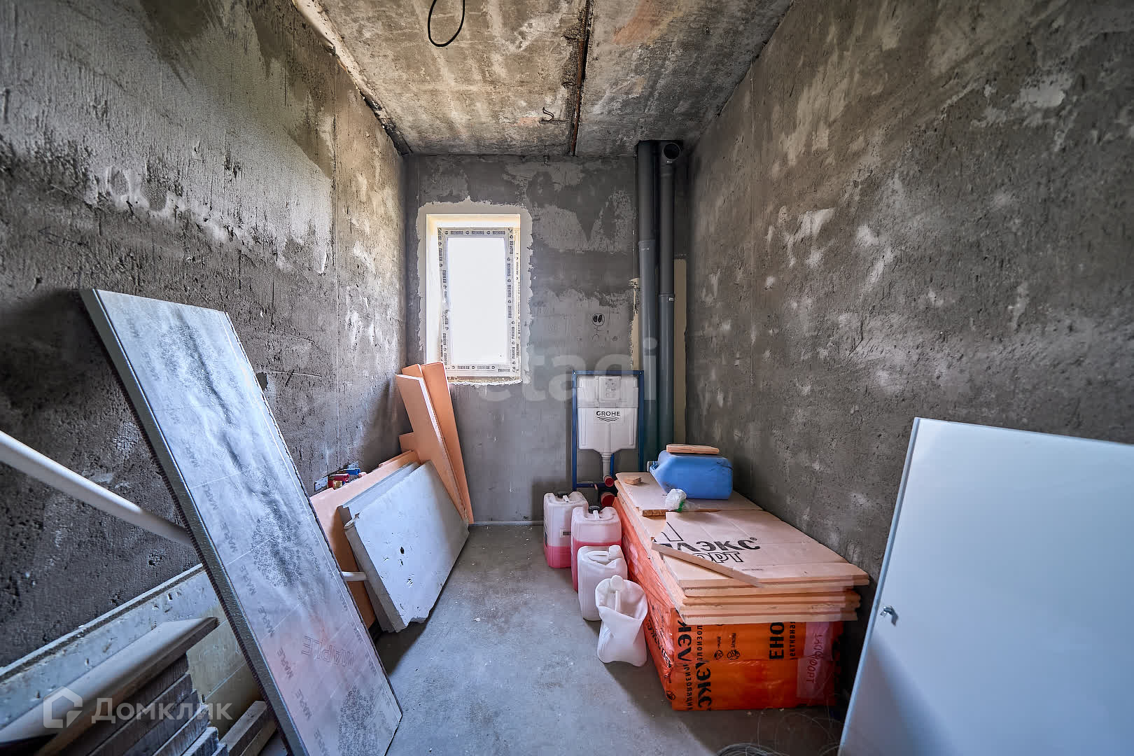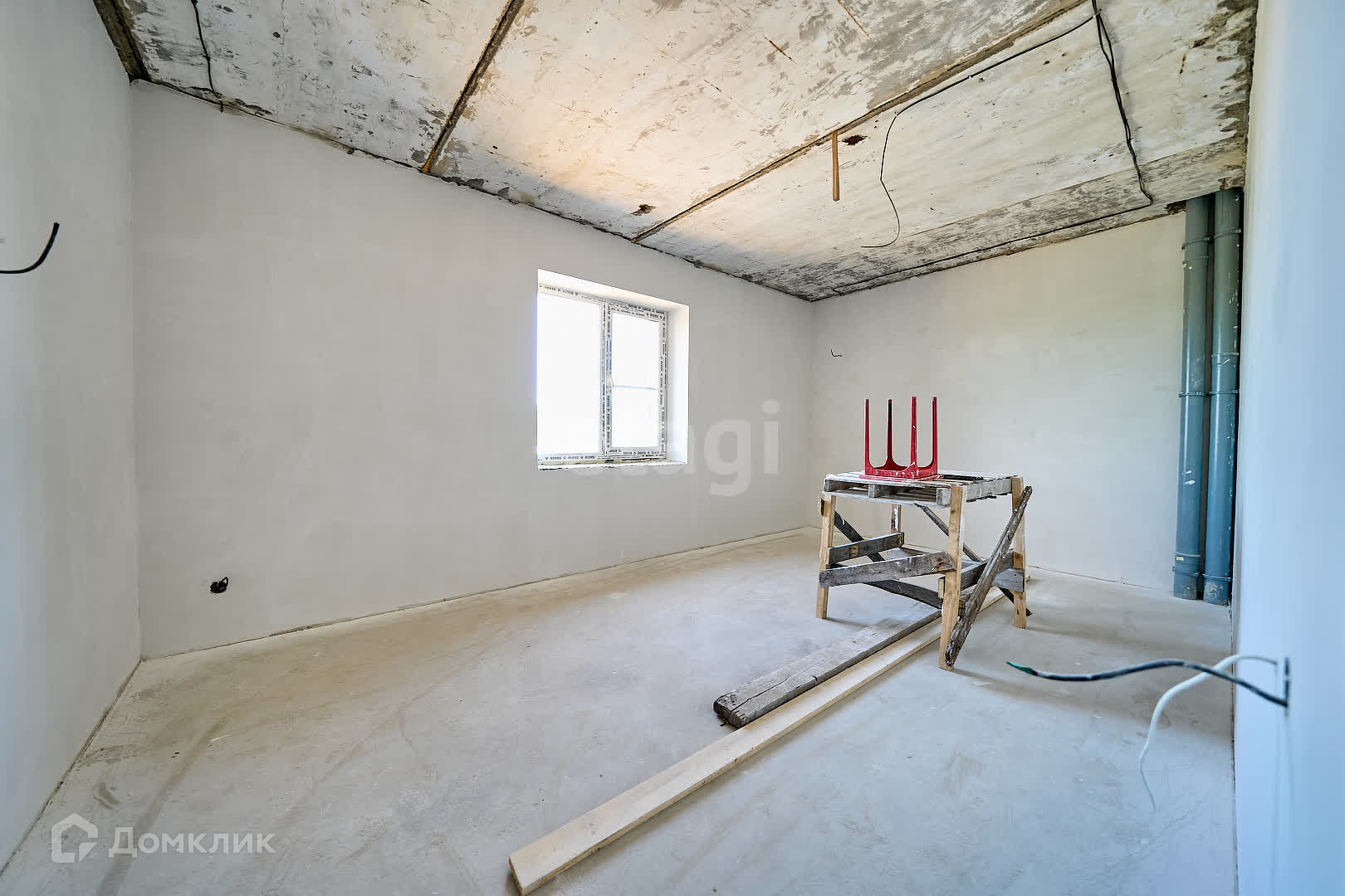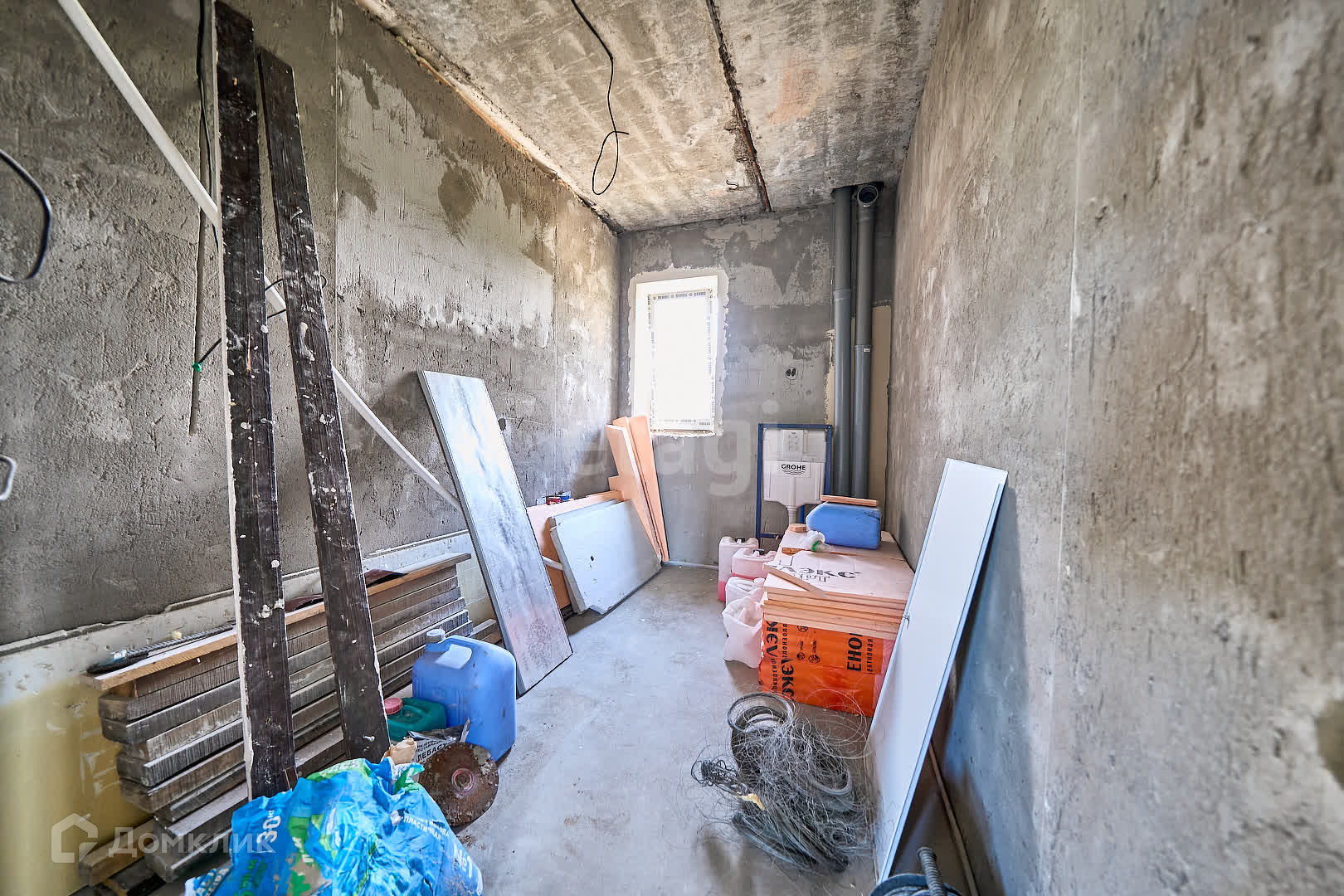 В доме проделаны все грязные работы: смонтирован теплый пол (подготовлены трубы к газовому отоплению), проведена эл. проводка, проведены трубы водоснабжения, стены оштукатурины финишной штукатуркой, на полу стяжка, капитальная лестница на второй этаж, окна пластиковые 4 камерные в доме тепло.