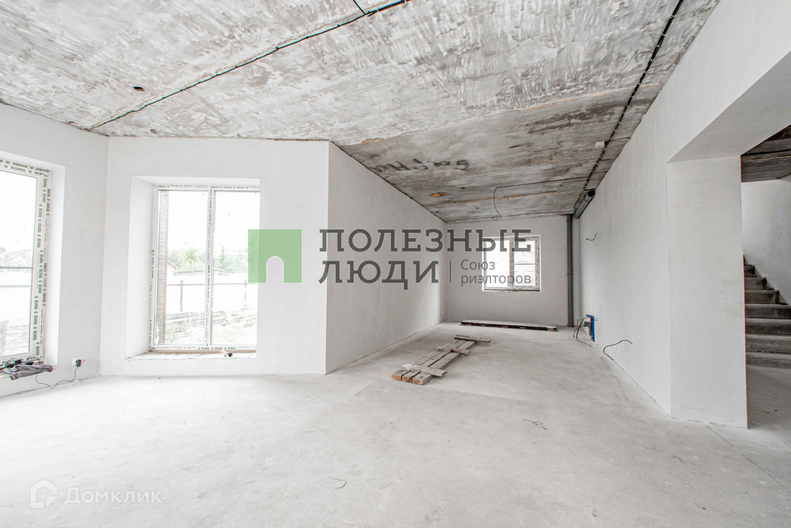 На втором этаже находятся четыре жилые комнаты и санузел. Под домом расположен большой и сухой подвал. В доме выполнена предчистовая отделка, проведена вся электропроводка, установлен тёплый пол, стены оштукатурены и готовы к поклейке обоев. Также установлены трубы водоснабжения и все выводы под канализацию.