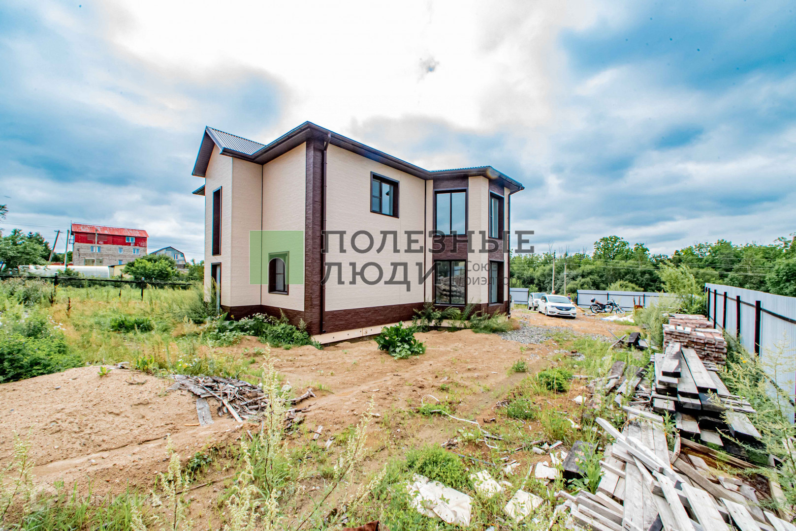Общая площадь составляет 200 квадратных метров. Дом выполнен из отсевоблока, утеплён и отделан фасадом Ханьи.