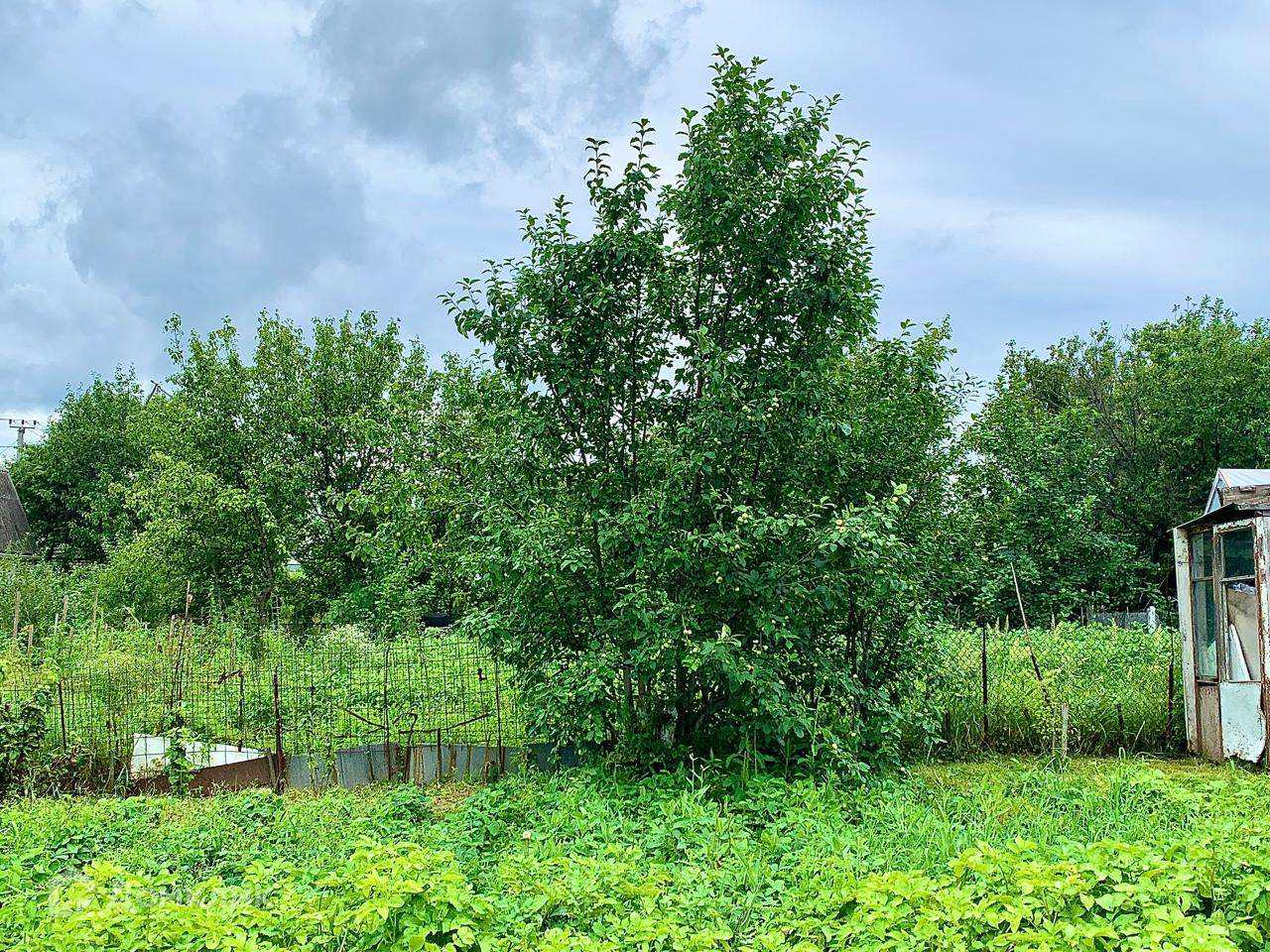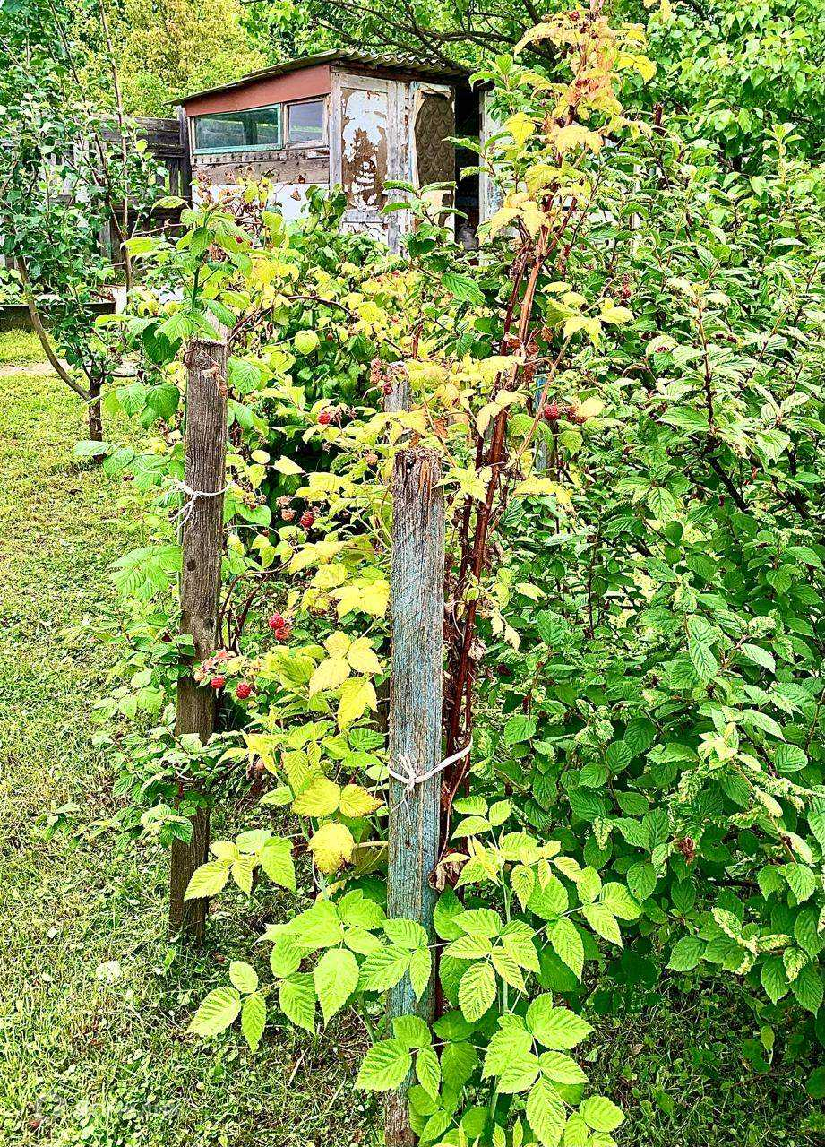 Участок очень ухоженный, имеются посадки: яблони, груши, черешня, вишня, несколько видов смородины и малины, жимолость.