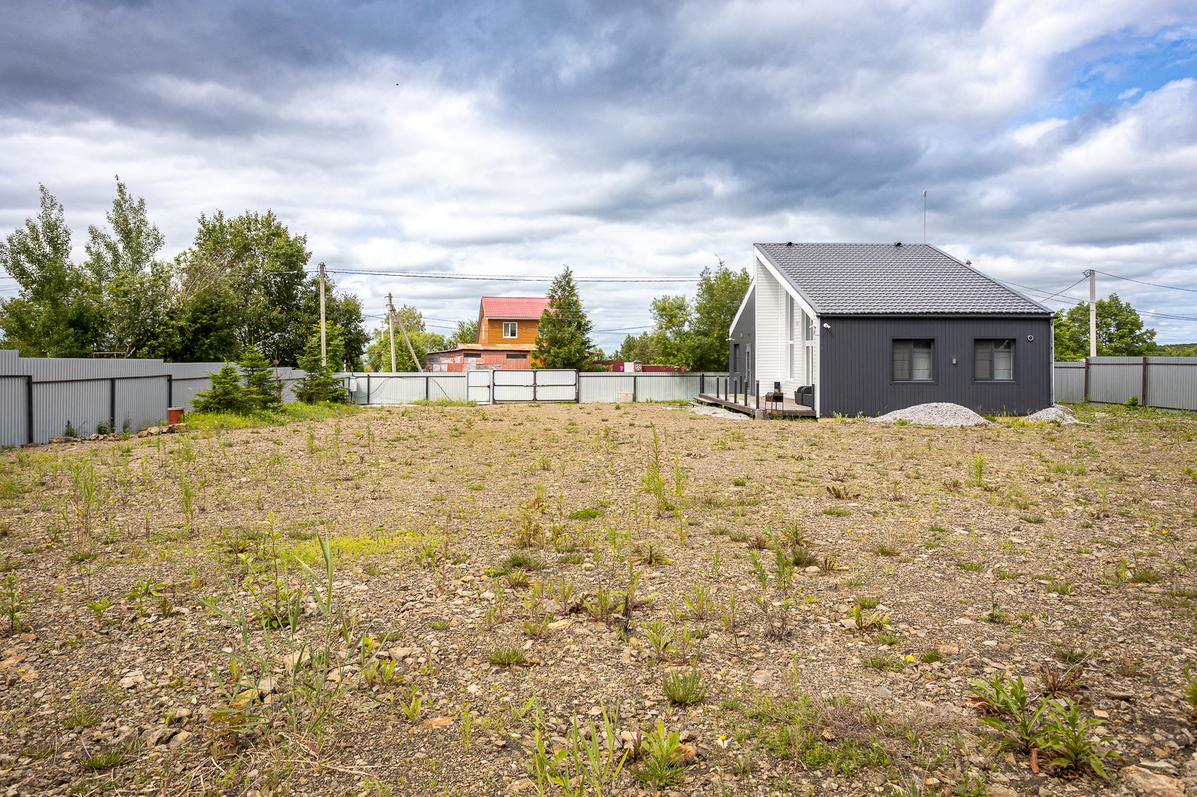 Отсыпан, сделан дренаж. Огорожен забором. Есть домик для хранения хоз/инвентаря и "всего самого нужного".