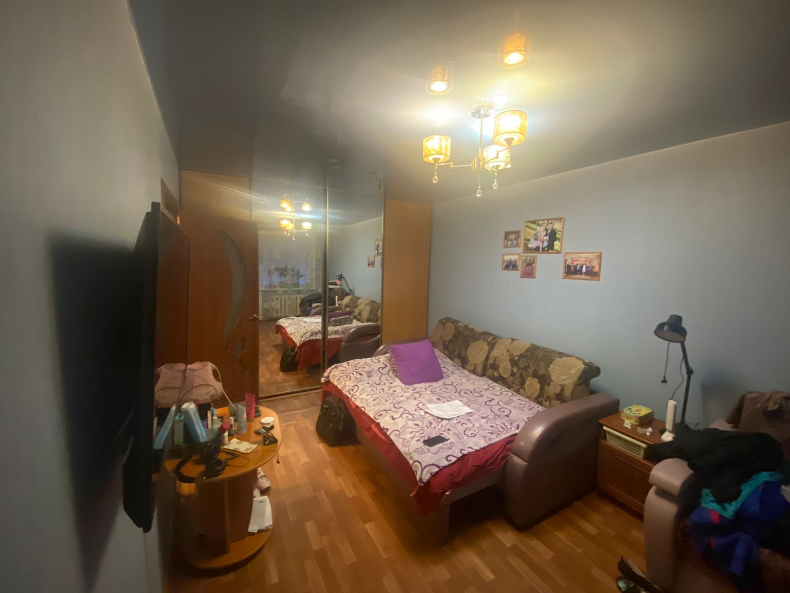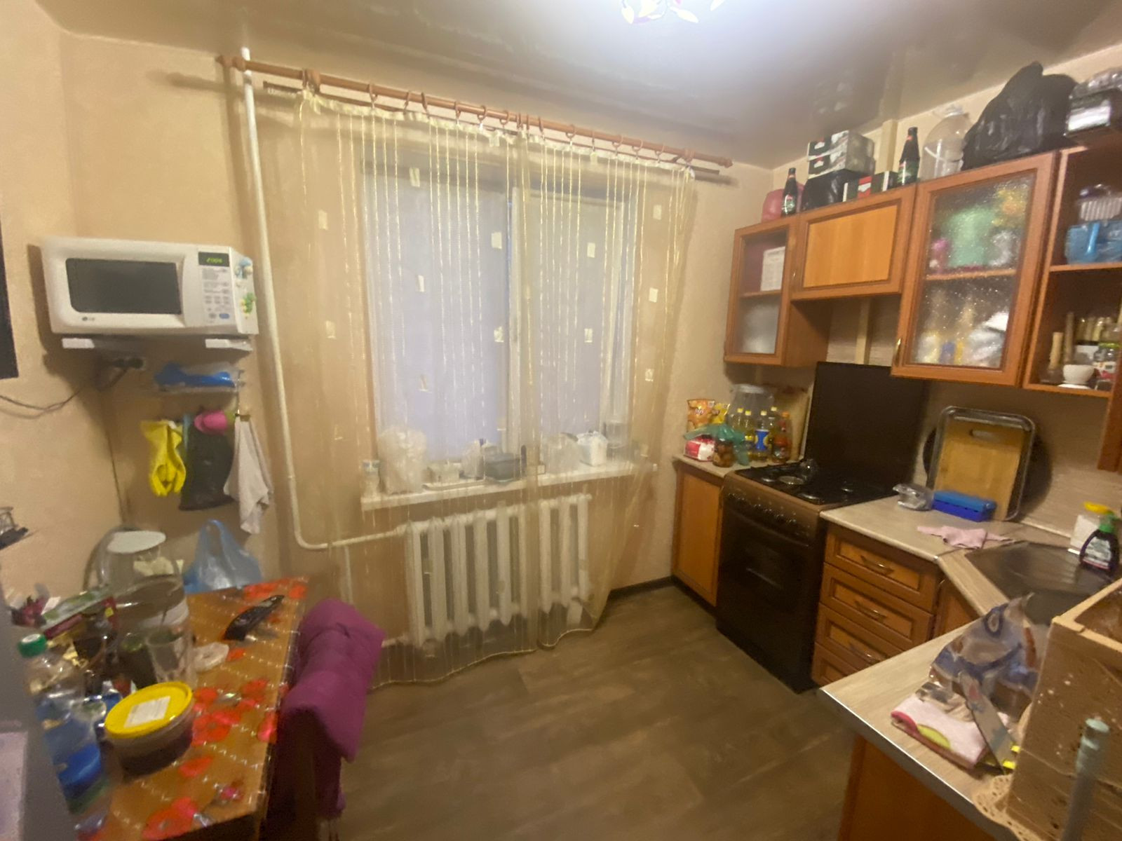 - в квартире остается абсолютно все, что Вы видите на фотографиях: диван, горка под ТВ, кухонный гарнитур, мягкий уголок, шкаф-купе, компьютерный стол, компьютерный стул, кондиционер, микроволновая печь, плита, стиральная машина;
