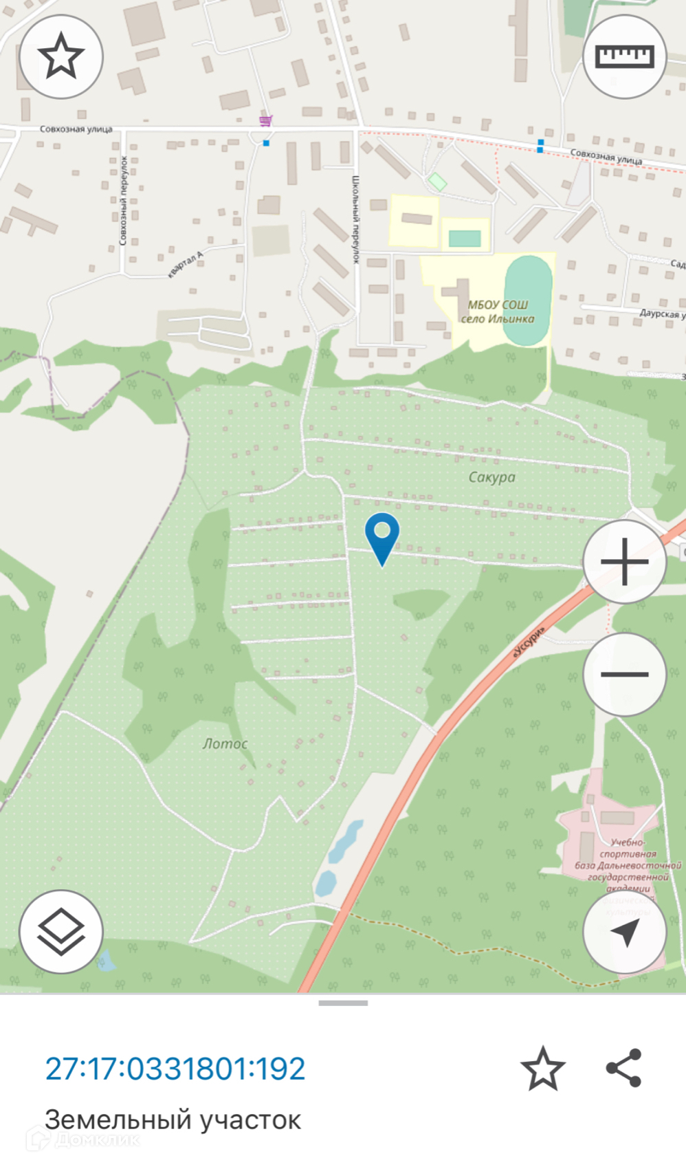 Продаётся отличный участок в СНТ Лотос село Ильинка Хабаровского района . Подходит под ДВ ипотеку!!!  Перспективный район для строительства дома. Соседние участки уже строятся. Хорошие подъездные пути. Есть электричество,вода (озеро 50 метров от участка), заведения газопровода до 2024 года. Заезд на участок , как и с села Ильинка, а так же с Федеральной трассы. Остановки общественного транспорта в 10 минутах. Хорошая инфраструктура, магазины, д/ сад, школа в пешей доступности!!! Цена подарок!!!!
