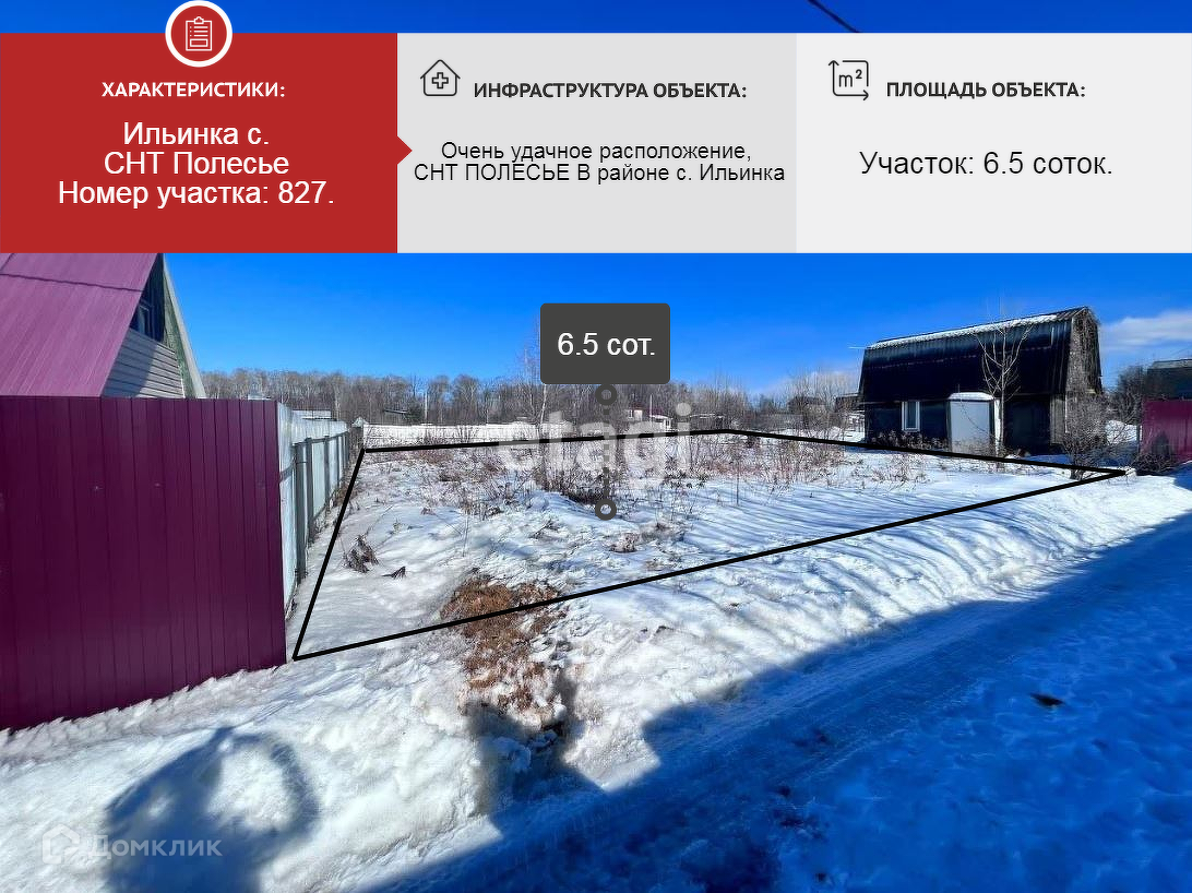 Участок в СНТ, 6.5 сот. на продажу в селе Ильинка, Совхозная улица