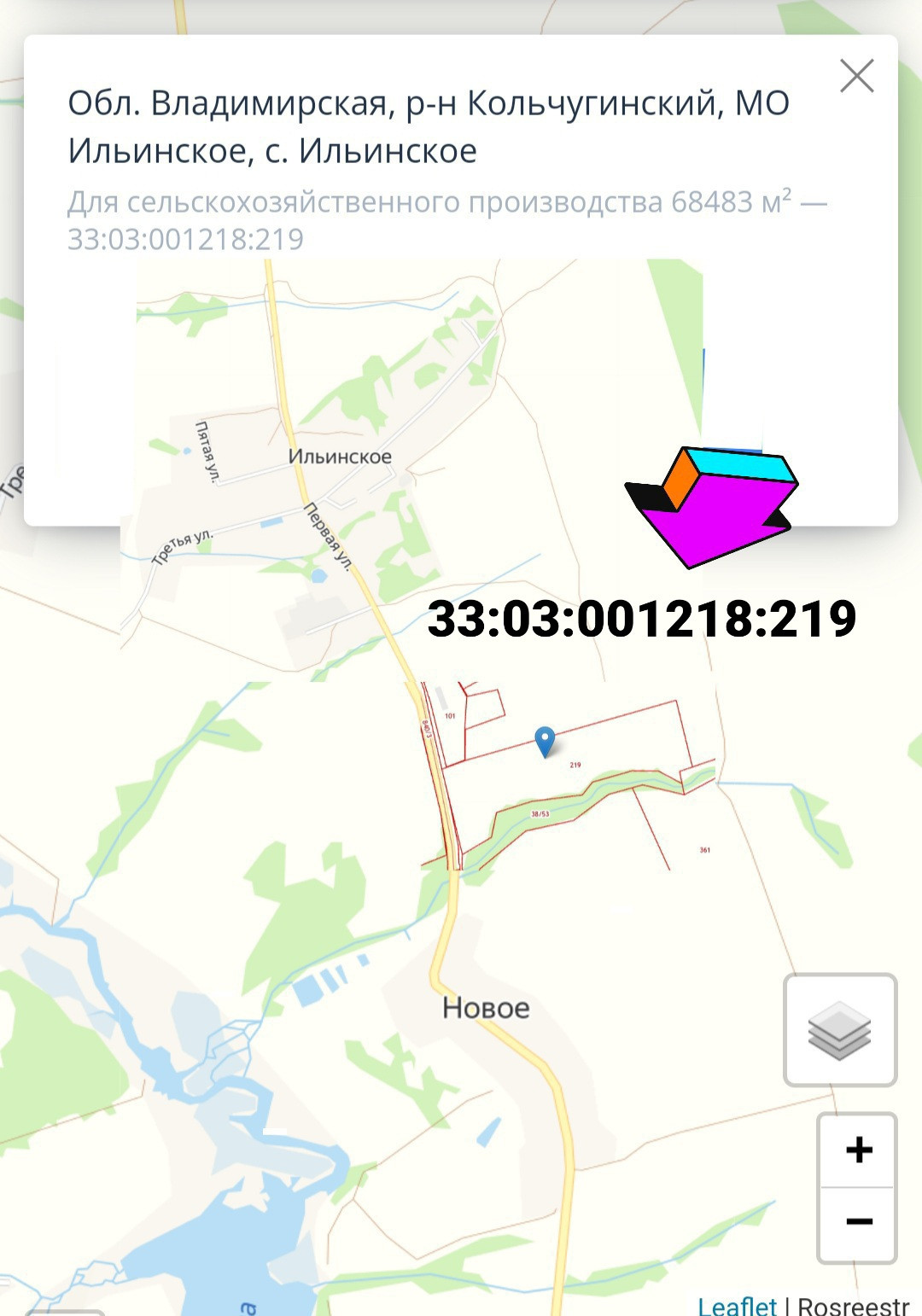 Участок 6,85 га. в границах населенного пункта, 120 км. от Москвы, Щёлковское, Ярославское или Горьковское ш., Владимирская область, р-н Кольчугинский, МО Ильинское, с.Ильинское, сельхоз назначения, Кадастровый номер: 33:03:001218:219 . Границы обозначены на публичной кадастровой карте, межевание проведено, все документы в порядке, по новому закону возможно построить родовое имение - фермерский дом без всяких разрешений. Можно использовать как инвест проект построив несколько домов на продажу, с присвоением адреса к существующему населенному пункту, либо создать СНТ. Т.Е. возможно использовать как под сельское хозяйство или фермерство, так и застройкой жилых и дачных домов. Единственный участок в продаже, у которого по границе проходит электричество и газ, круглогодичный подъезд асфальт до участка. От города 13 км . Земля обрабатывалась, рядом родник, в 350 метрах водохранилище , живописные места. Собственник физлицо, более 10 лет.