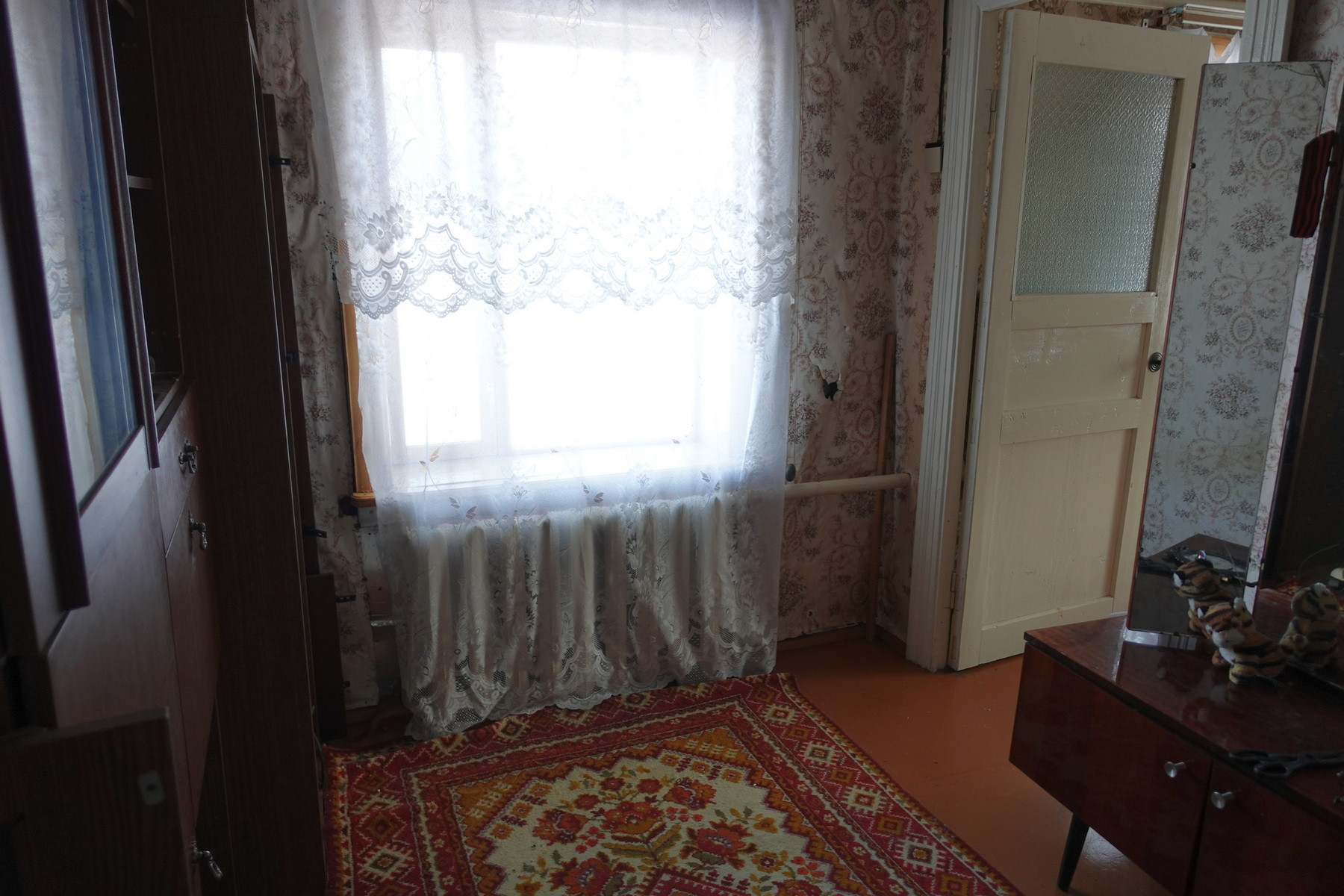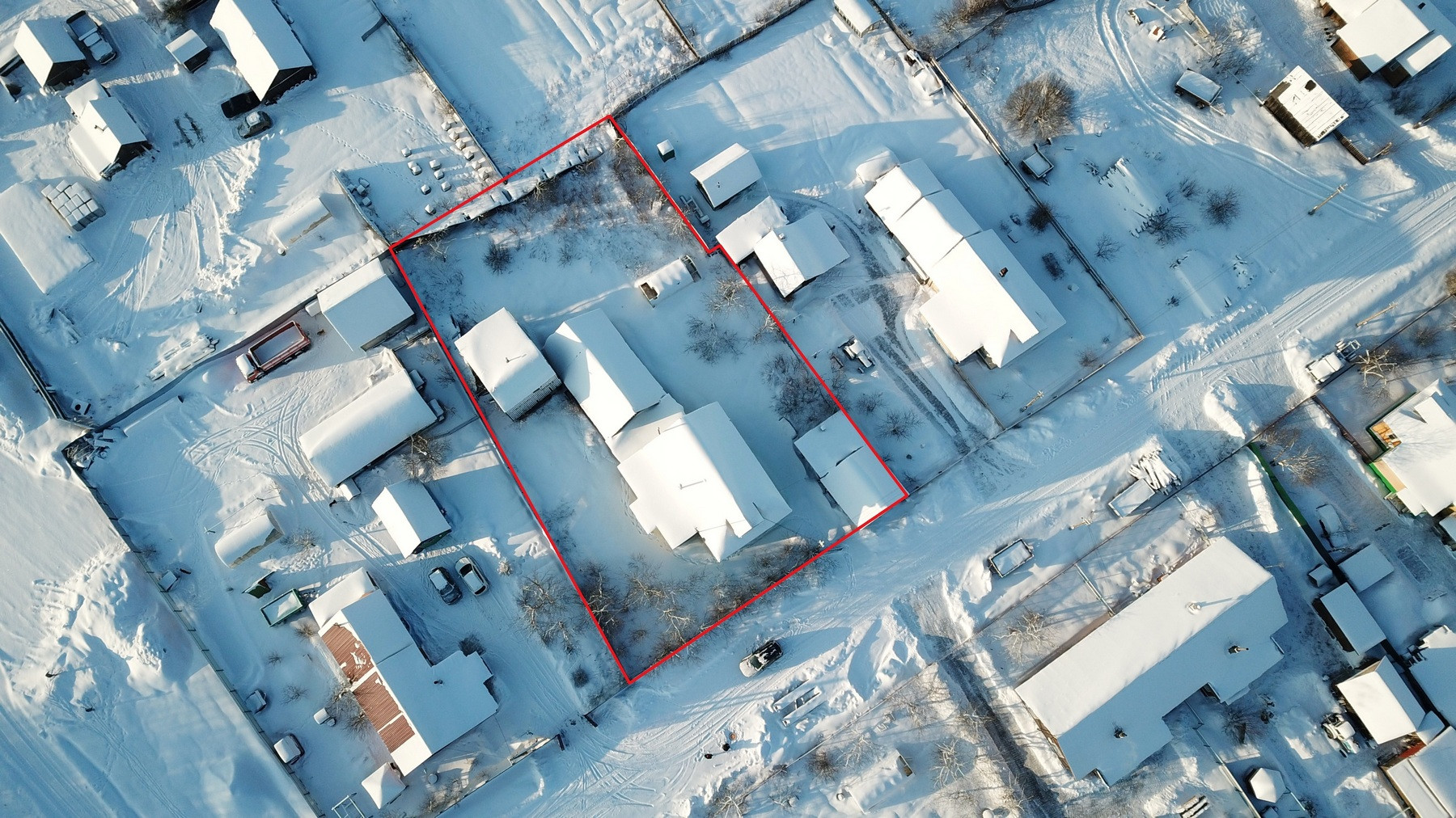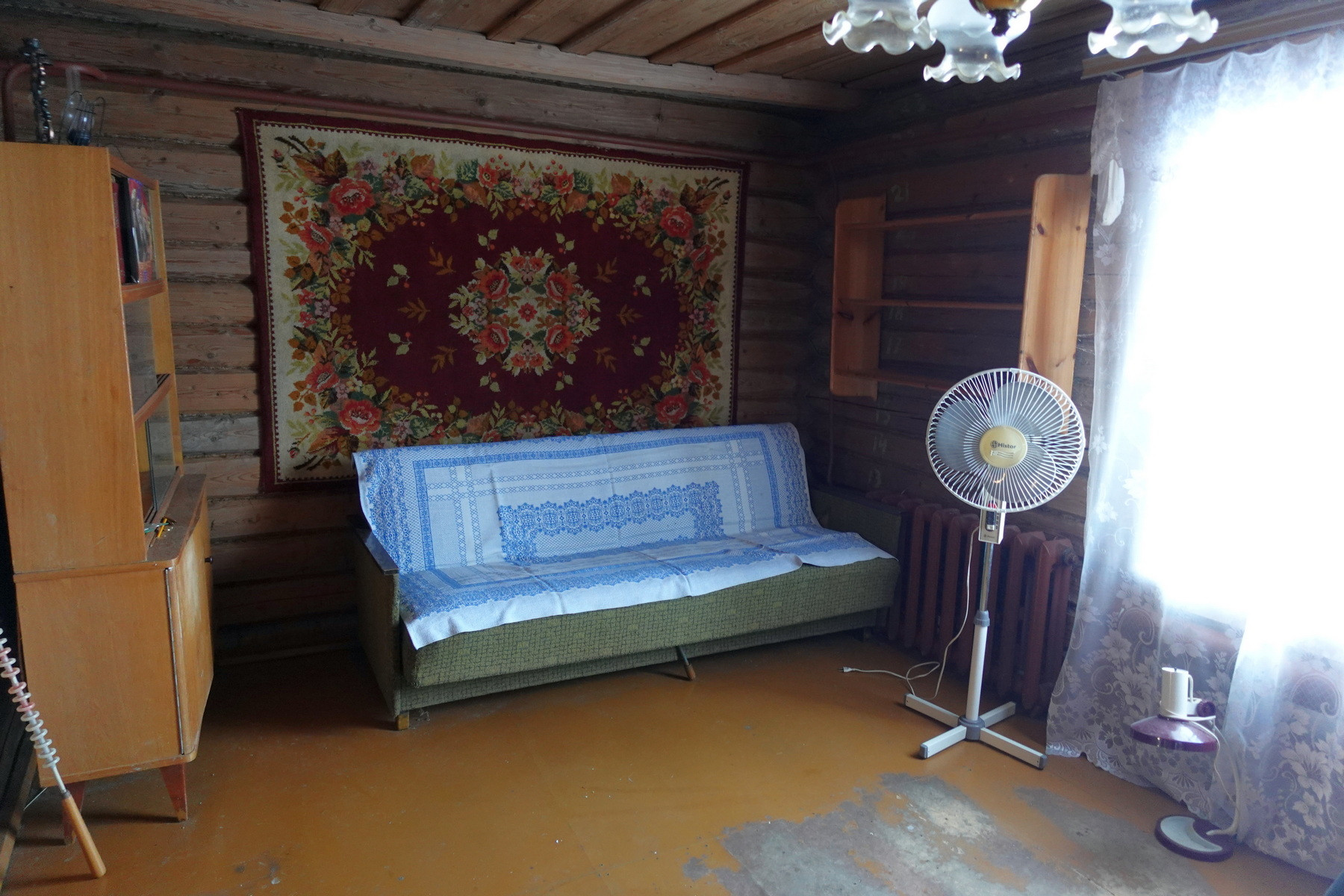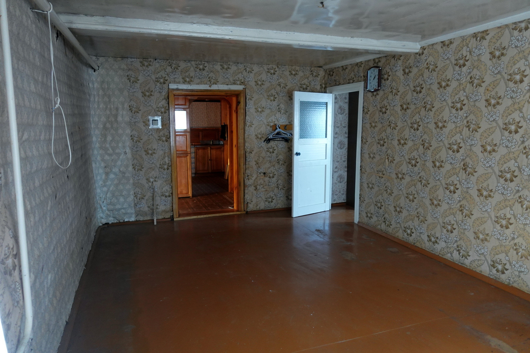 Четыре комнаты, кухня, прихожая, санузел, котельная, веранда. Высокое сухое подполье для хранения продуктов. Множество подсобных помещений и хозяйственных построек (баня, гараж, столярка и т.п.). Снаружи дом отделан облицовочной доской (тёсом), внутри: комнаты обклеены обоями, кухня и прихожая - деревянными панелями. Отопление – твердотопливный котёл (дрова, уголь), по всему дому разведены чугунные радиаторы. Центральное водоснабжение (водонапорная башня). Так же на участке есть скважина. Автономная канализация.