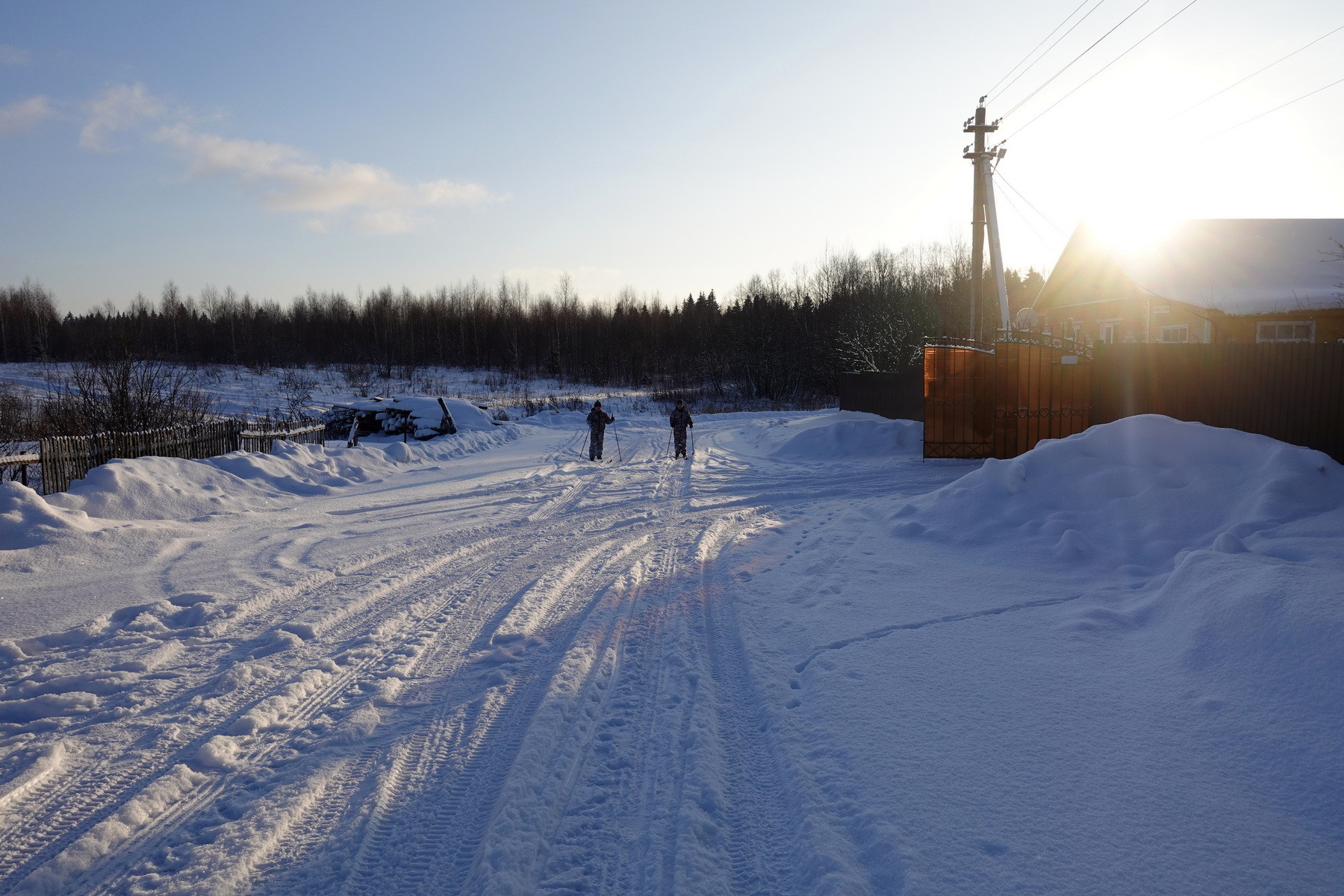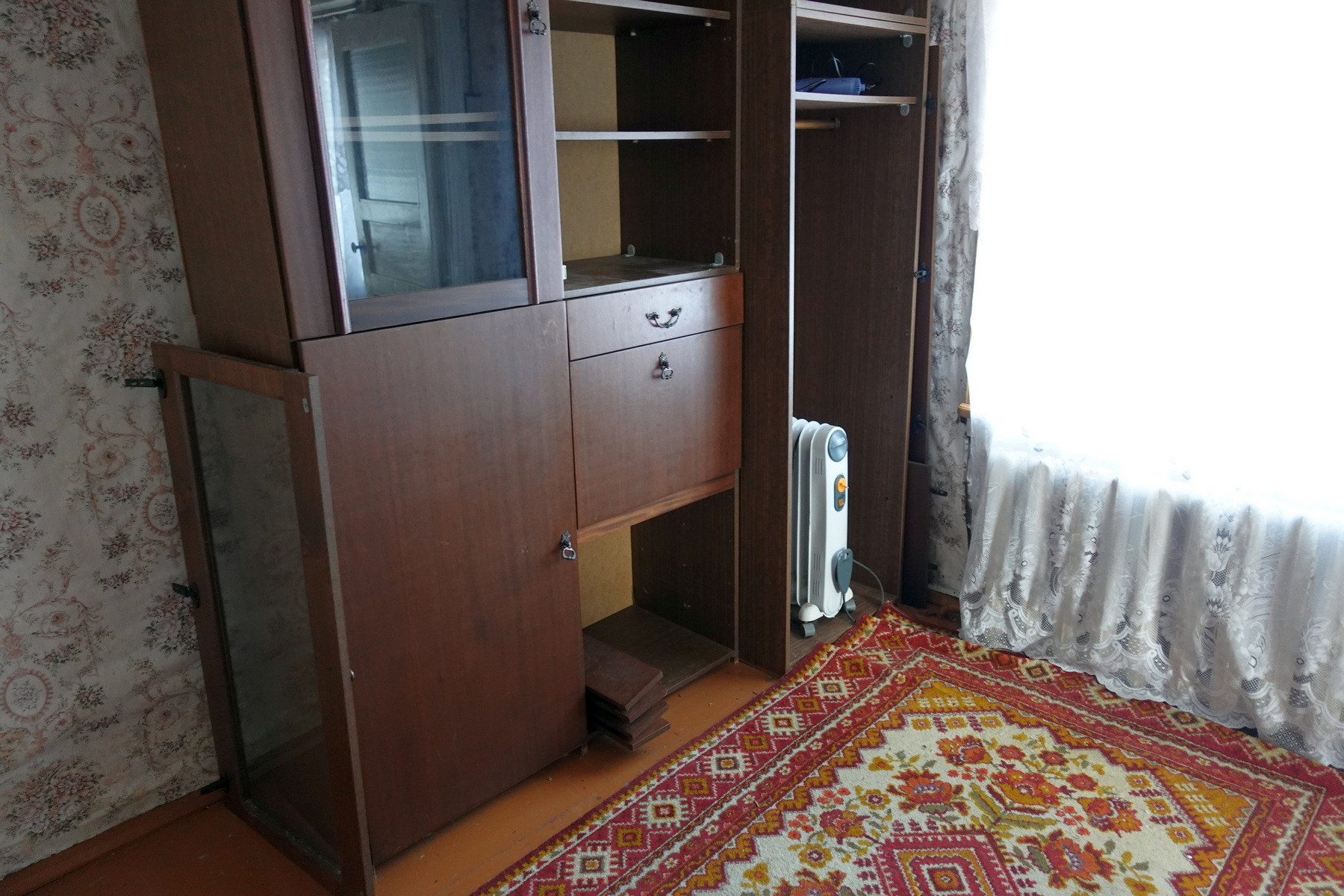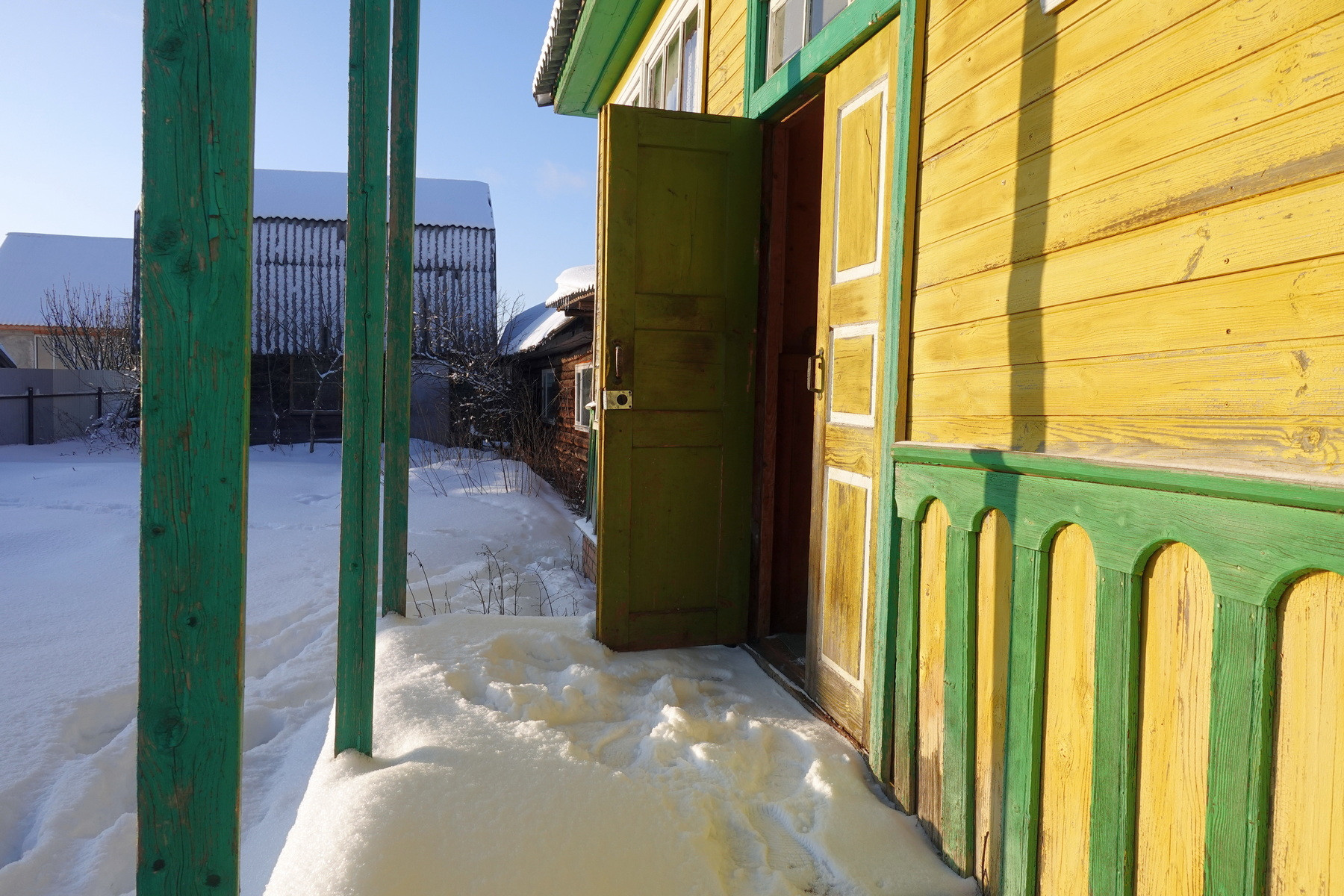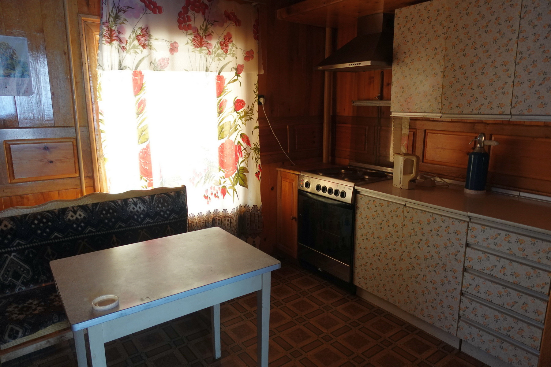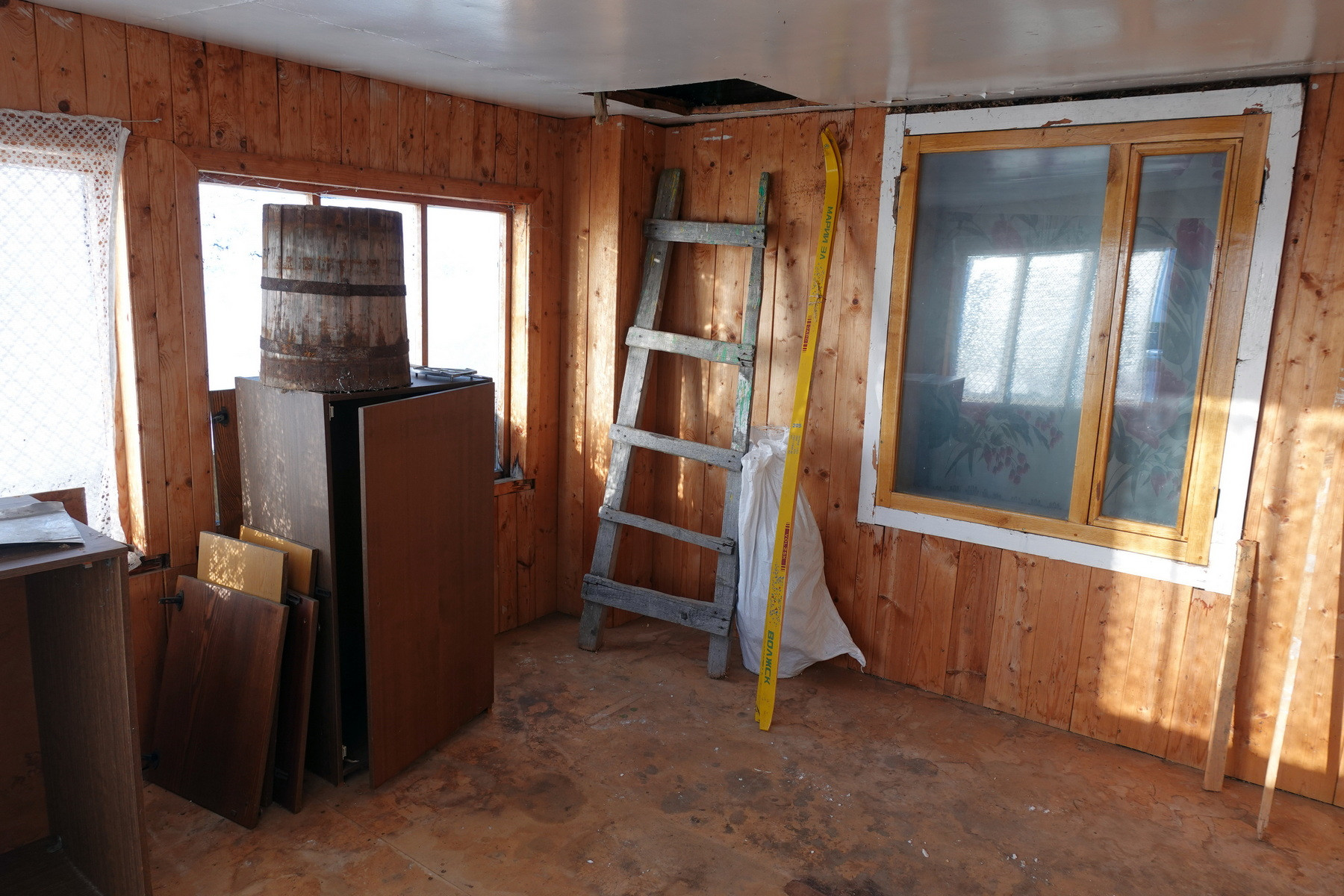 Четыре комнаты, кухня, прихожая, санузел, котельная, веранда. Высокое сухое подполье для хранения продуктов. Множество подсобных помещений и хозяйственных построек (баня, гараж, столярка и т.п.). Снаружи дом отделан облицовочной доской (тёсом), внутри: комнаты обклеены обоями, кухня и прихожая - деревянными панелями. Отопление – твердотопливный котёл (дрова, уголь), по всему дому разведены чугунные радиаторы. Центральное водоснабжение (водонапорная башня). Так же на участке есть скважина. Автономная канализация.