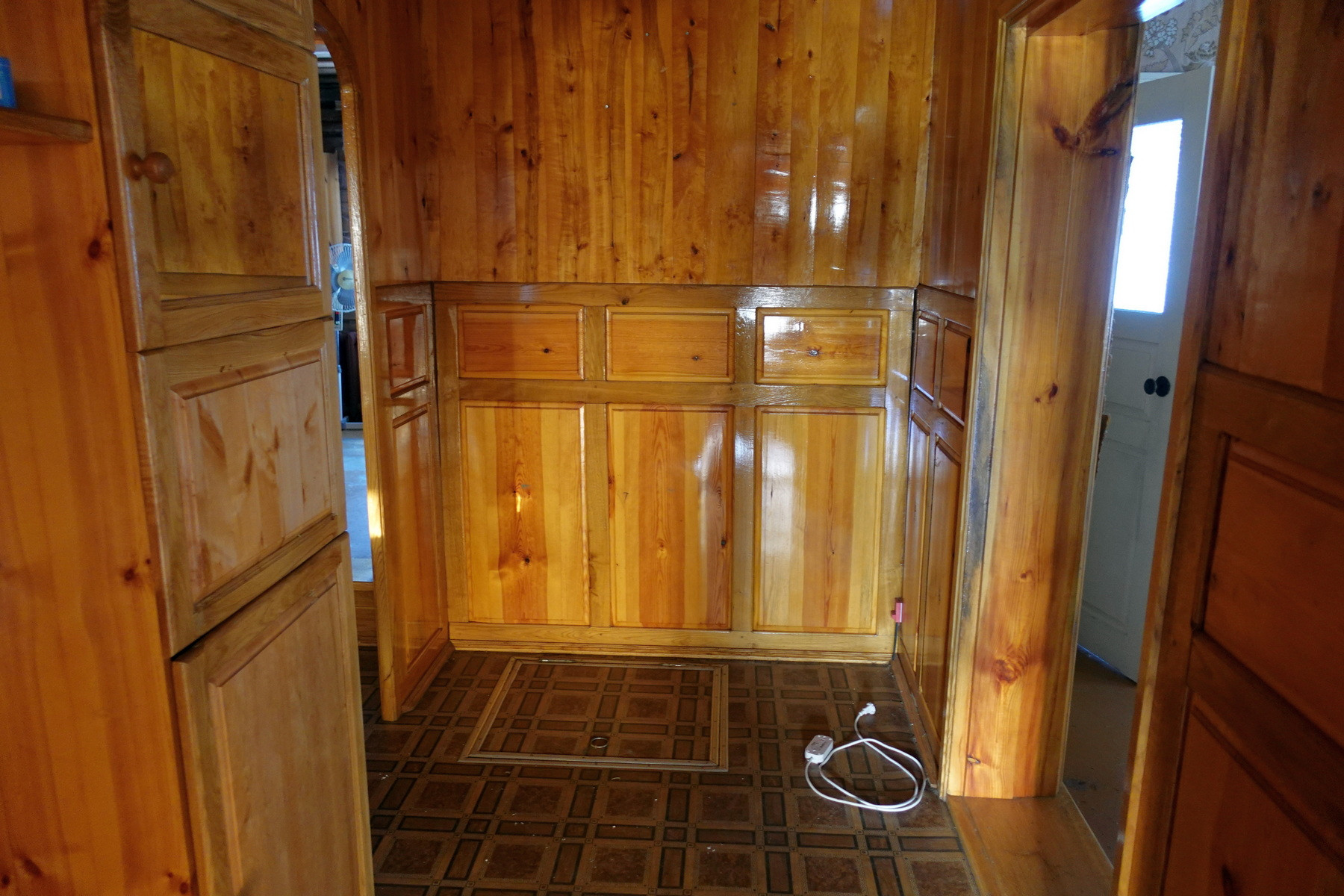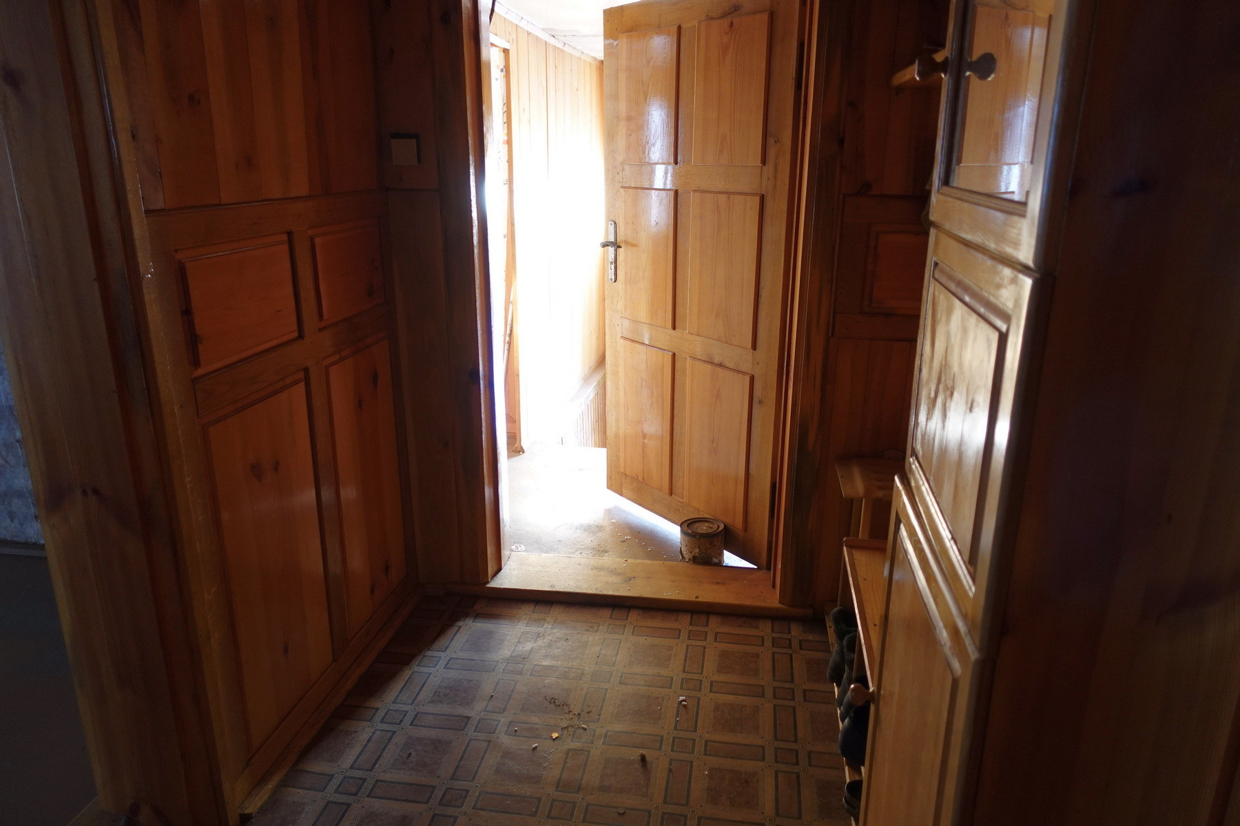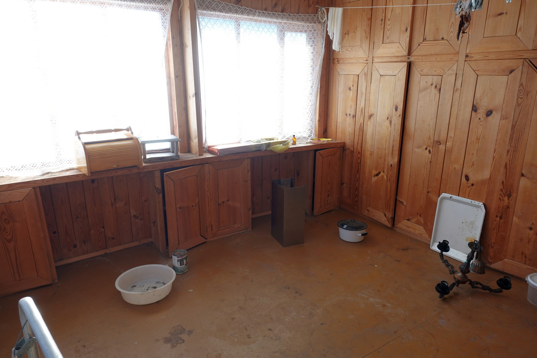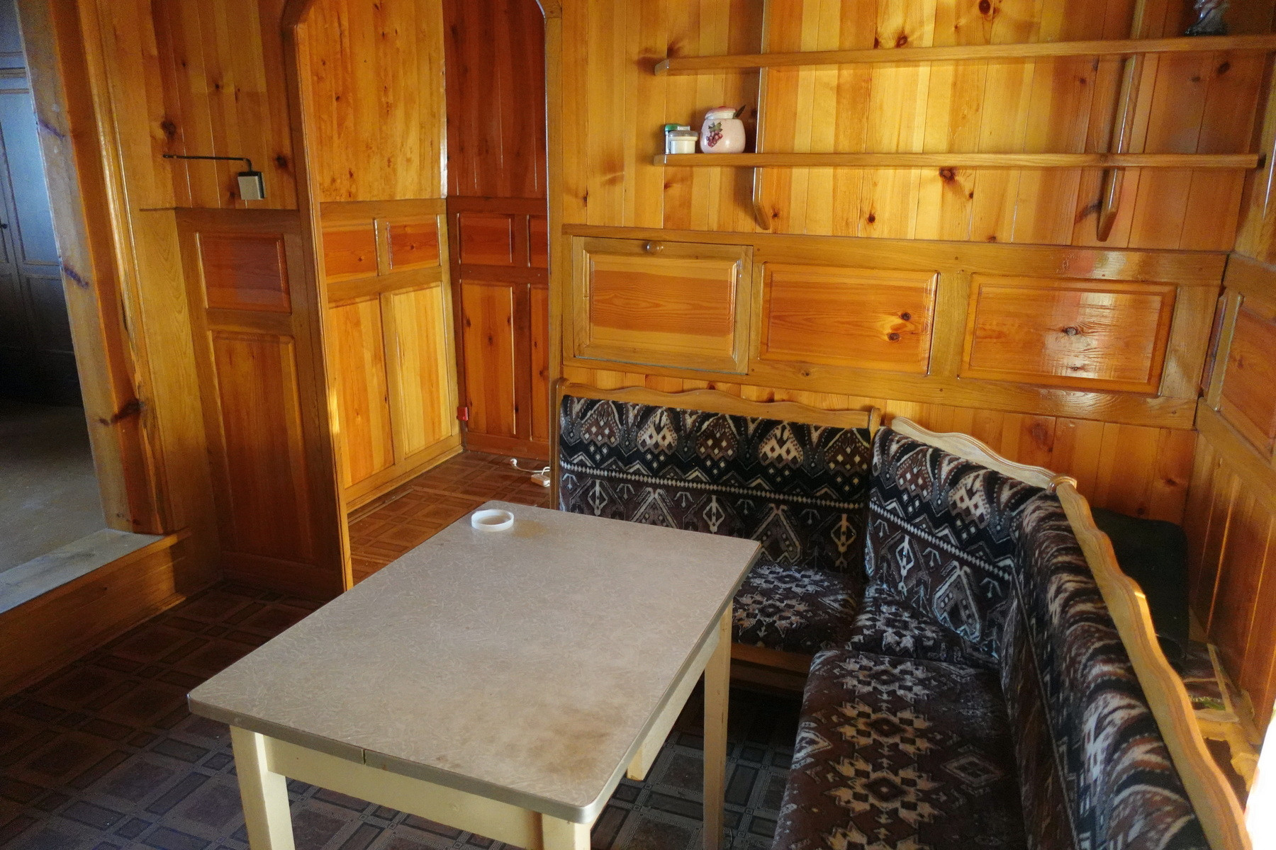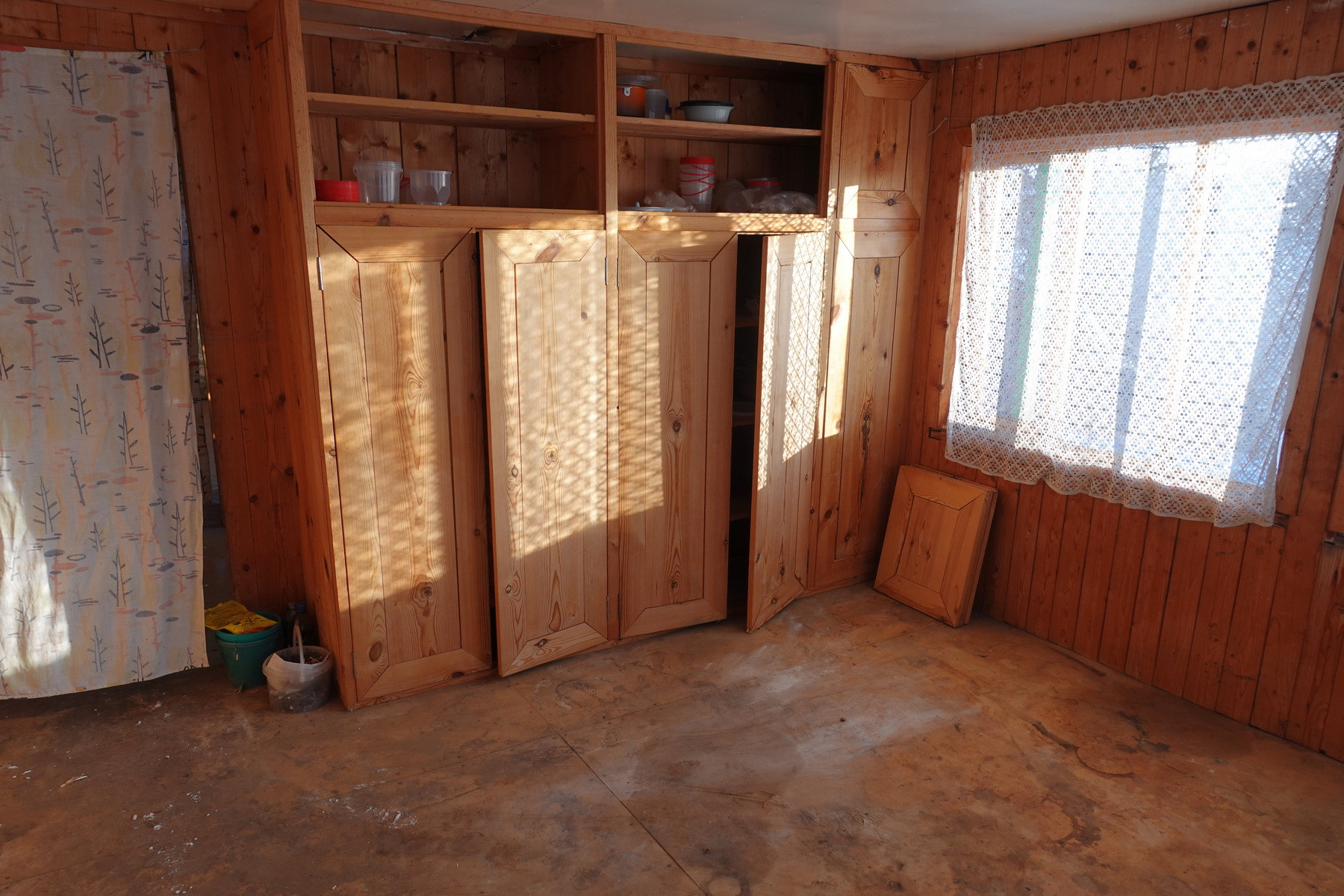 Четыре комнаты, кухня, прихожая, санузел, котельная, веранда. Высокое сухое подполье для хранения продуктов. Множество подсобных помещений и хозяйственных построек (баня, гараж, столярка и т.п.). Снаружи дом отделан облицовочной доской (тёсом), внутри: комнаты обклеены обоями, кухня и прихожая - деревянными панелями. Отопление – твердотопливный котёл (дрова, уголь), по всему дому разведены чугунные радиаторы. Центральное водоснабжение (водонапорная башня). Так же на участке есть скважина. Автономная канализация.