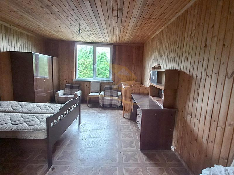 На первом этаже расположены: две спальные комнаты, кухня- гостиная, функциональная печь (на твердом топливе), новая душевая кабина.