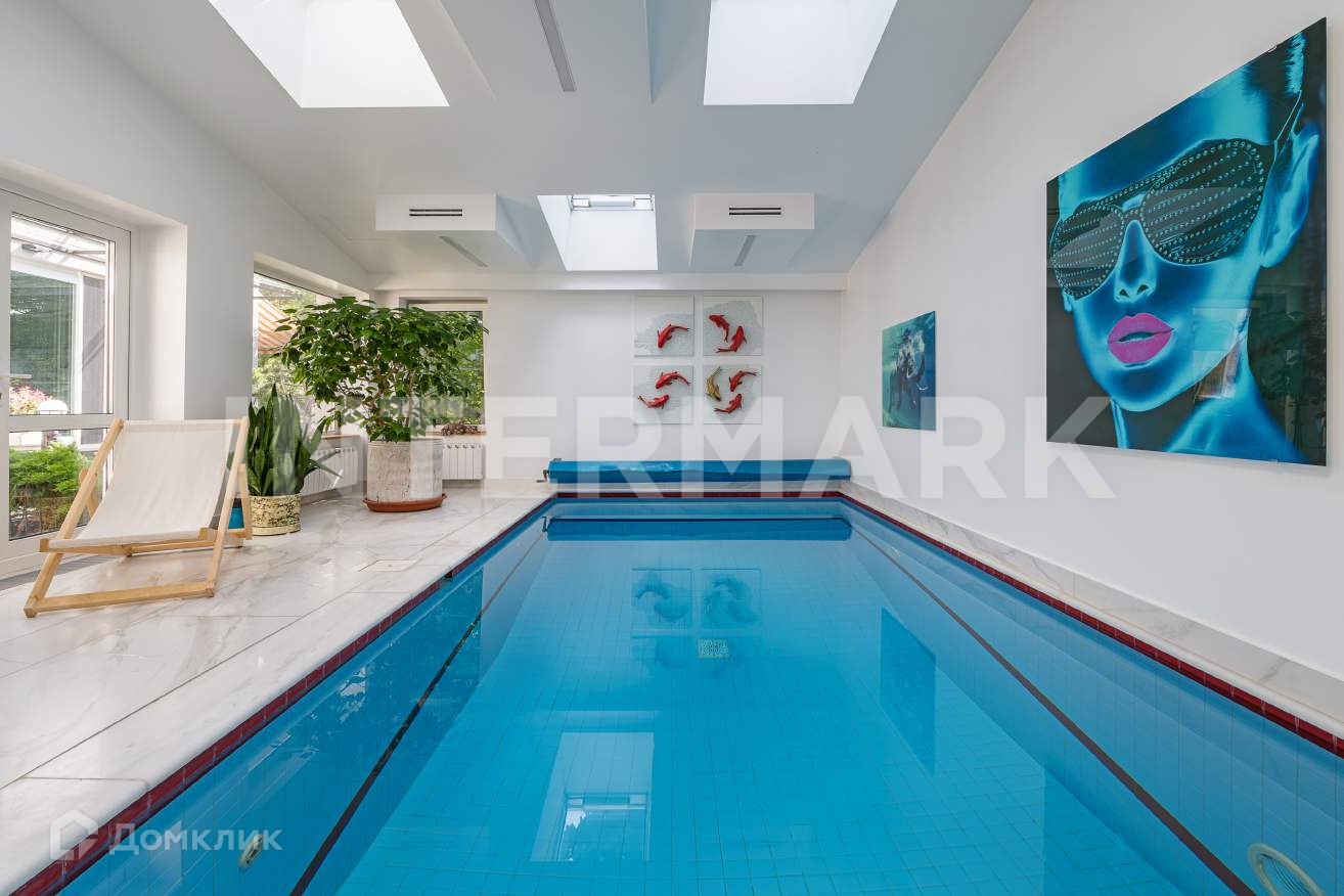 Планировка основного дома включает: каминный зал, библиотеку, новую кухню с техникой Miele, четыре спальни с собственными гардеробными и ванными комнатами, спа-зону с сауной и бассейном, тренажерный зал, две гардеробные и цокольный этаж с прачечной, кладовой и винной комнатой.