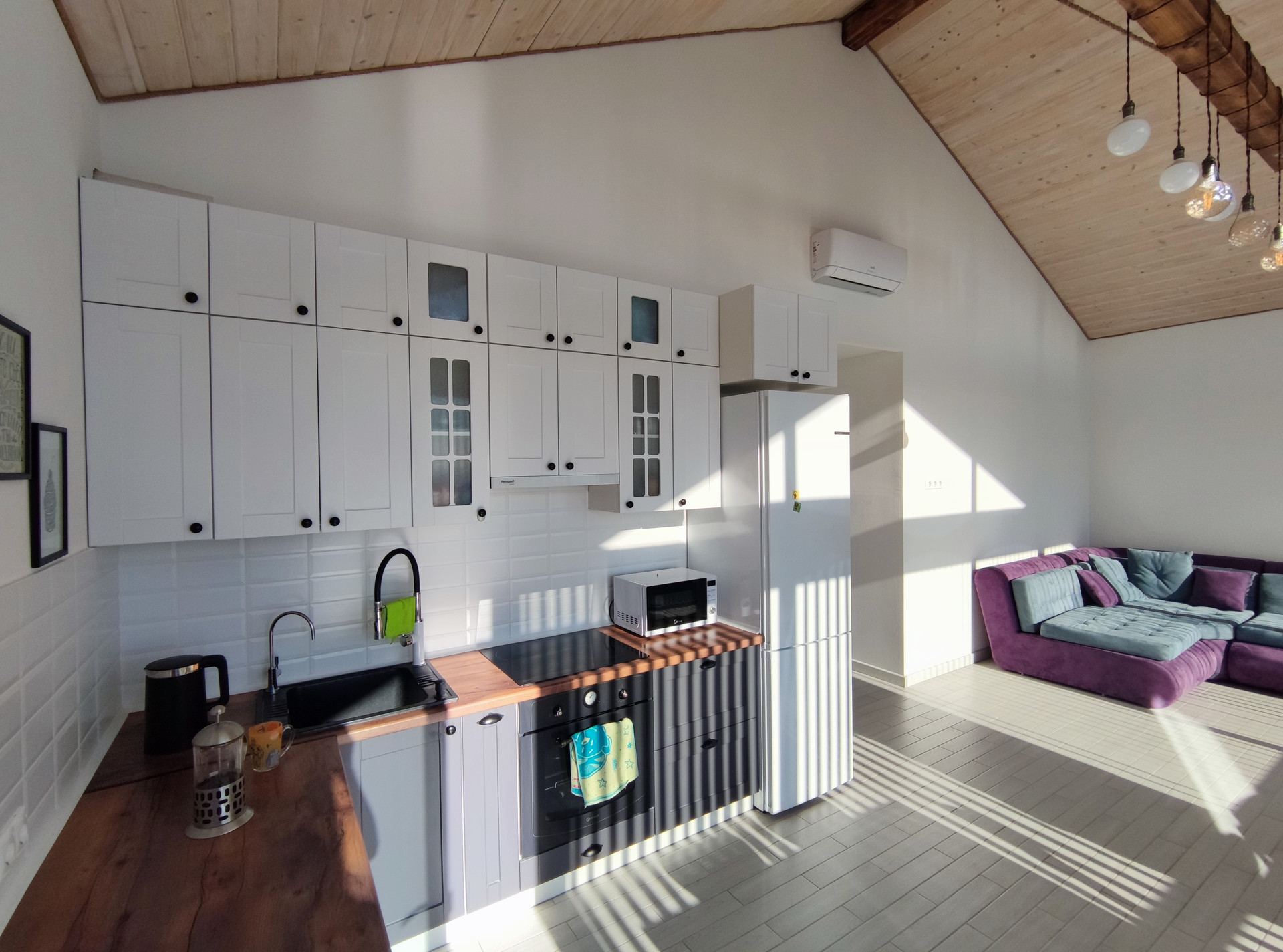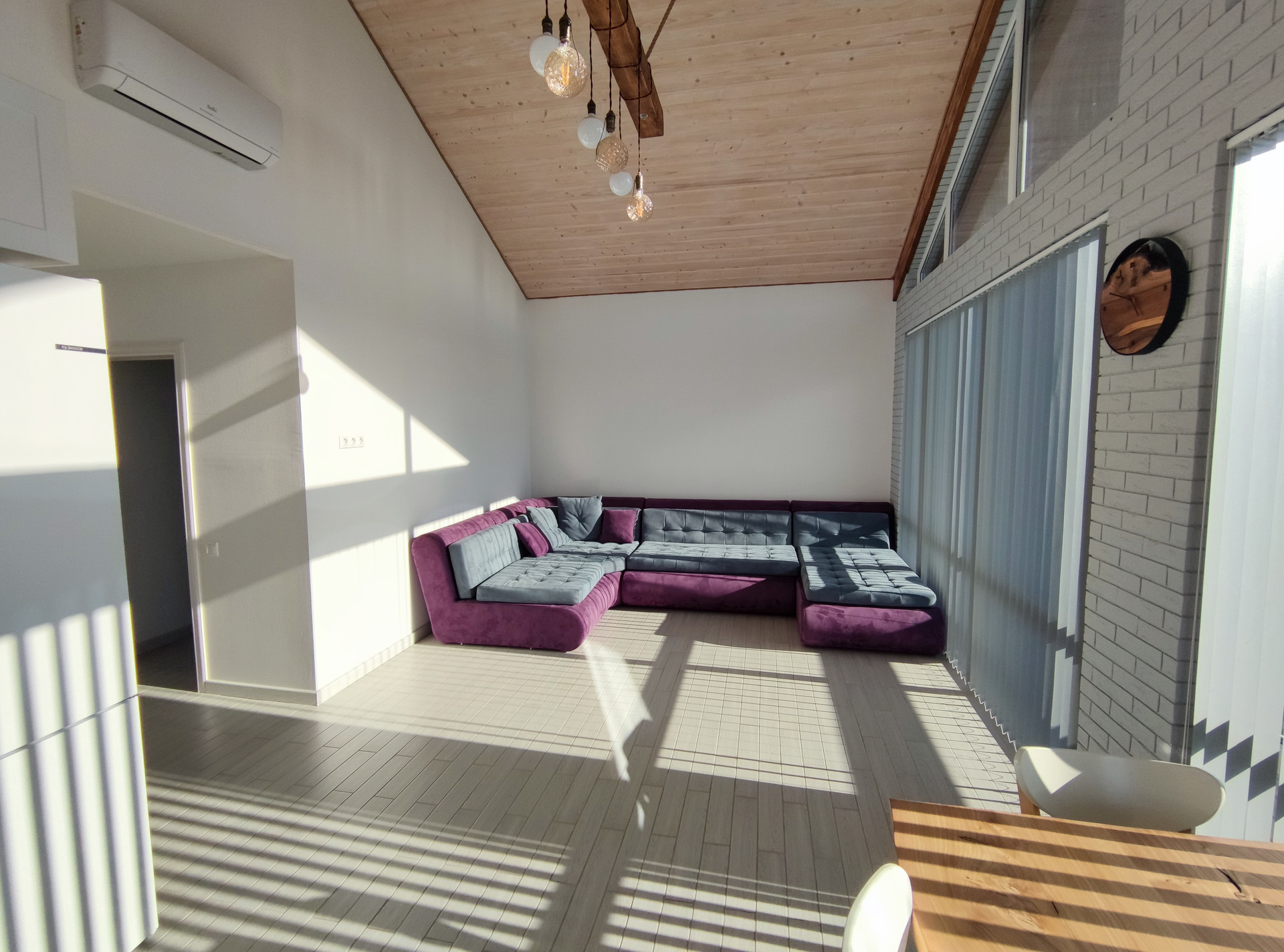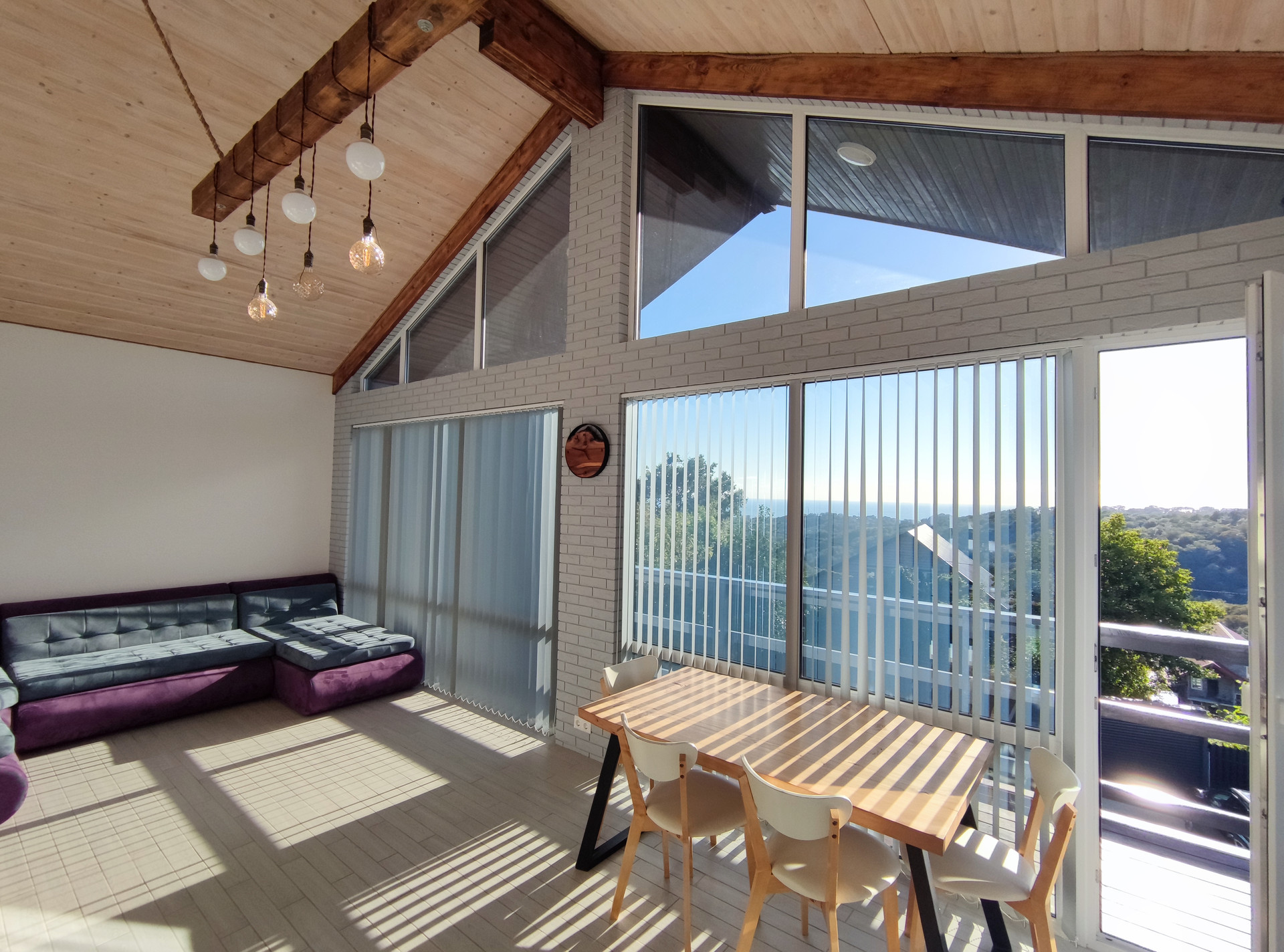 - В доме 2 комнаты, кухня-гостиная с прекрасными панорамные окнами в пол и выходом на террасу для проведения теплых вечеров, встреч с друзьями, из любой точки которой, открываются виды, на созданный природой горный ландшафт;