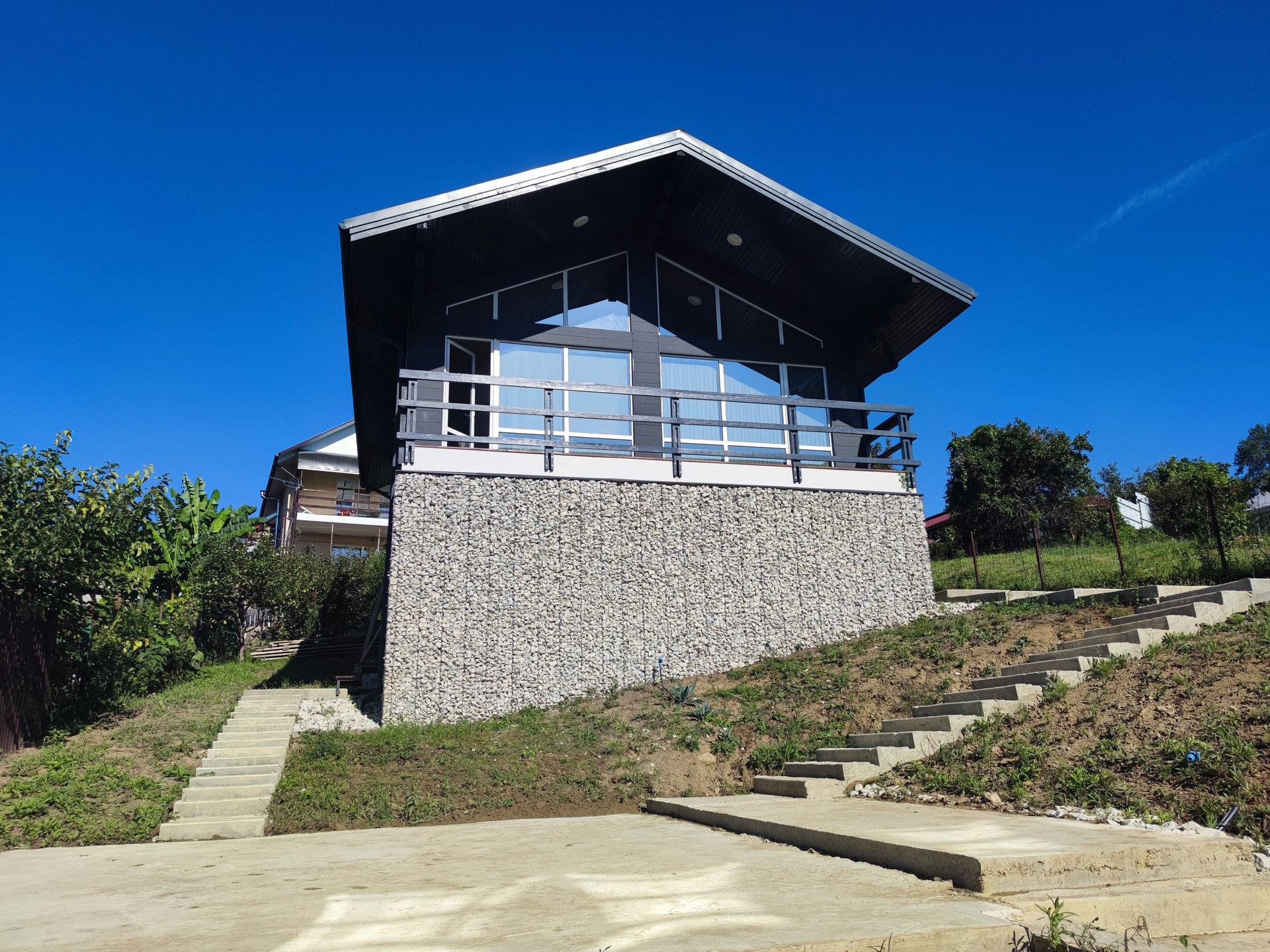 - На участке предполагается строительство бани с видом на горы, бассейн, беседка и обустройство парковки для нескольких автомобилей;