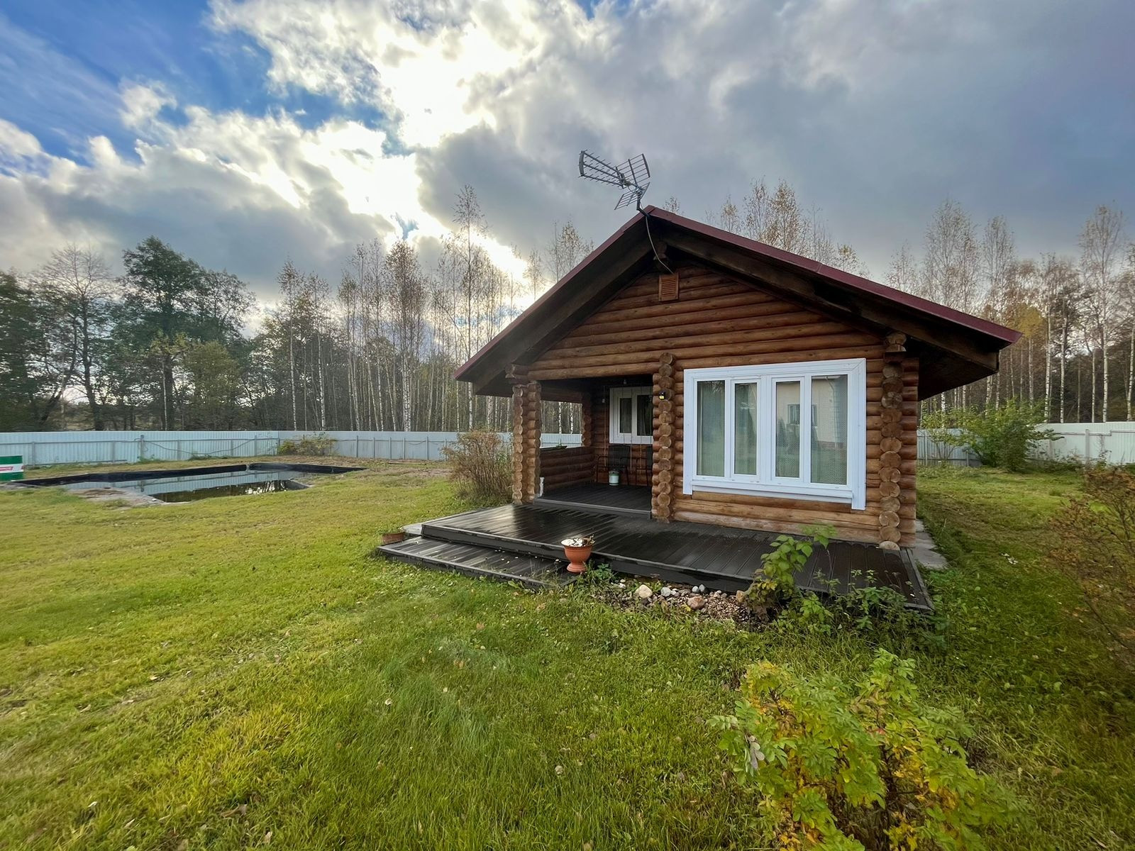 Баня с прудом 10х15 м. со ступенчатым спуском.
