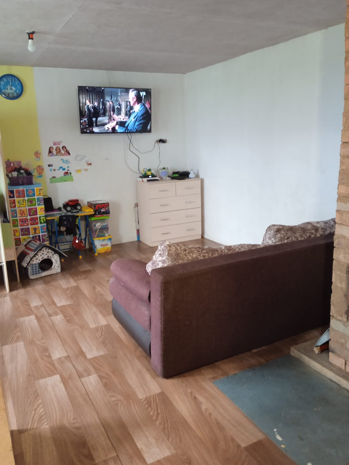 В доме проживаем круглогодично, из коммуникаций - свет, отопление печка. Баня рабочая,