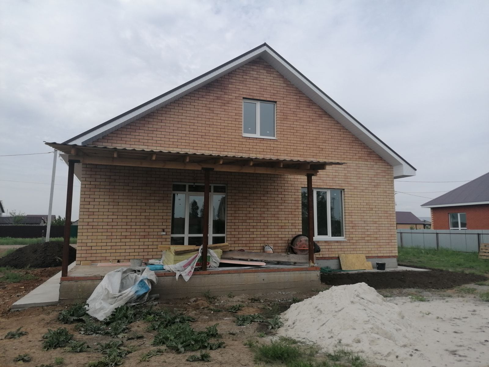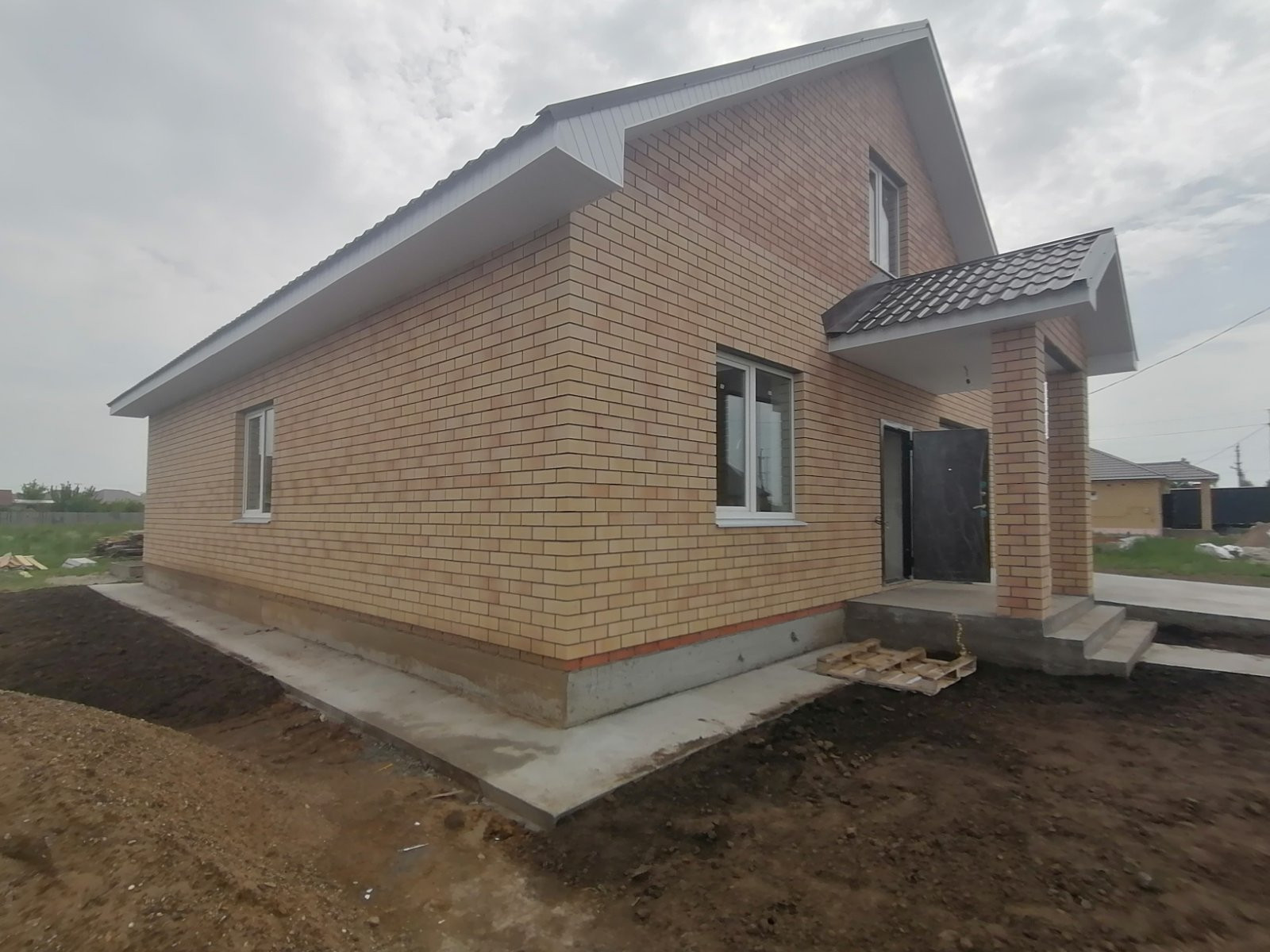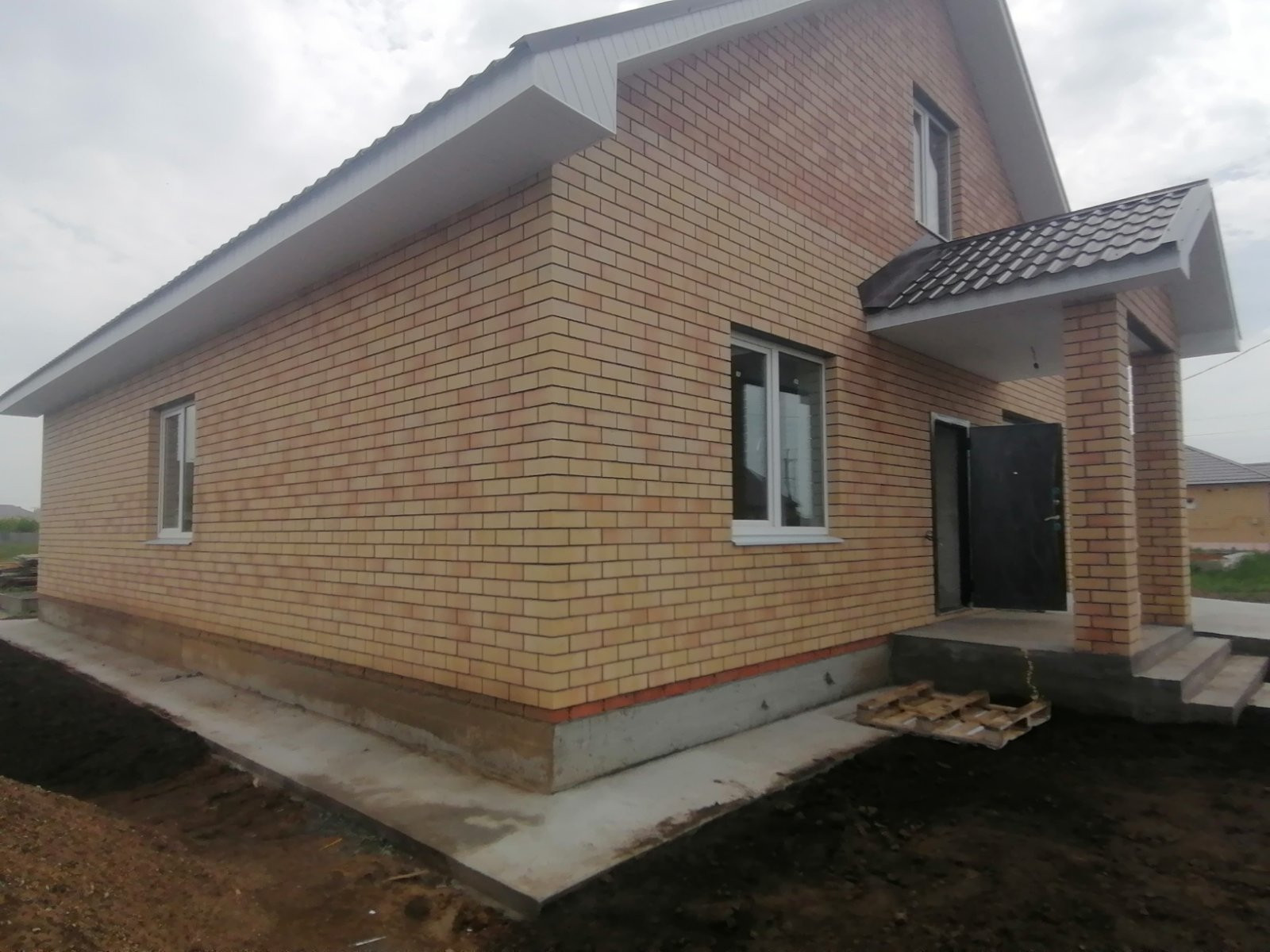 Дом  будет готов 15 июня, построен из керамзитоблока + утеплитель , кирпич. В доме установлен двух контурный газовый котел , по периметру 1 этажа теплый пол и выводы под  батареи, своя скважина , канализация!