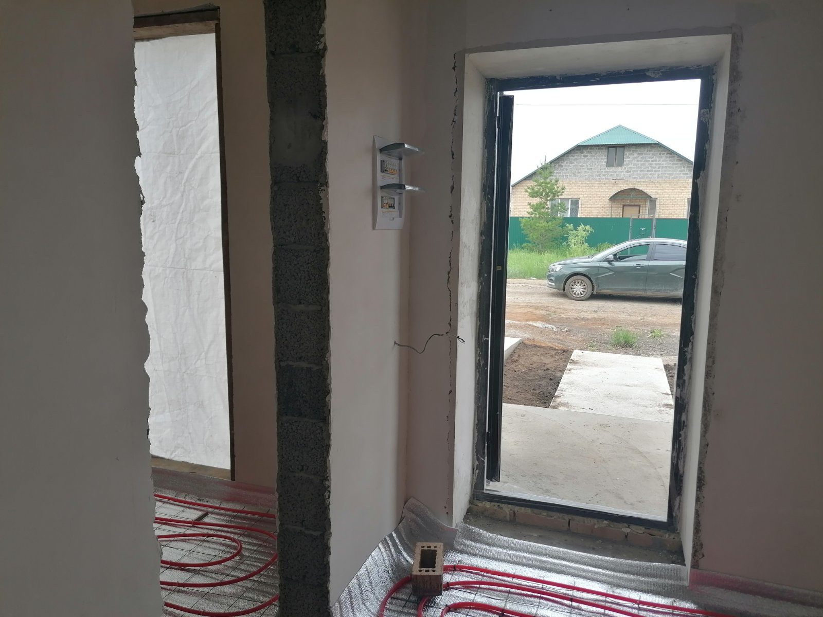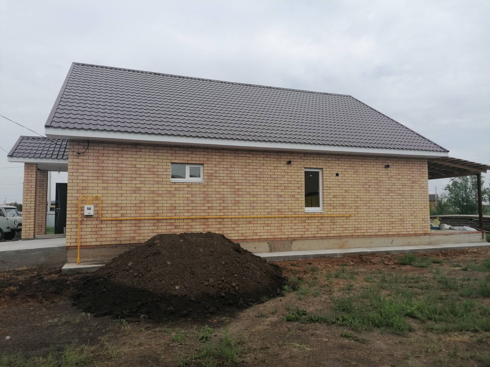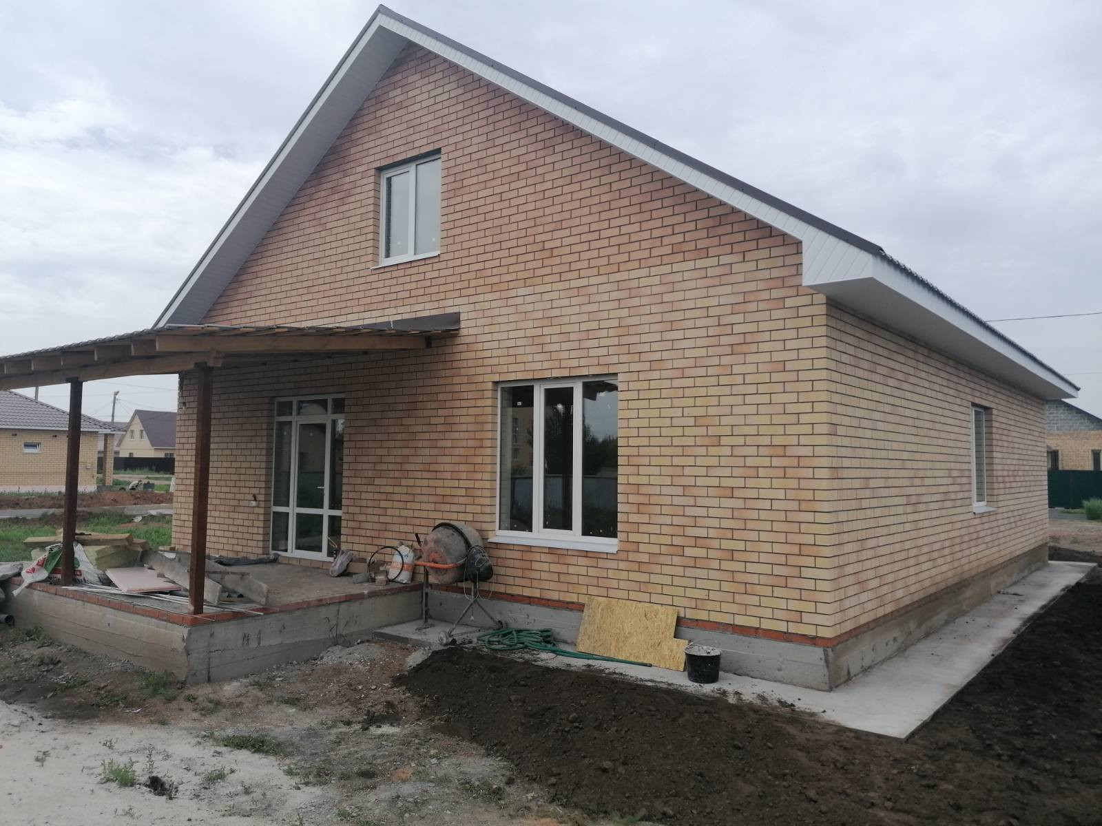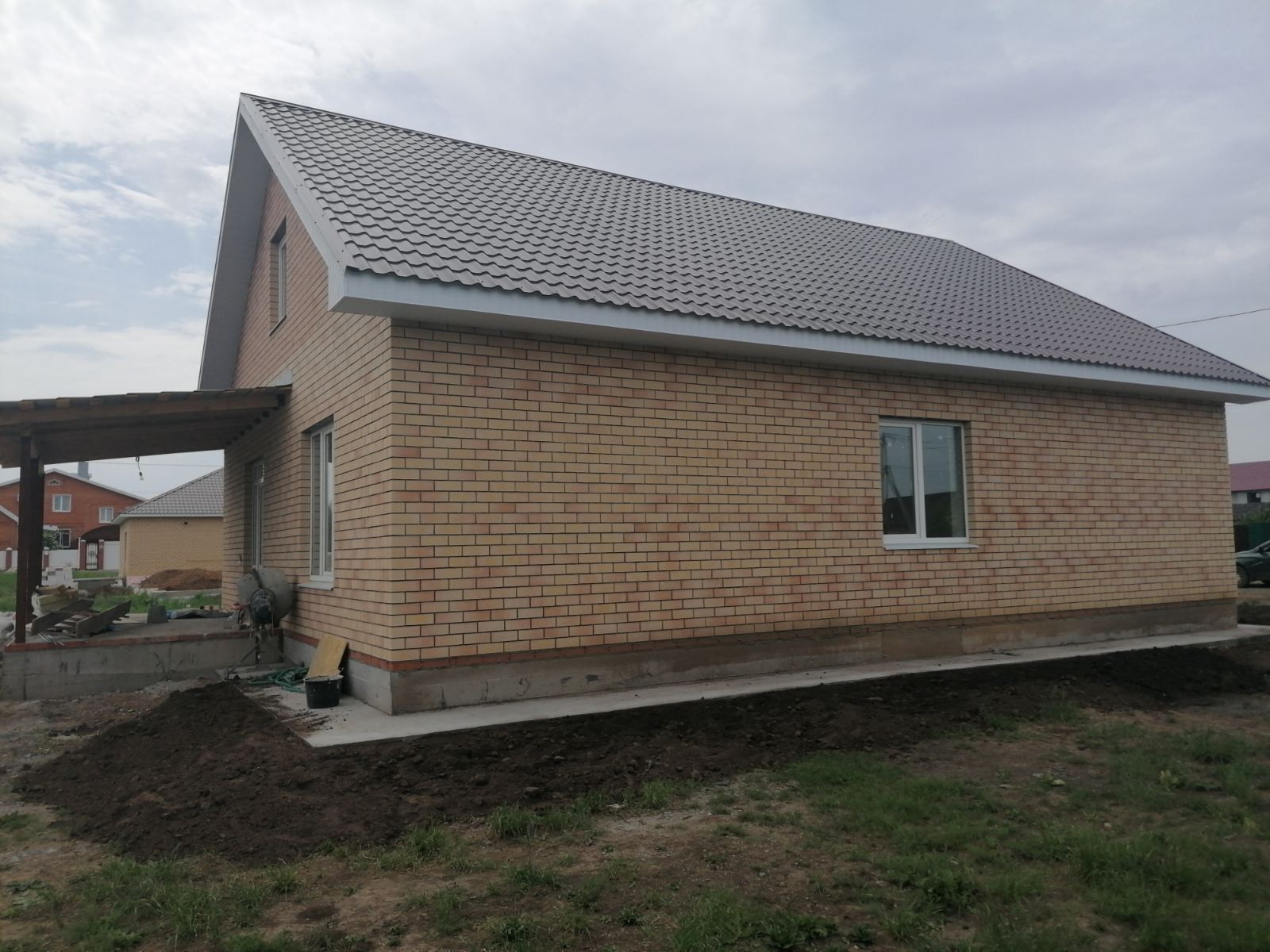 Дом  будет готов 15 июня, построен из керамзитоблока + утеплитель , кирпич. В доме установлен двух контурный газовый котел , по периметру 1 этажа теплый пол и выводы под  батареи, своя скважина , канализация!