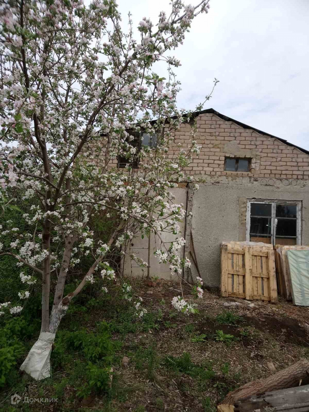 На участке стоит панельный домик 39 м.кв.- две комнаты 3х3,5 м. и гараж 6х3 м.. Под гаражом погреб. Все под одной крышей.