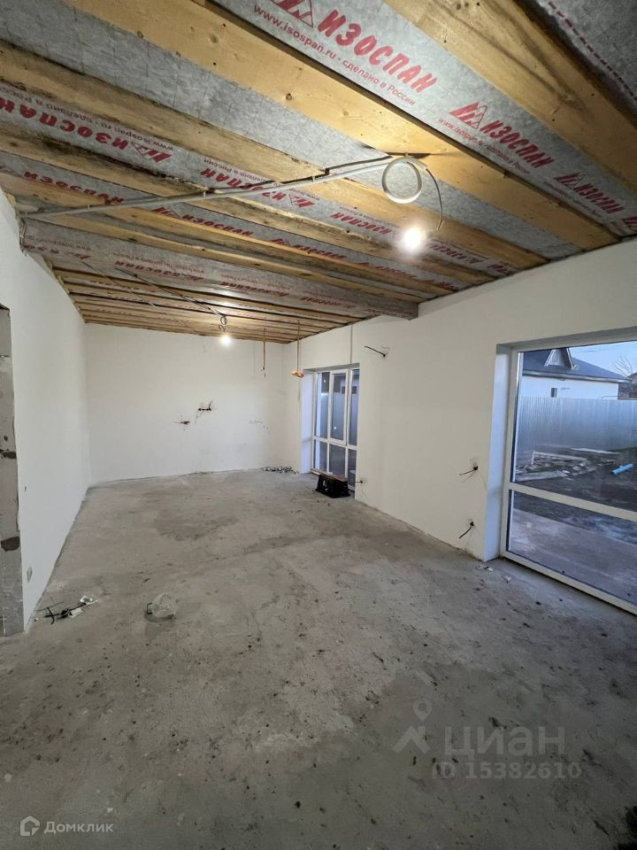 Ипотека от 3%  Дом реальный . Расположен в поселке 9 января по улице Вишневой.   Срок сдачи июль 2023 г.. Остались внутренние работы по штукатурке и планировке участка. Все коммуникации подведены :вода(своя скважина), канализация, газ, электричество).   В доме три изолированные спальни, большая кухня-гостиная, топочная (с местом под стиральную машину и второй унитаз), два санузла.  Перед тем как заливать фундамент было заказано геологическое изыскание грунта. Работы по геологии проводило ООО «Фундаментстройпроект». В результате геологических изысканий и расчета проектировщика были пробурены буронабивные сваи глубиной 5 м (это не опечатка) и диметром 300м с шагом 1,6 м. Рабочая арматура в сваях 16D. Поперечная арматура в ростверке: нижняя 25 D, верхняя 12D, хомуты 8D. Заливали товарным бетоном B15 (M200) от БетонСервис.   Стены выложены из керамзитоблока (евроблок) шириной 300 мм и утеплены пенополистиролом 100 мм ППС 16Ф (ПСБ 25Ф). Весь фасад полностью соответствует системам фасадных теплоизоляционных композитных. (СФТК). Приклейка утеплителя осуществлялась на клей. Дюбелирование производилось дюбелями с термоголовкой. На базовый армирующий слой втапливалась щелочесткойкая фасадная сетка Bautex Крепикс 1800. Далее фасад перетягивался повторно тонким слоем. После грунтовался Ceresit CT 16 и наносился короед Ceresit ct 35. Далее фасад красился в белый цвет.  Крыша утеплена 200 мм минеральной ватой. Цоколь утеплен пеноплексом 50 мм.   Инженерная часть. По все дому теплый пол из металлопластиковой трубы. Всего 7 контуров. На каждую спальню свой контур. Также в каждых комнатах установлены алюминиевые радиаторы отопление по 10 секций.  В поселке есть Детский сад и Школа, так же спортивный комплекс Факел.