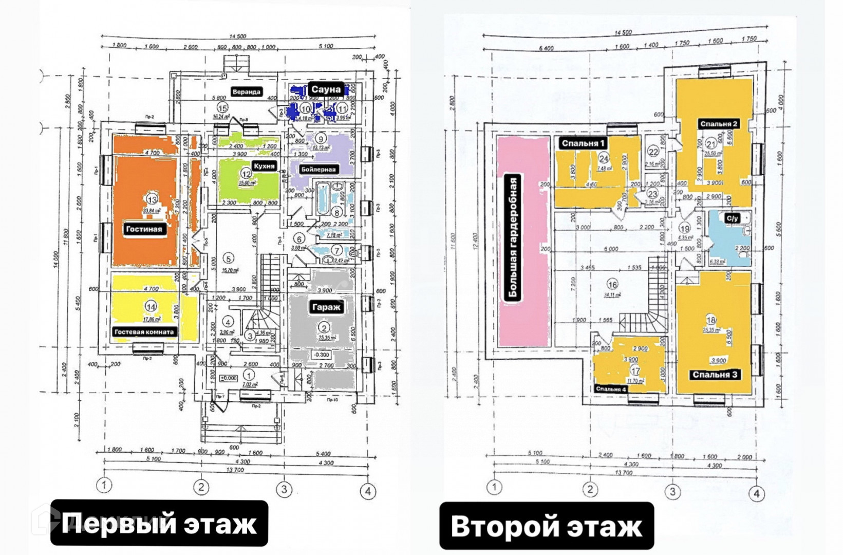 На первом этаже просторный функциональный холл, большая кухня (с выходом на террасу) и гостиная со сквозными проходами, раздельный сан.узел с большой ванной, электрическая сауна с возможностью выхода на террасу, бойлерная, гостевая комната ( которую можно использовать по своему усмотрению как спальню, рабочий кабинет или оборудовать мастерскую) и теплый гараж со сливом и выходом в дом.