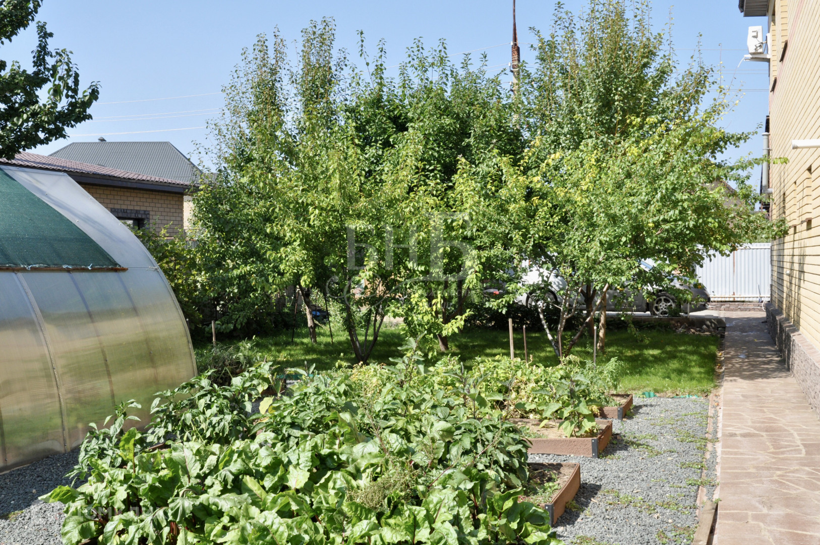 • Передний двор : большой навес над въездом в гараж и входной группой, просторная площадка, выложенная натуральным камнем, двух-зонный теплый вольер для вашего даже самого большого четвероного охранника!