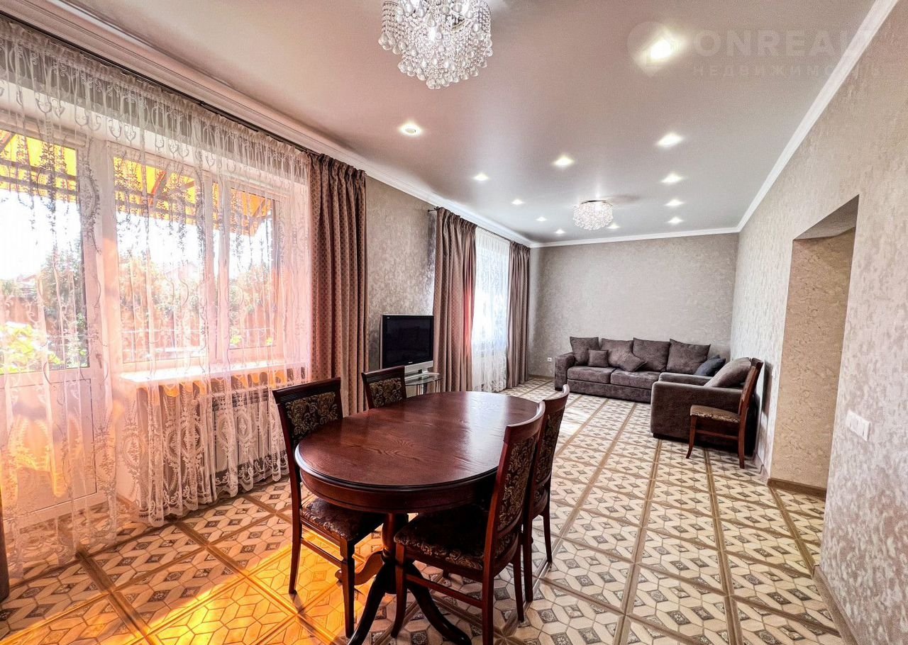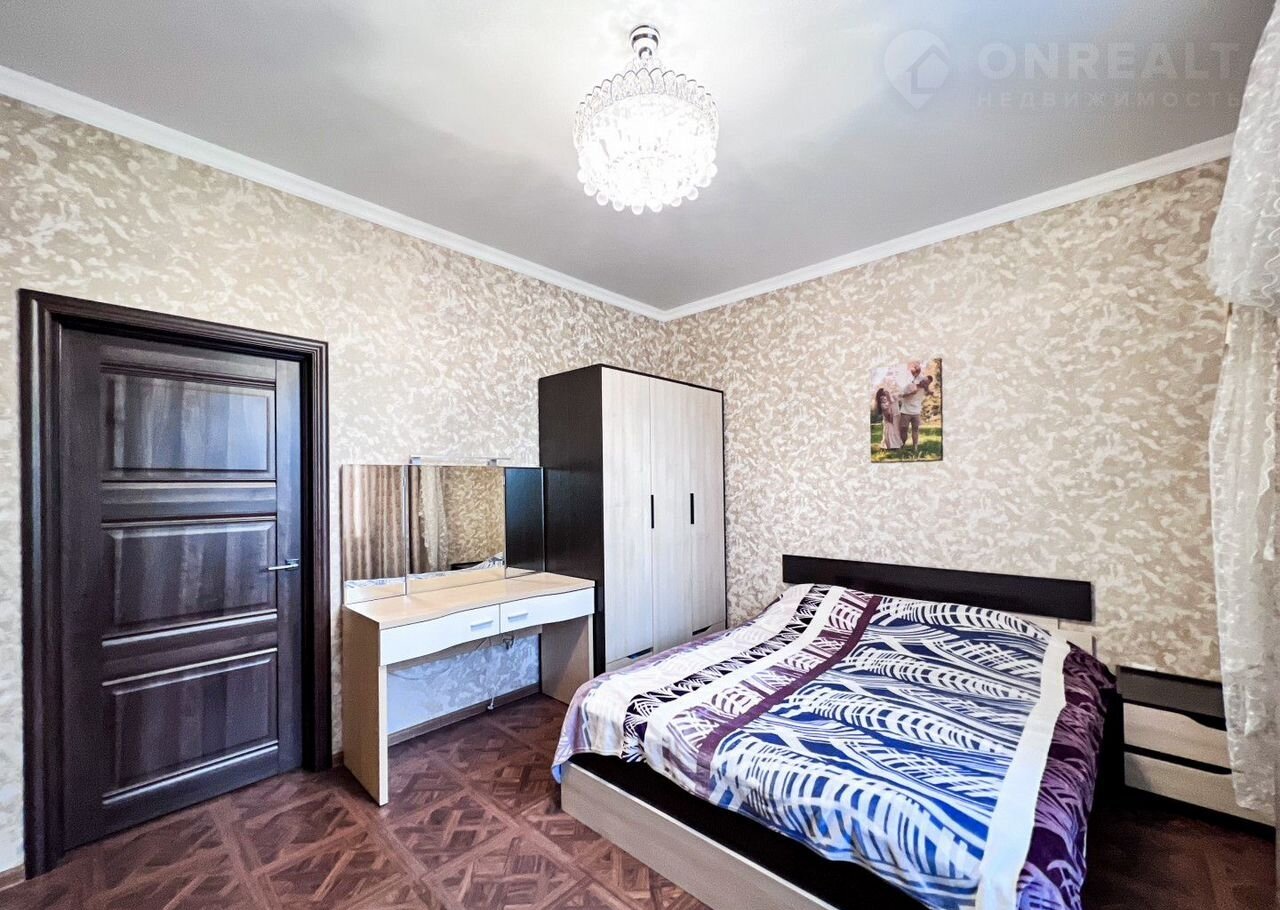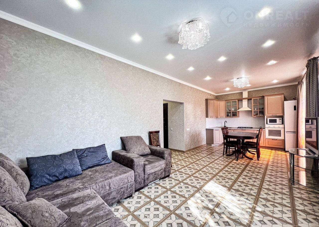 В доме есть просторная кухня-гостиная (31 кв м), 3 спальни, 2 санузла (первый - для хозяев,с ванной, второй – гостевой). Все комнаты изолированы, вход в них из большого коридора.