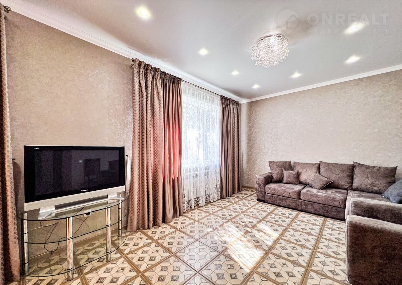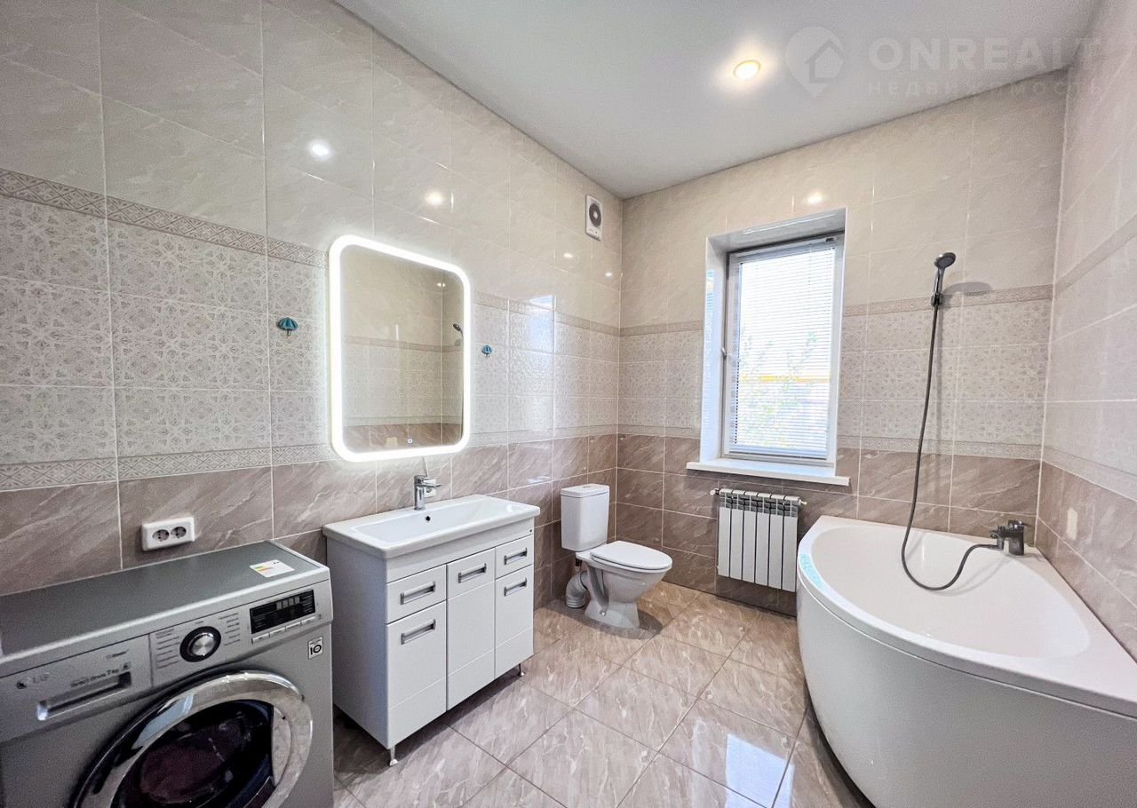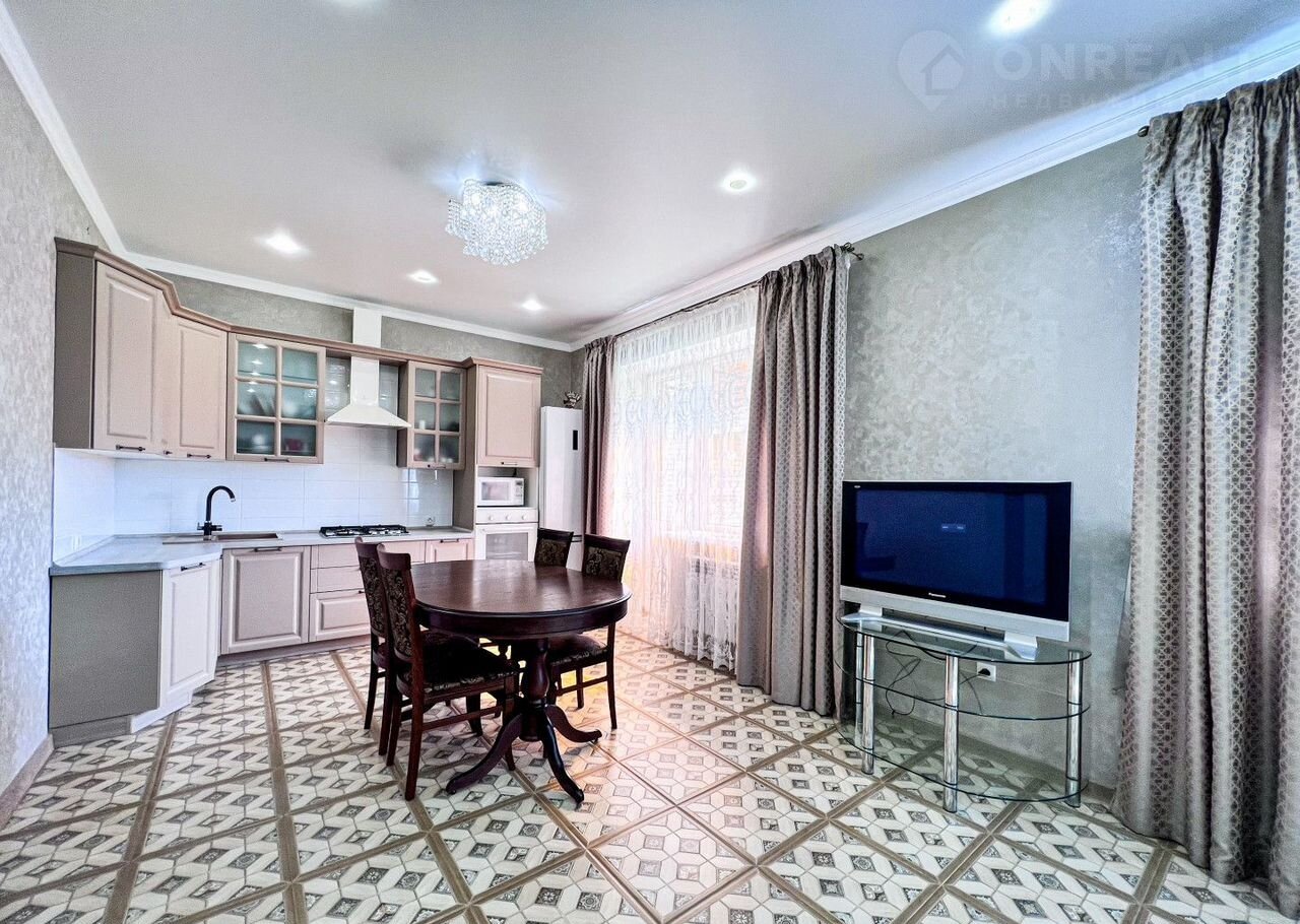 В доме есть просторная кухня-гостиная (31 кв м), 3 спальни, 2 санузла (первый - для хозяев,с ванной, второй – гостевой). Все комнаты изолированы, вход в них из большого коридора.