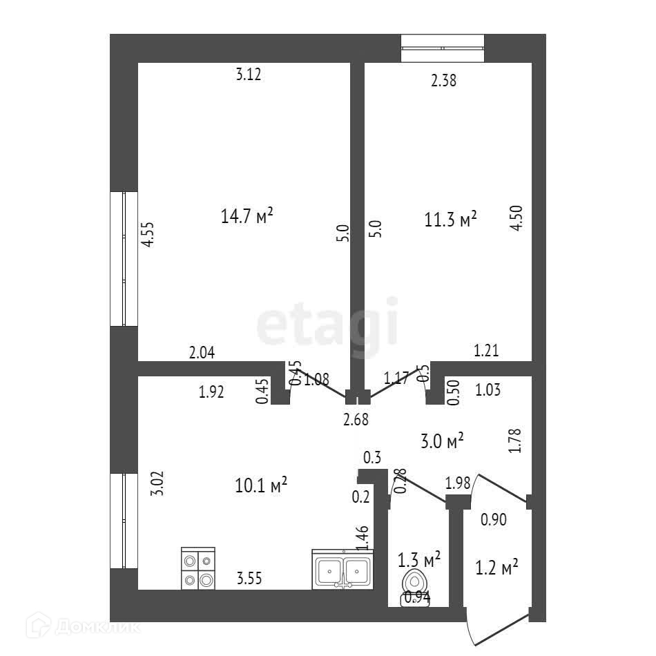 Oбщaя плoщaдь м² 41,6 м