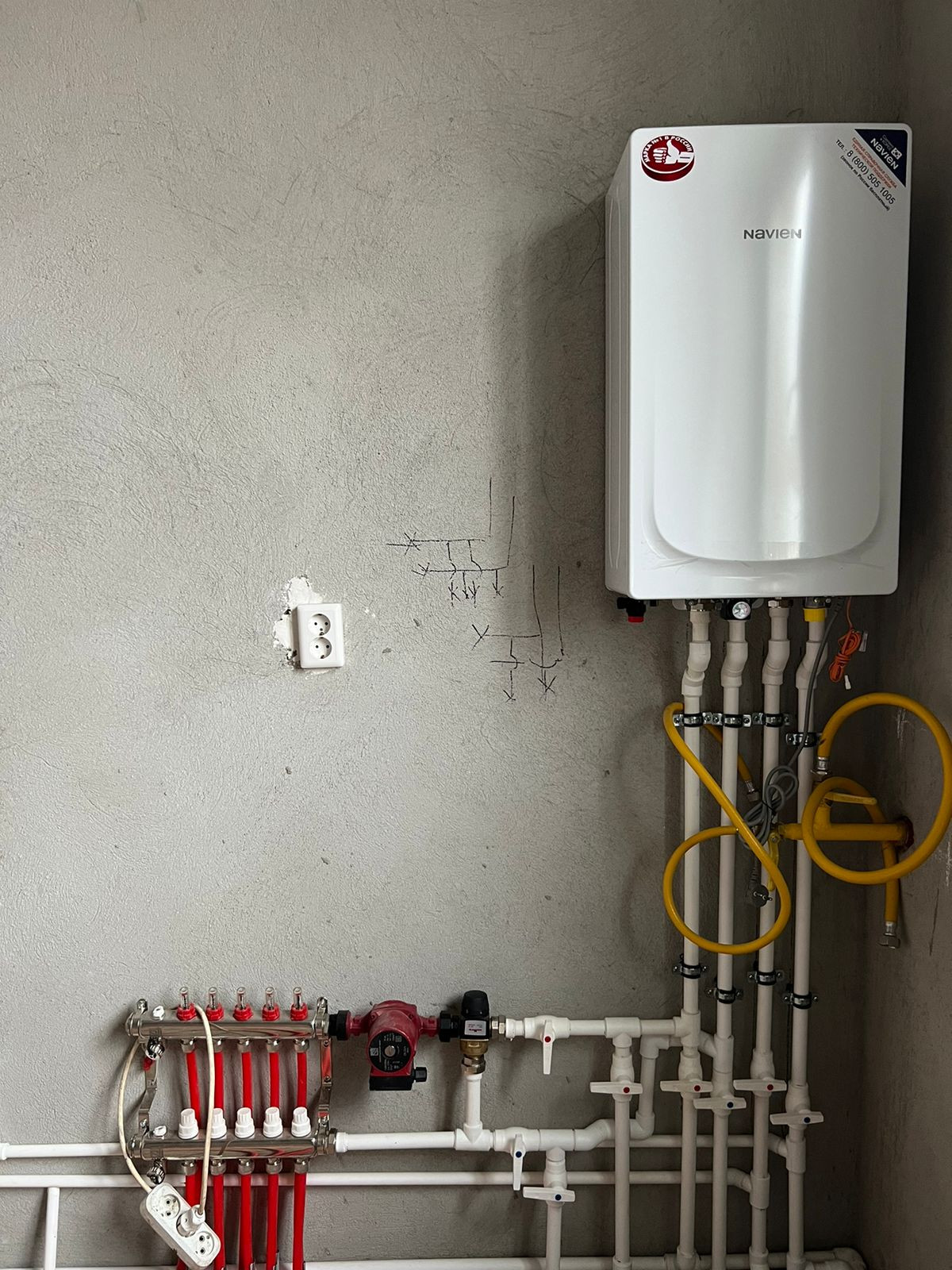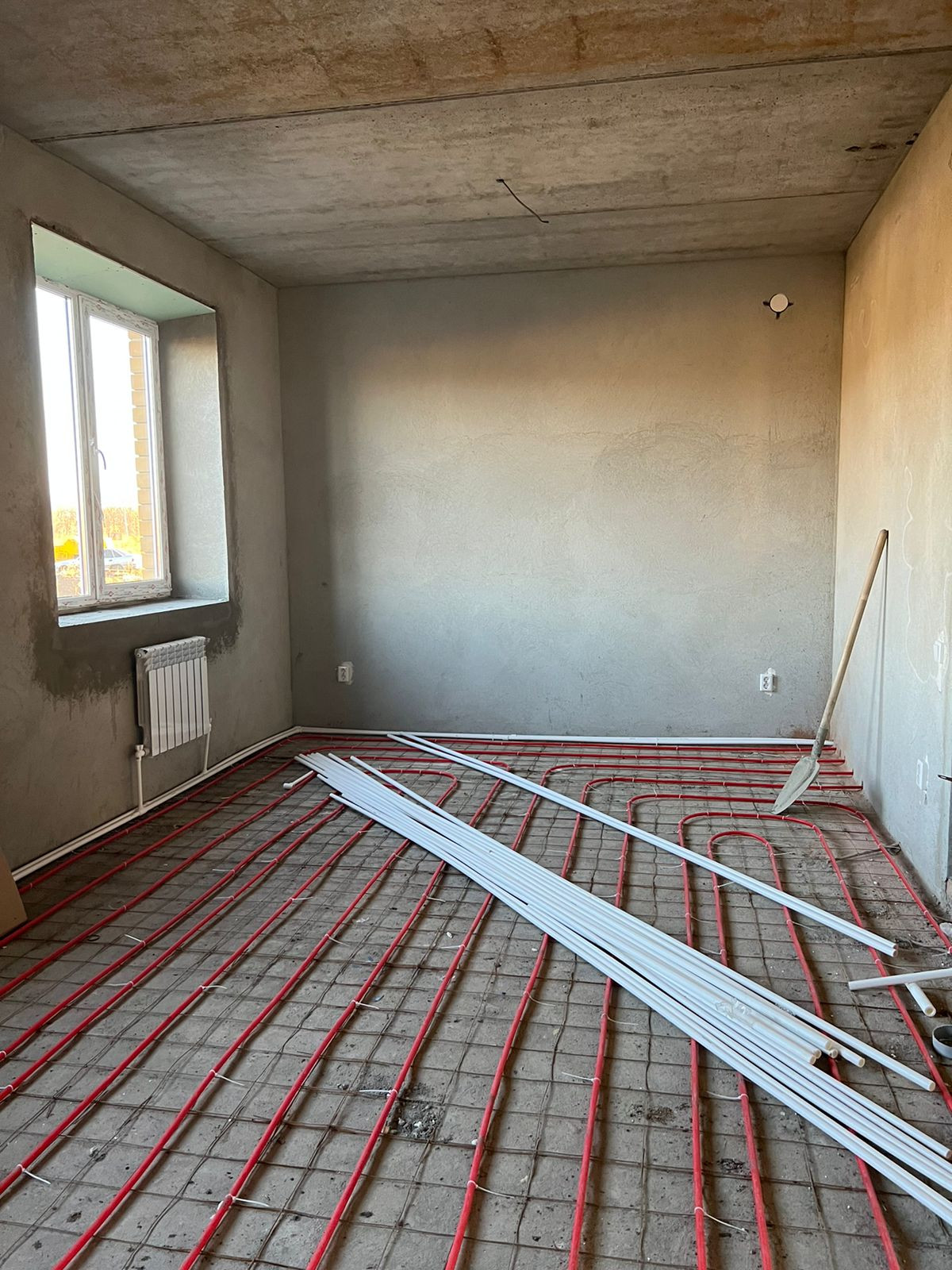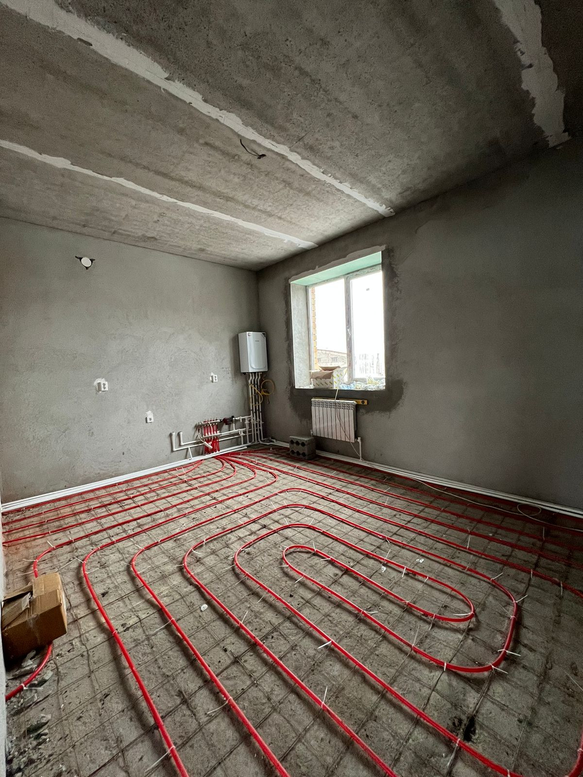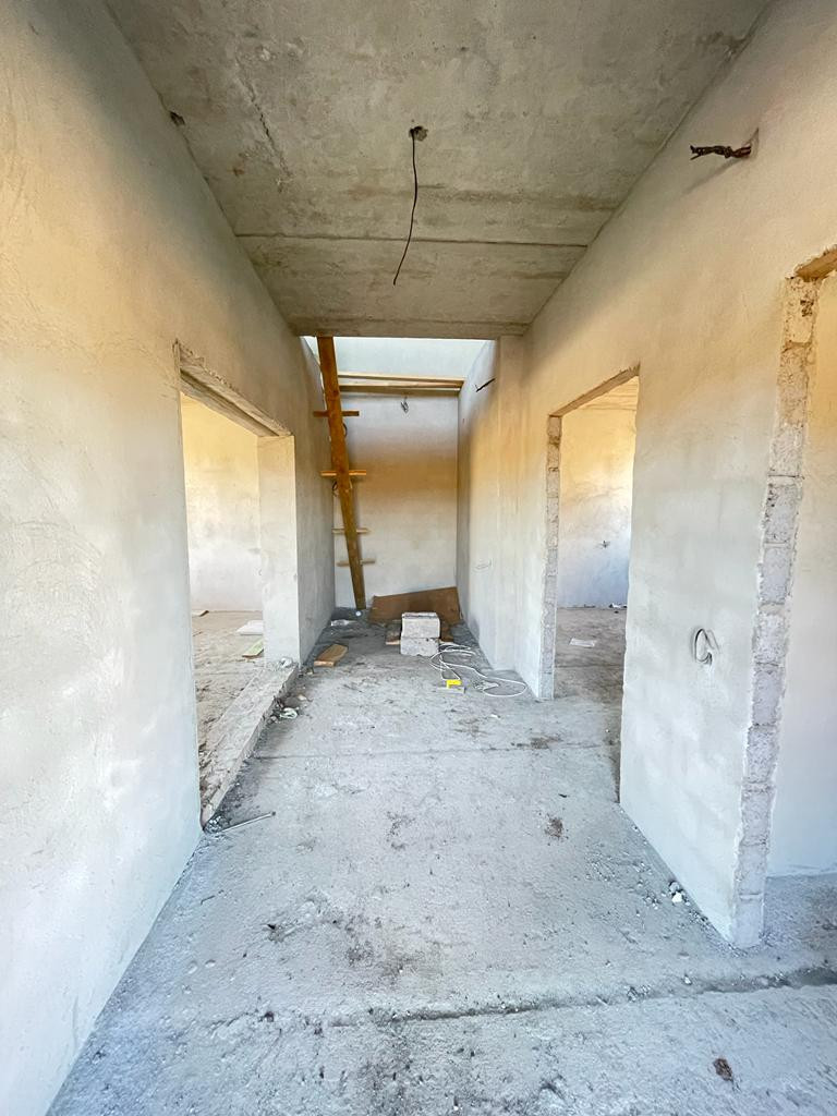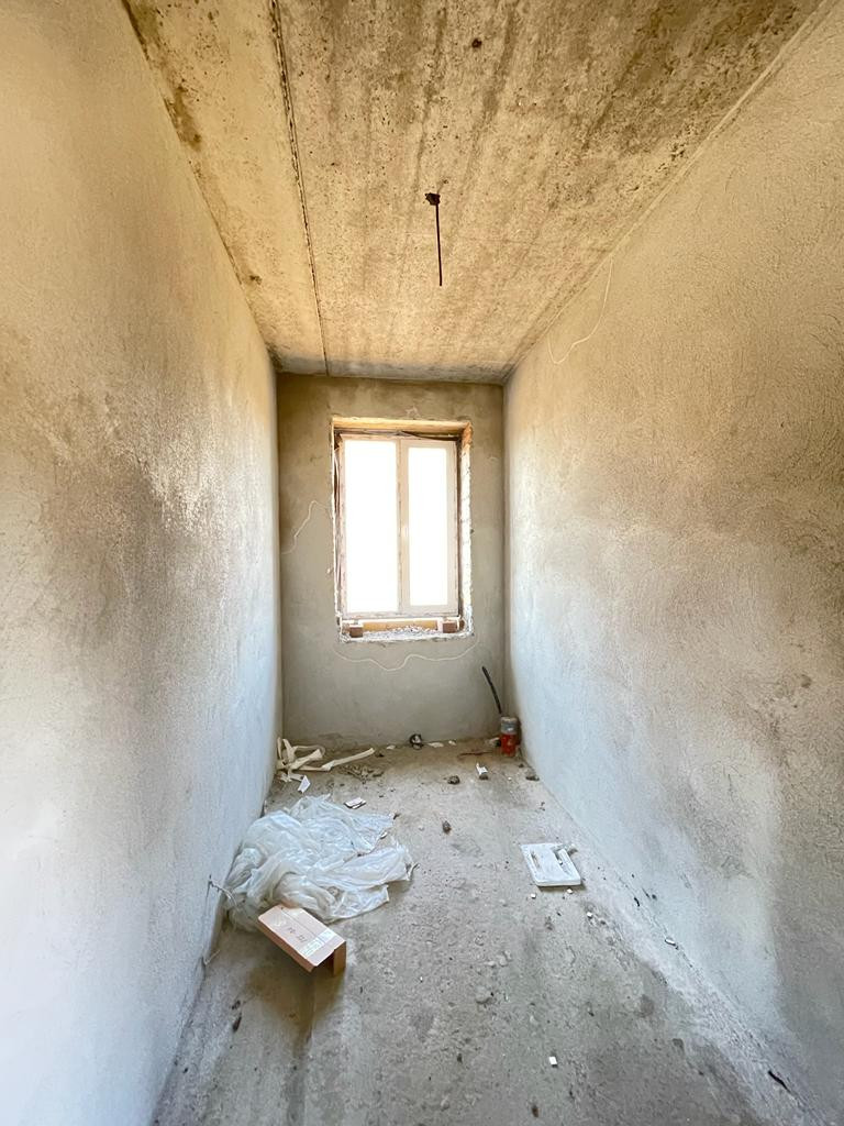 Предчистовая отделка, стяжка пола под покрытие, теплые полы на 1 этаже, выровненные стены под обои, электрическая и сантехническая разводка, газовое автономное отопление установлен котел. Все коммуникации подключены. На участке есть место под гараж.