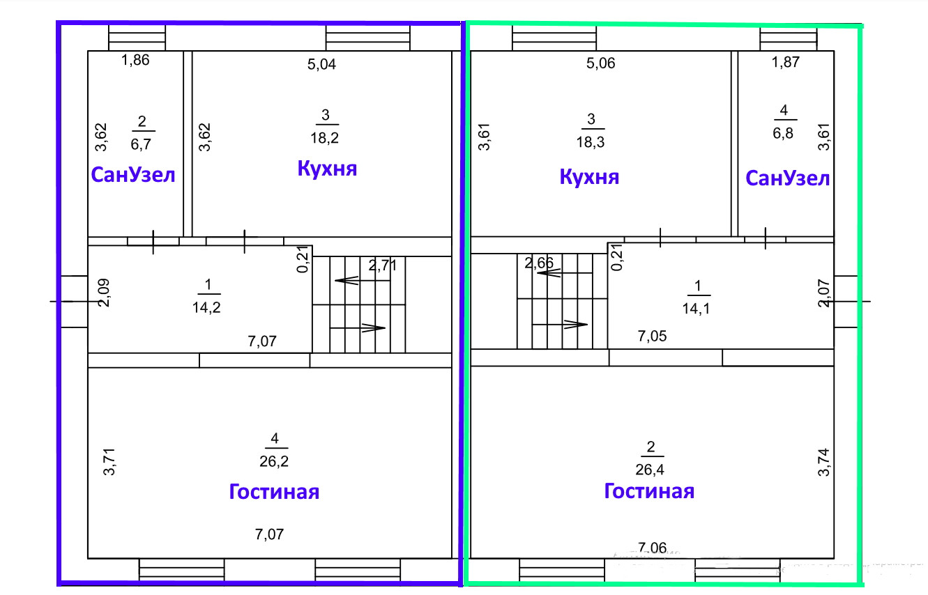 Первый этаж: Кухня - гостиная 26,8м² , две спальни 16,2м², 13,3м².
