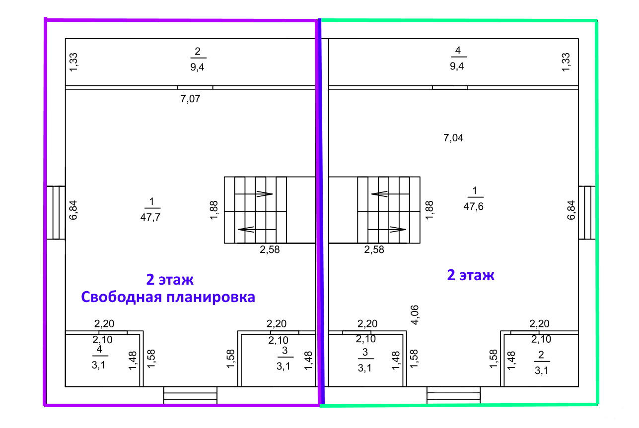Второй этаж: Утепленная мансарда свободной планировки 63,0м²