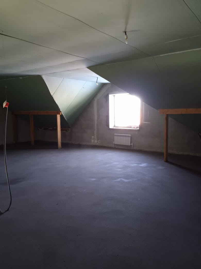 Материал стен: Построен из керамзит блока в блок + утепление 10 см. + отделка фасада кирпичом. В качестве кровельного материала применяется профлист с утеплителем. Мансарда утеплена, выведены коммуникации(вода, слив, отопление).