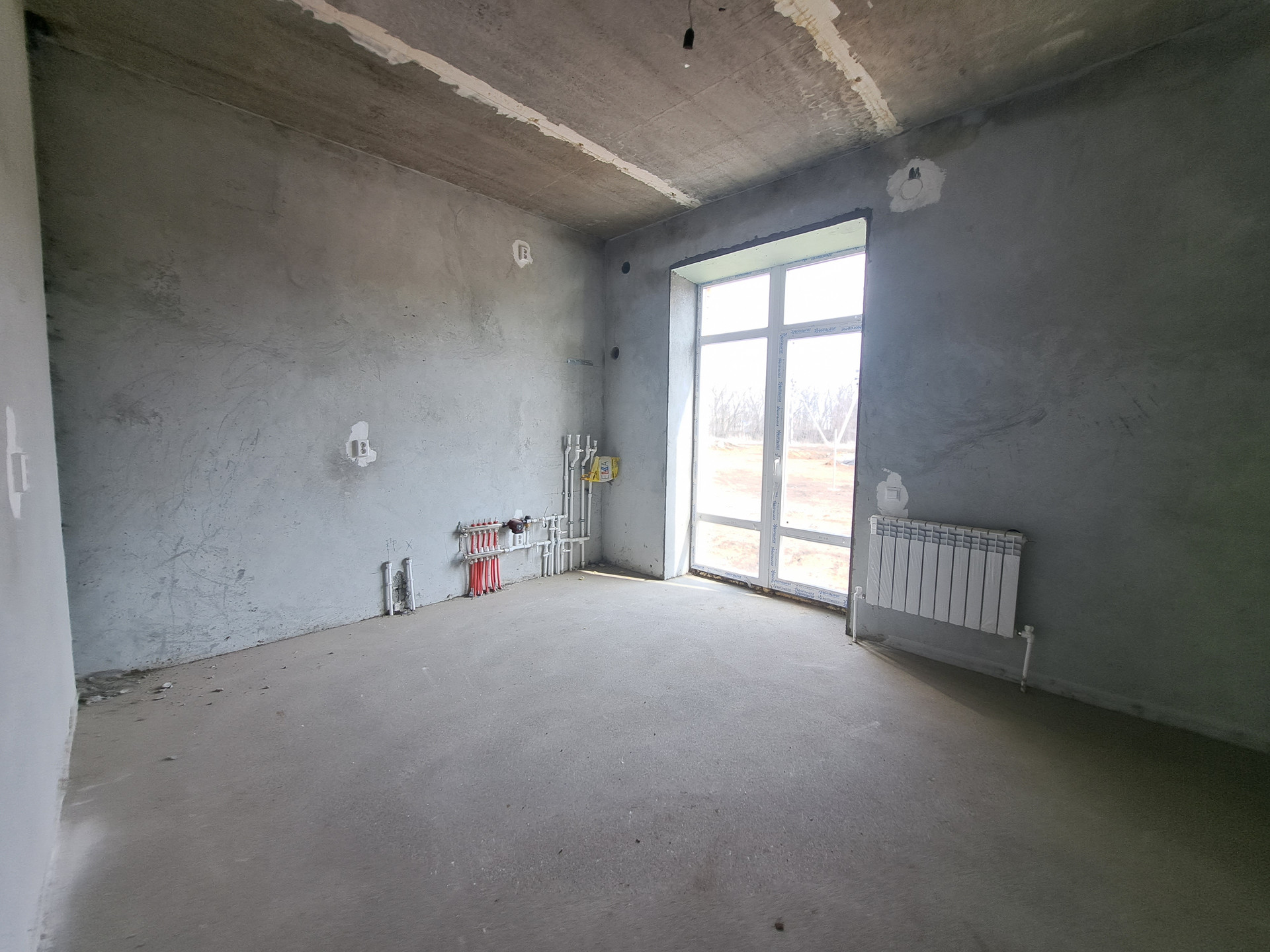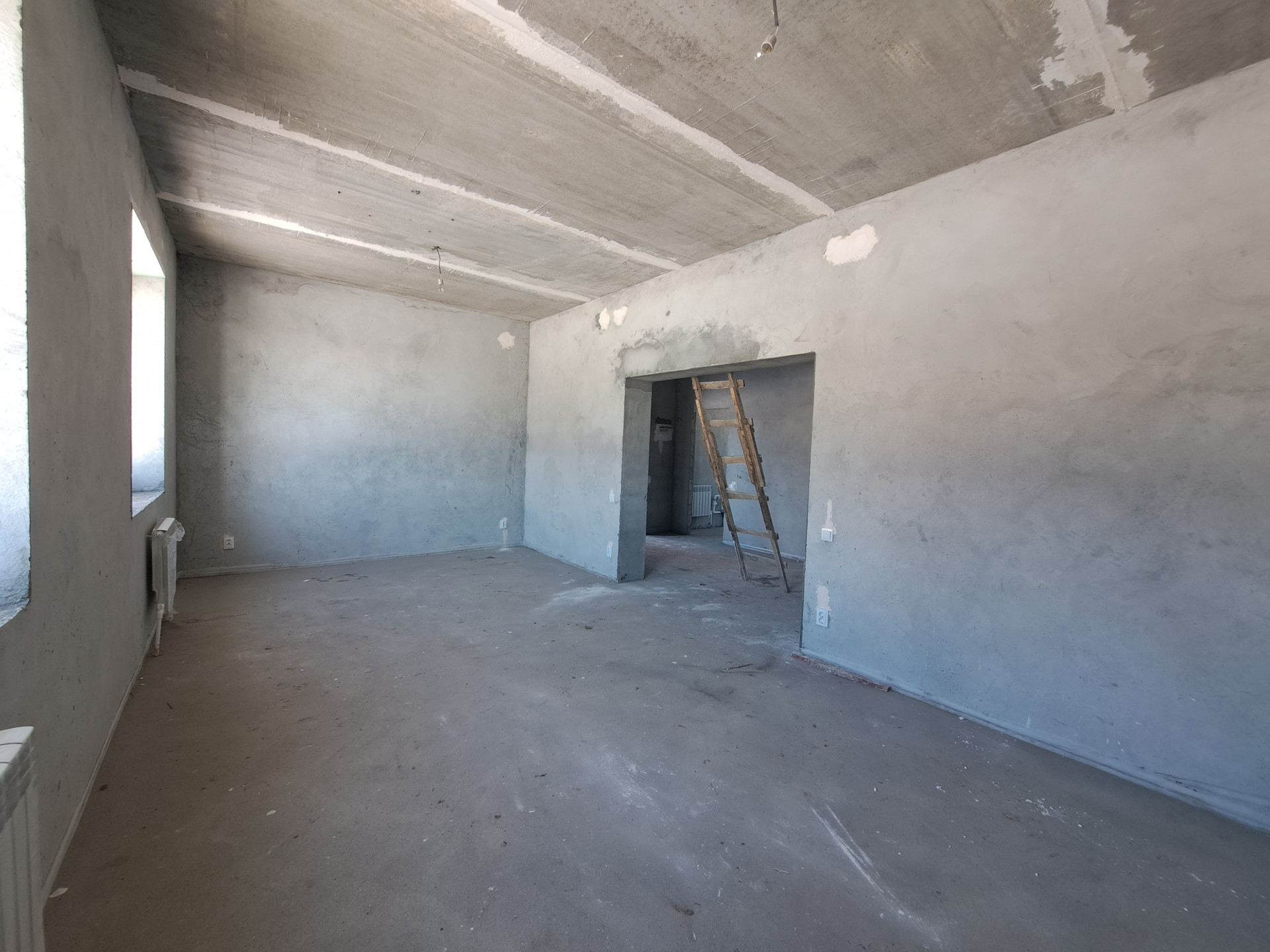 Отделка : Улучшенная черновая отделка , штукатурены стены, механизированная стяжка пола, теплый пол, радиаторы, установлен газовый котел.