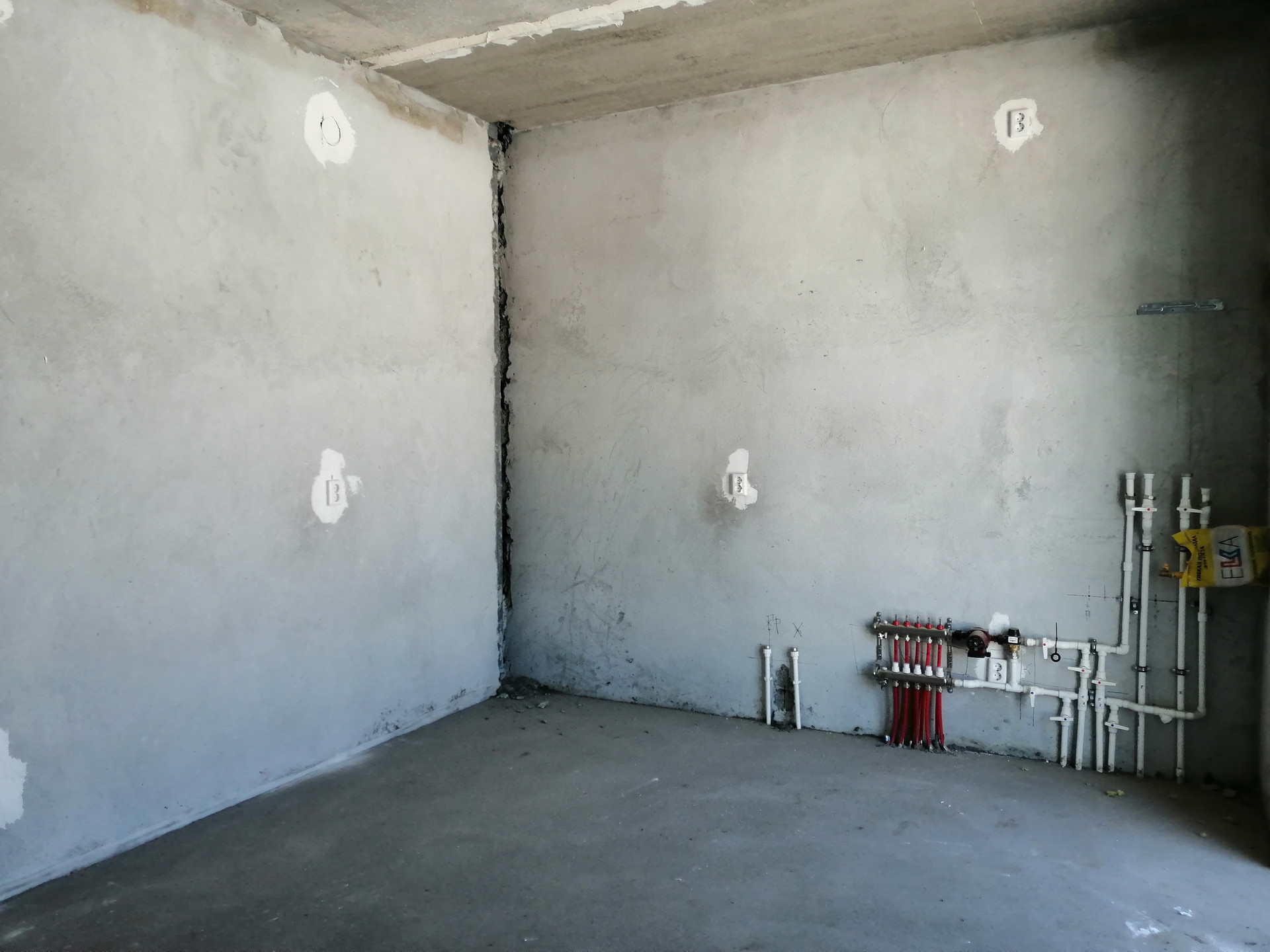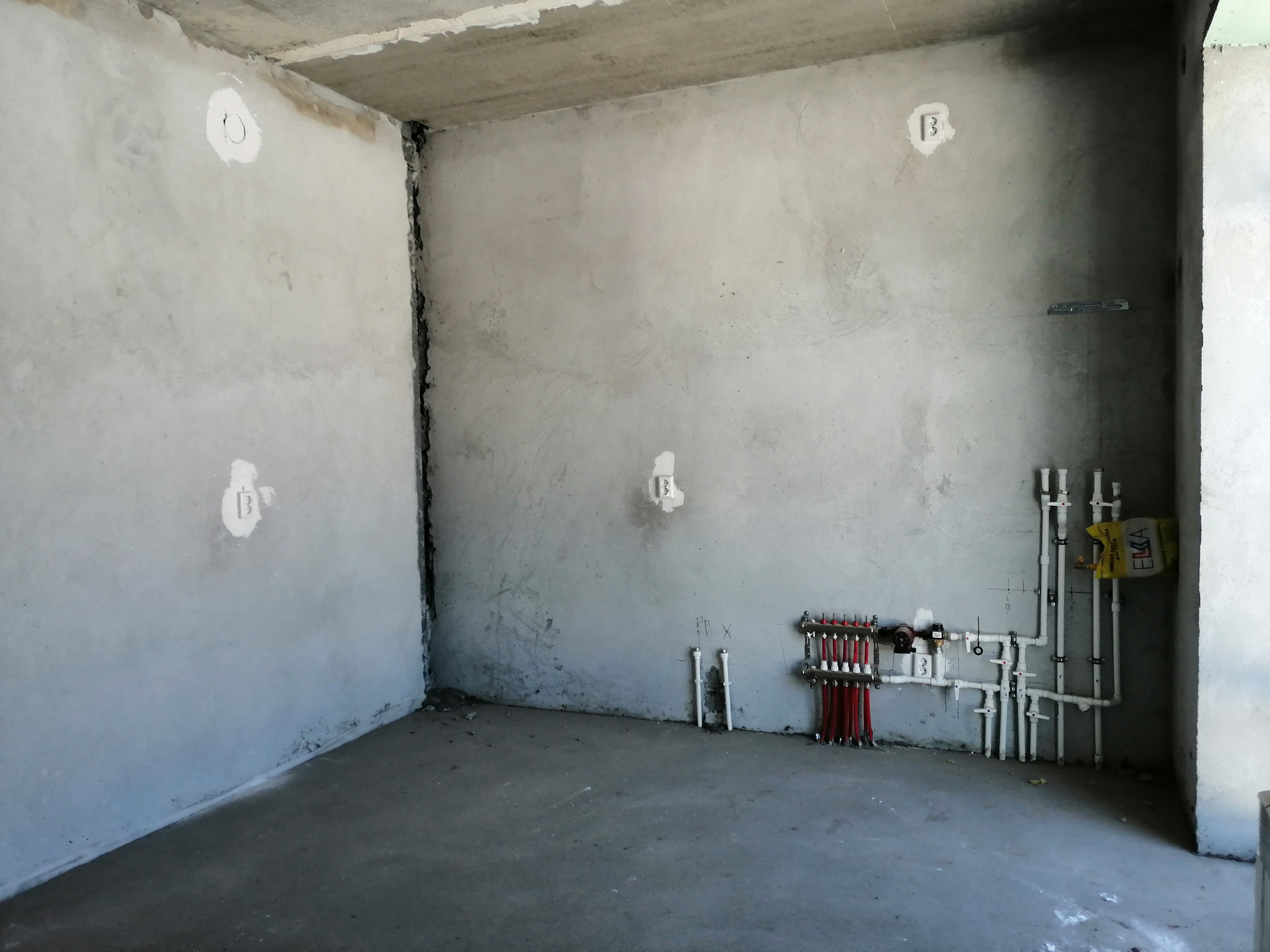 ОТДЕЛКА: Черновая: стены оштукатурены, механизированная стяжка пола идеально ровная, газовое автономное отопление, теплые полы на 1 этаже + радиаторы, электрическая и сантехническая разводка, все системы подключены и оплачены. На улицу выведен полив.