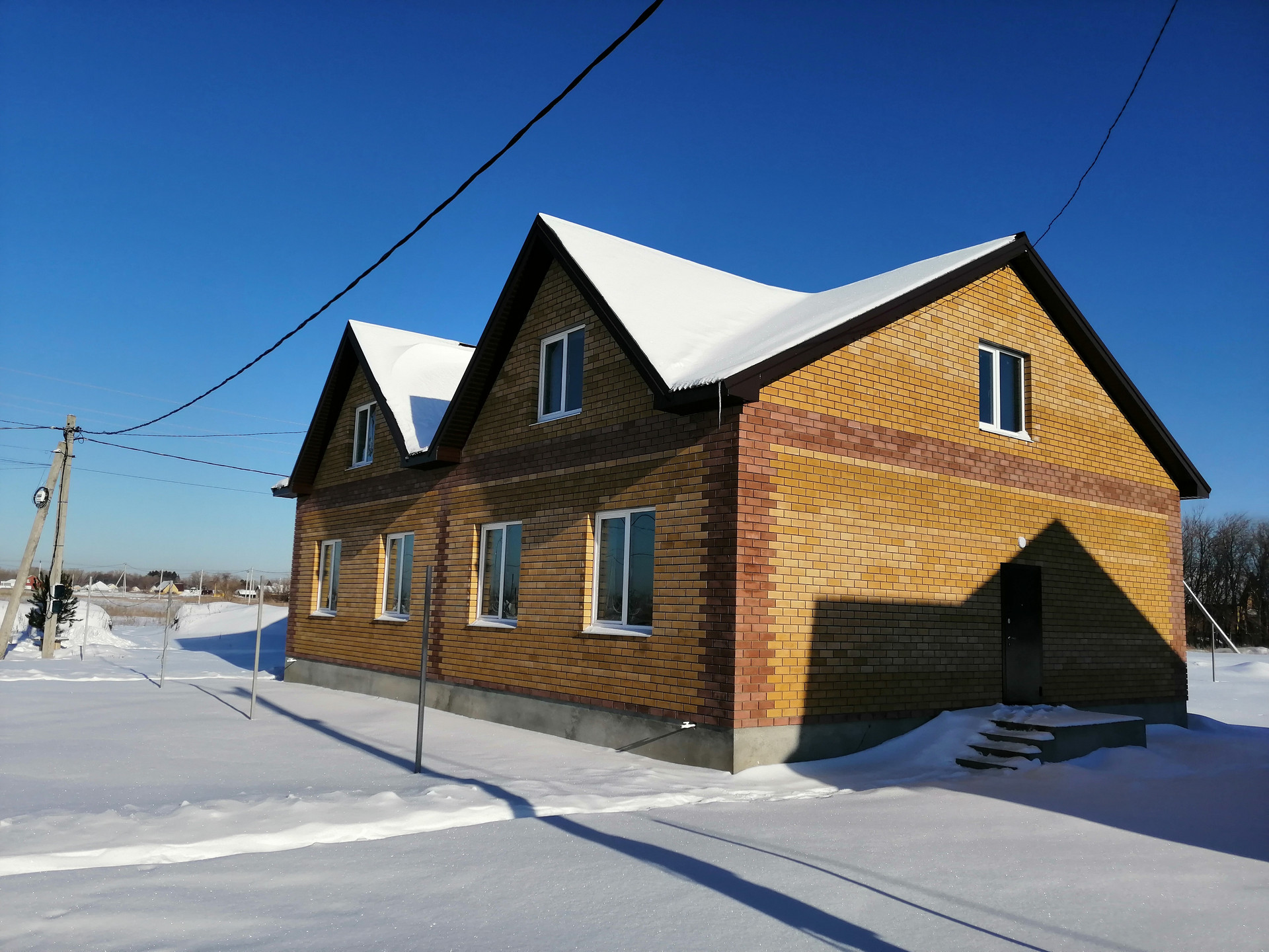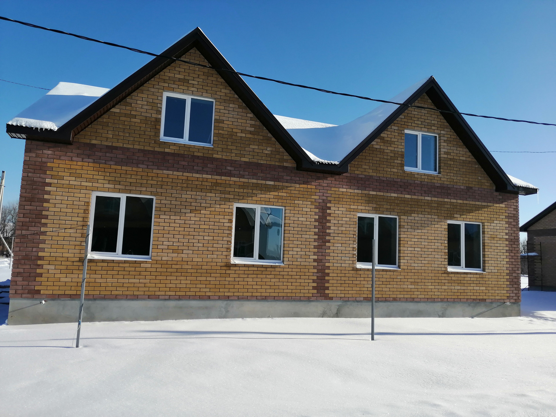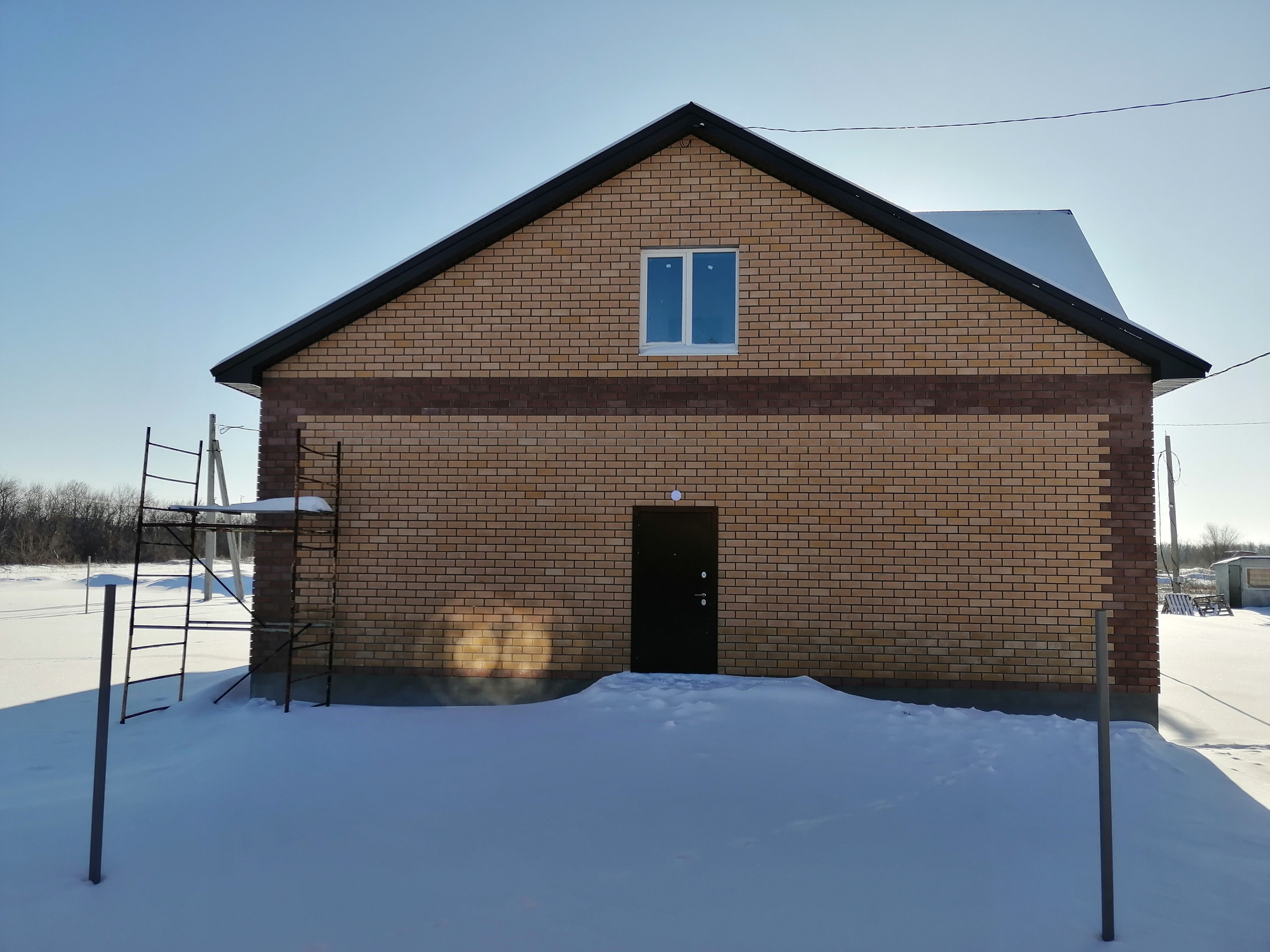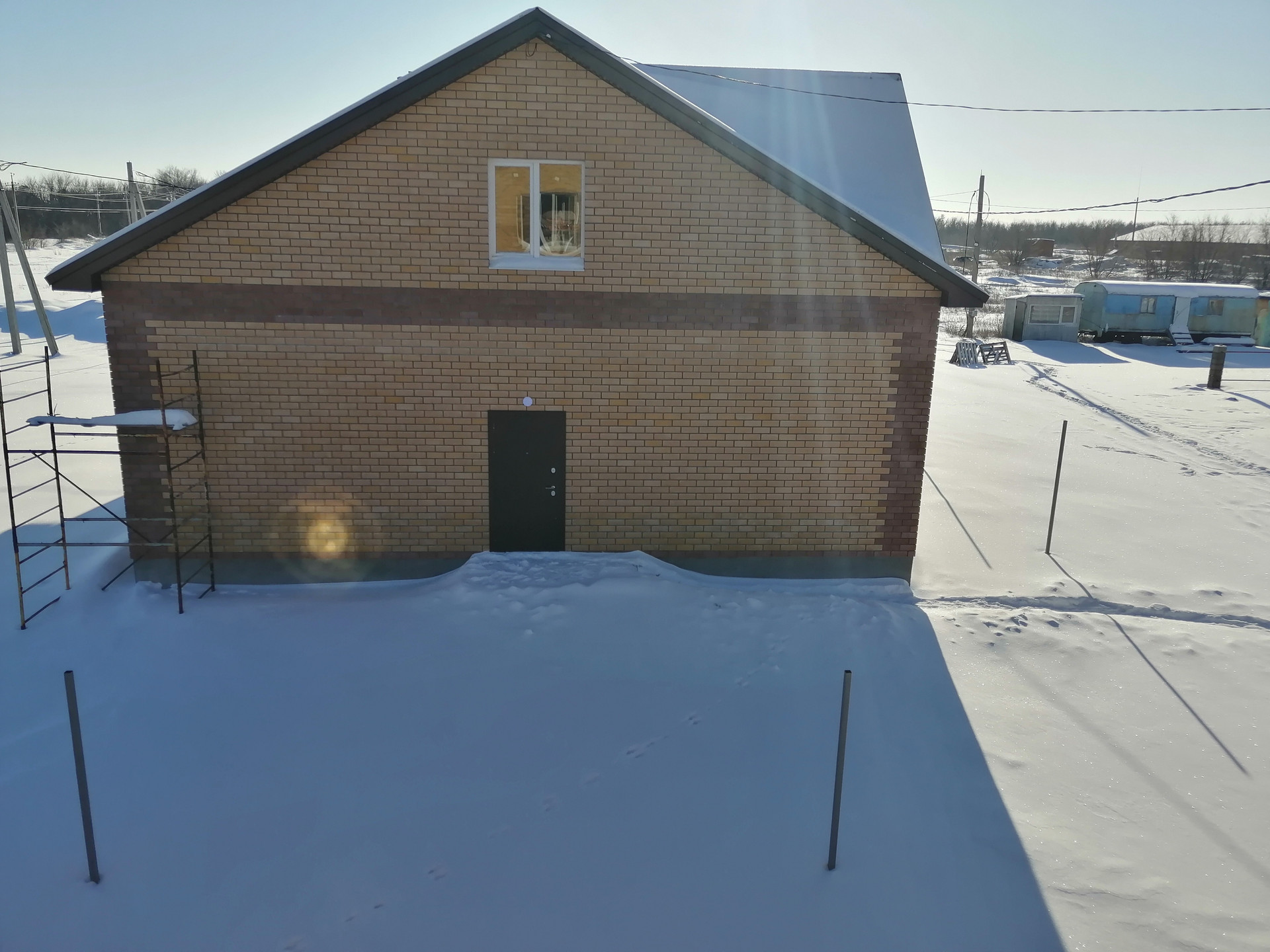 МАТЕРИАЛЫ: Построен из керамзитоблока 400 мм + утеплитель 100 мм + отделка фасада кирпичом. В качестве кровельного материала применяется профлист с утеплителем. Окна пластиковые, двойной стеклопакет.