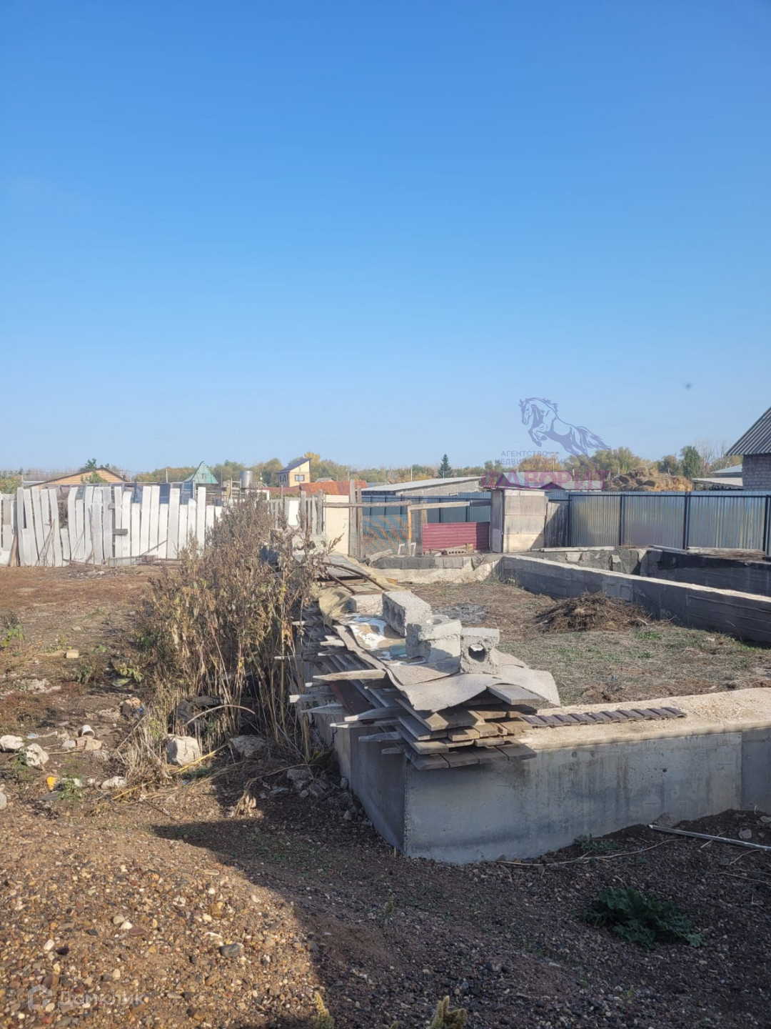 На участке залит фундамент под дом ( при желании можно убрать) ,имеется скважина, канализация септик.