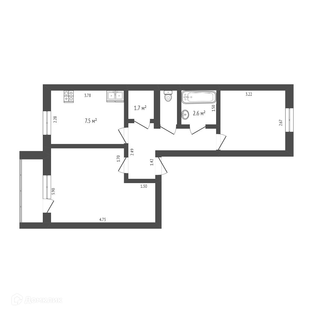 Площадь кухни 7.5 м2
