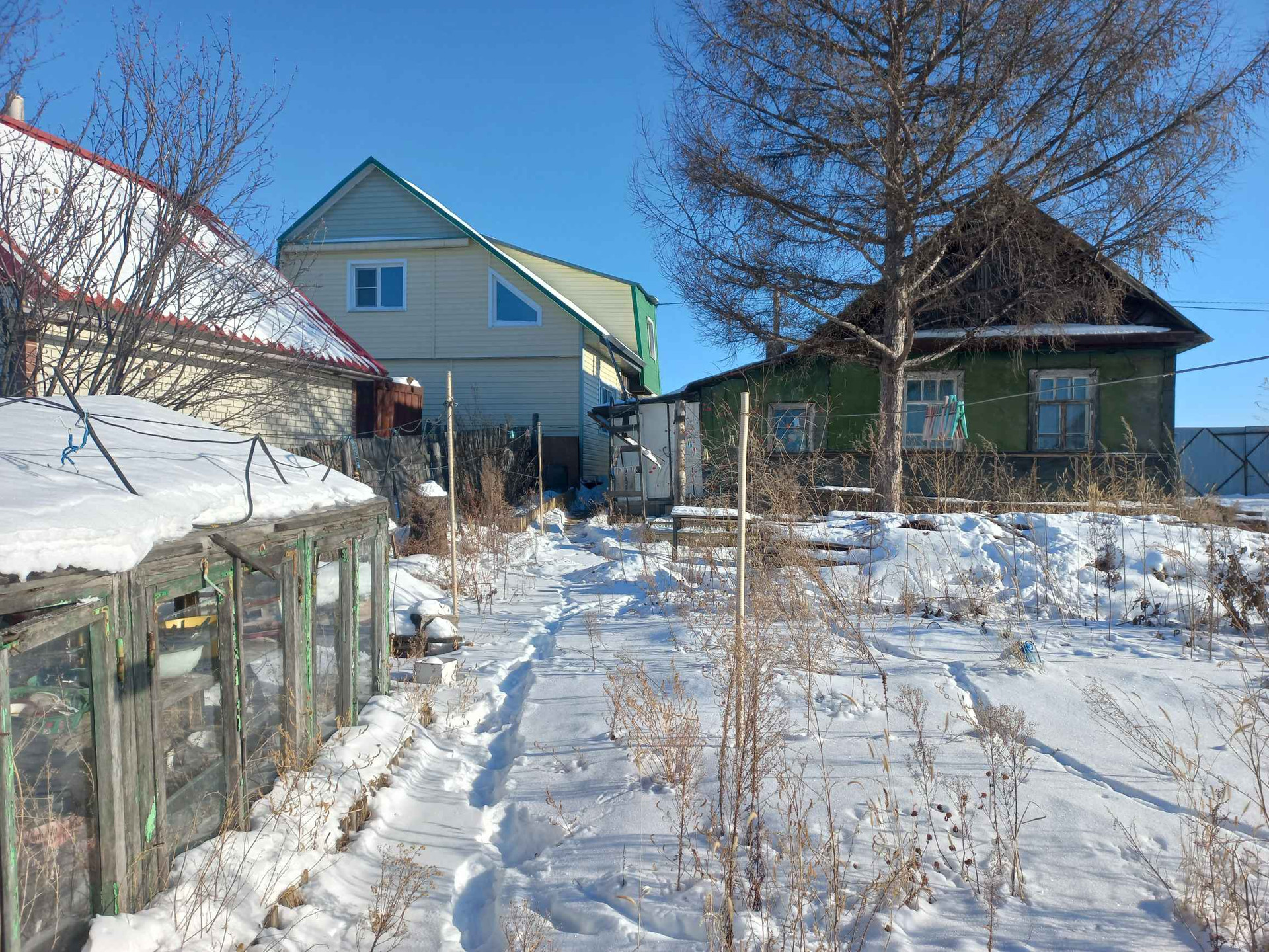 Участок 14 соток, забор, ворота, рядом с воротами по улице колодец с водой 5 метров. Теплица 2#8 из поликарбоната (заводская).