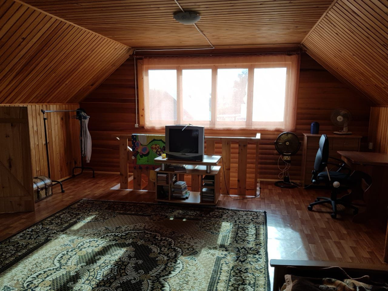 На первом этаже две комнаты и кухня. На втором одна большая свободной планировки.