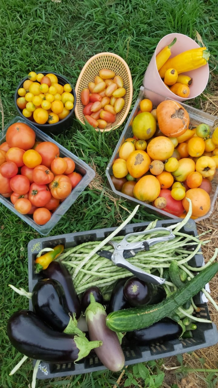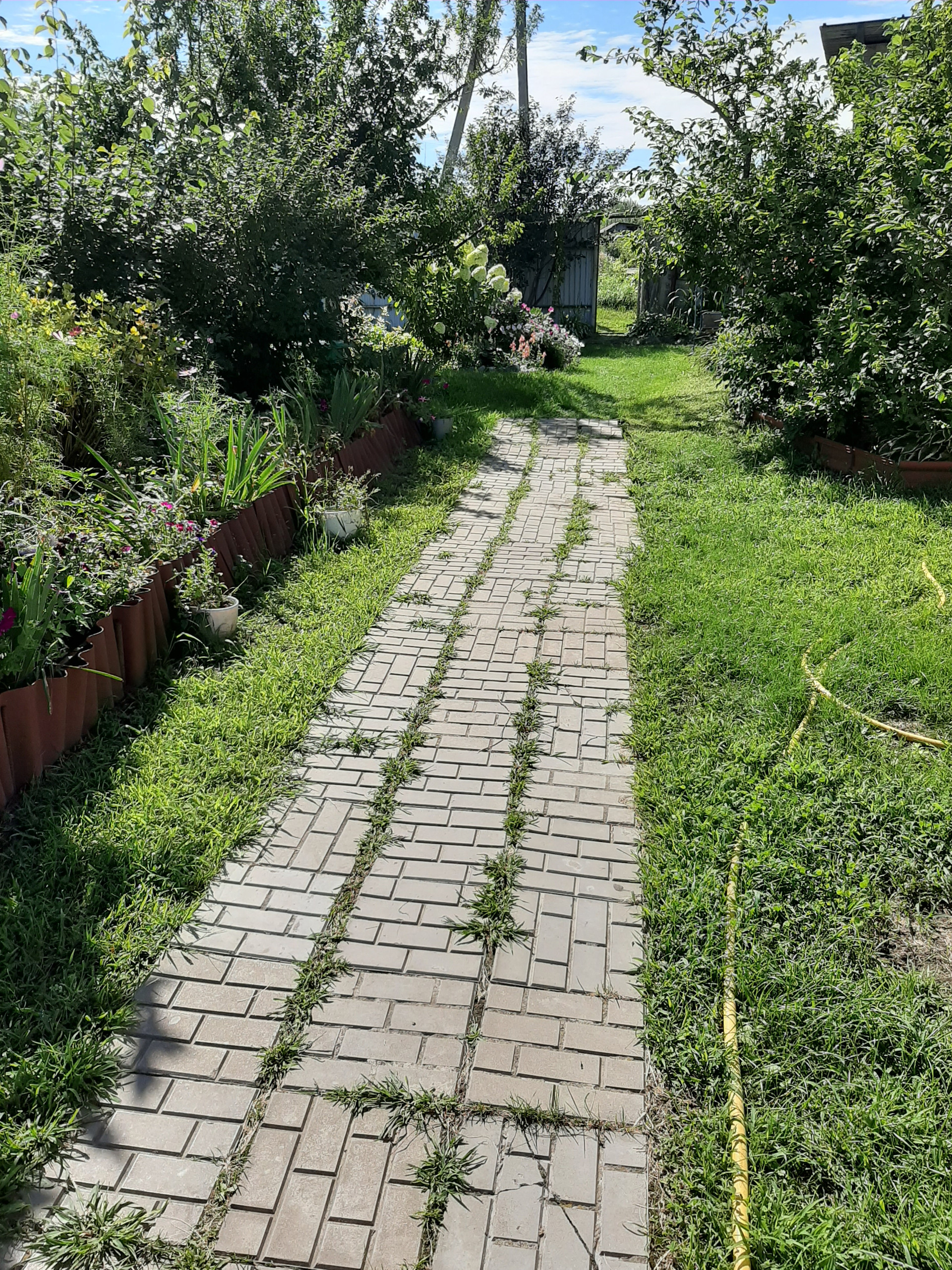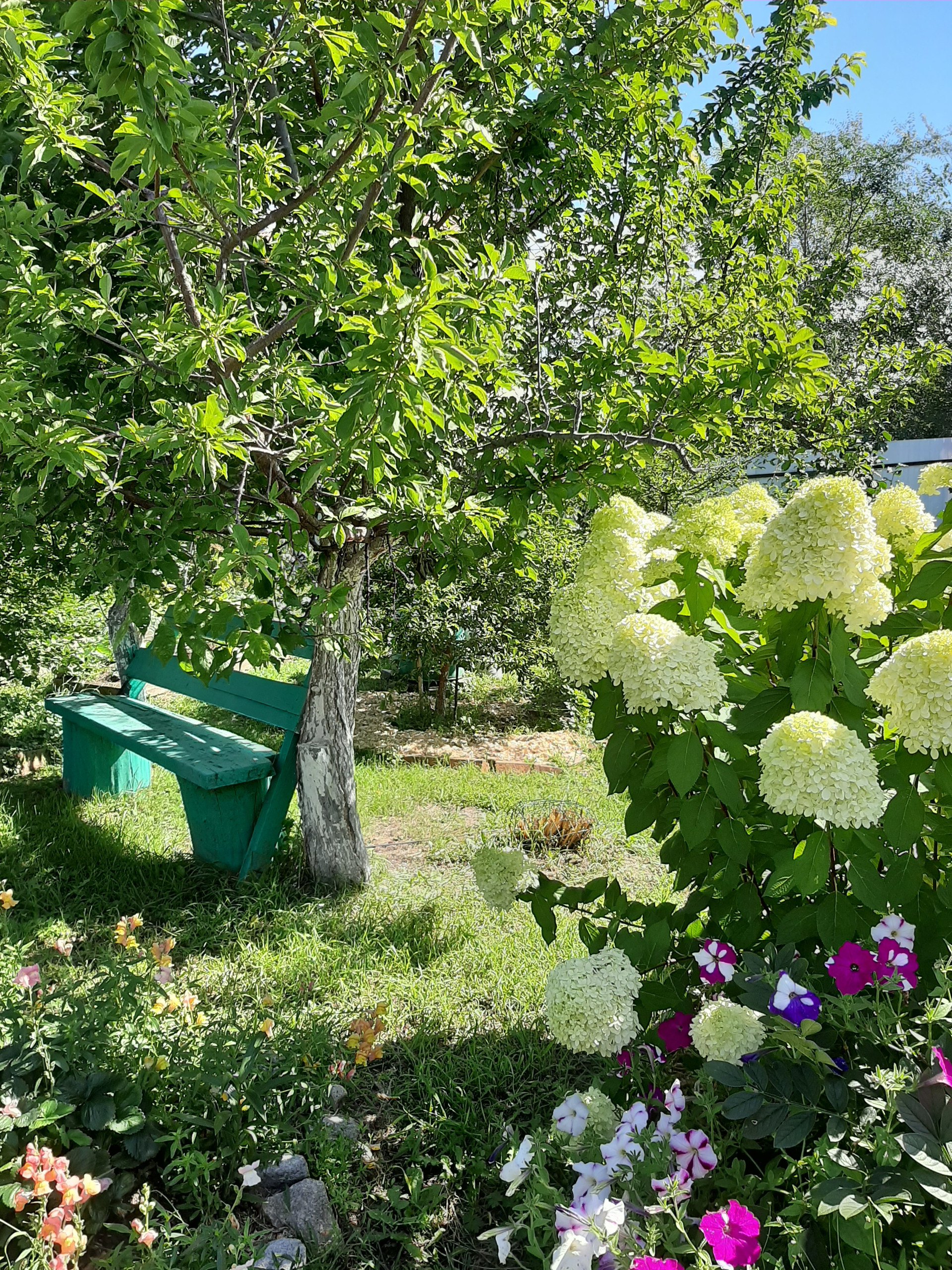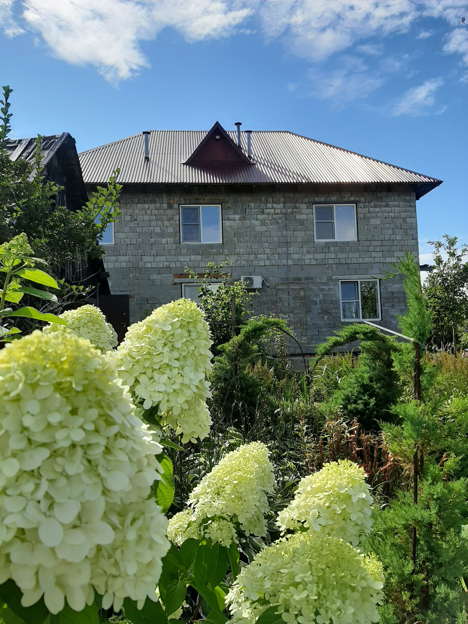На участке большой сад с яблонями разных сортов, взрослые кусты жимолости, смородины (чёрной, белой, красной и розовой), виноград так же разных сортов, сливы, абрикосы и клубника.