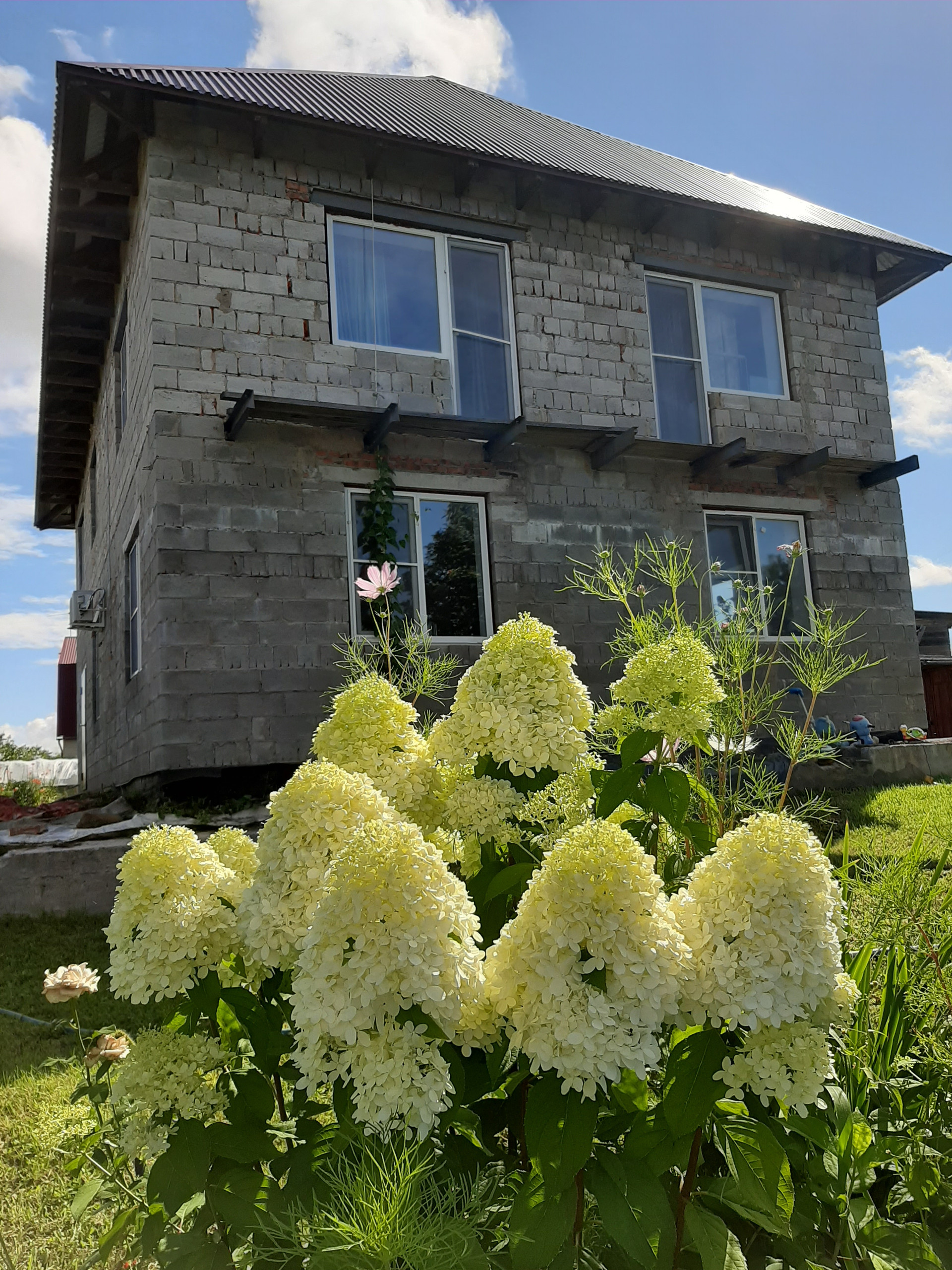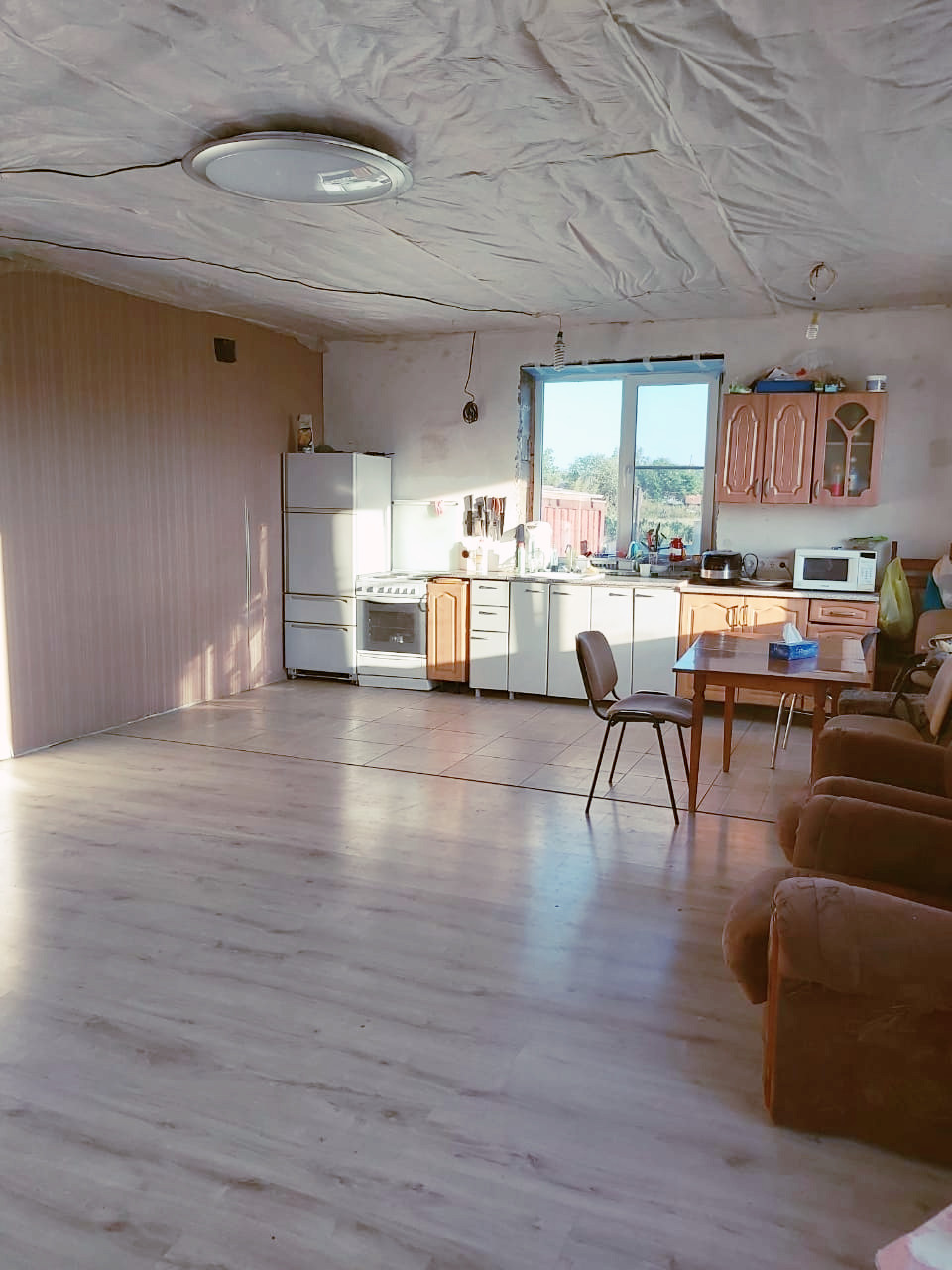 Коммуникации: Скважина (вода пригодная для употребления), водопровод (насосная станция Wilo), горячая вода (бойлер Аристон на 150л.), автономная канализация на большую семью 8-10чел.,