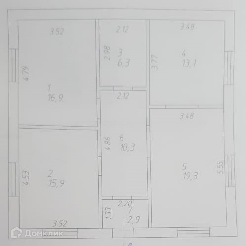 Общая площадь дома 85 кв.м., большая кухня  гостиная 32.4 кв.м., две жилые комнаты по 16.9/15.9 кв.м., санузел совмещенный 6.3 кв.м.