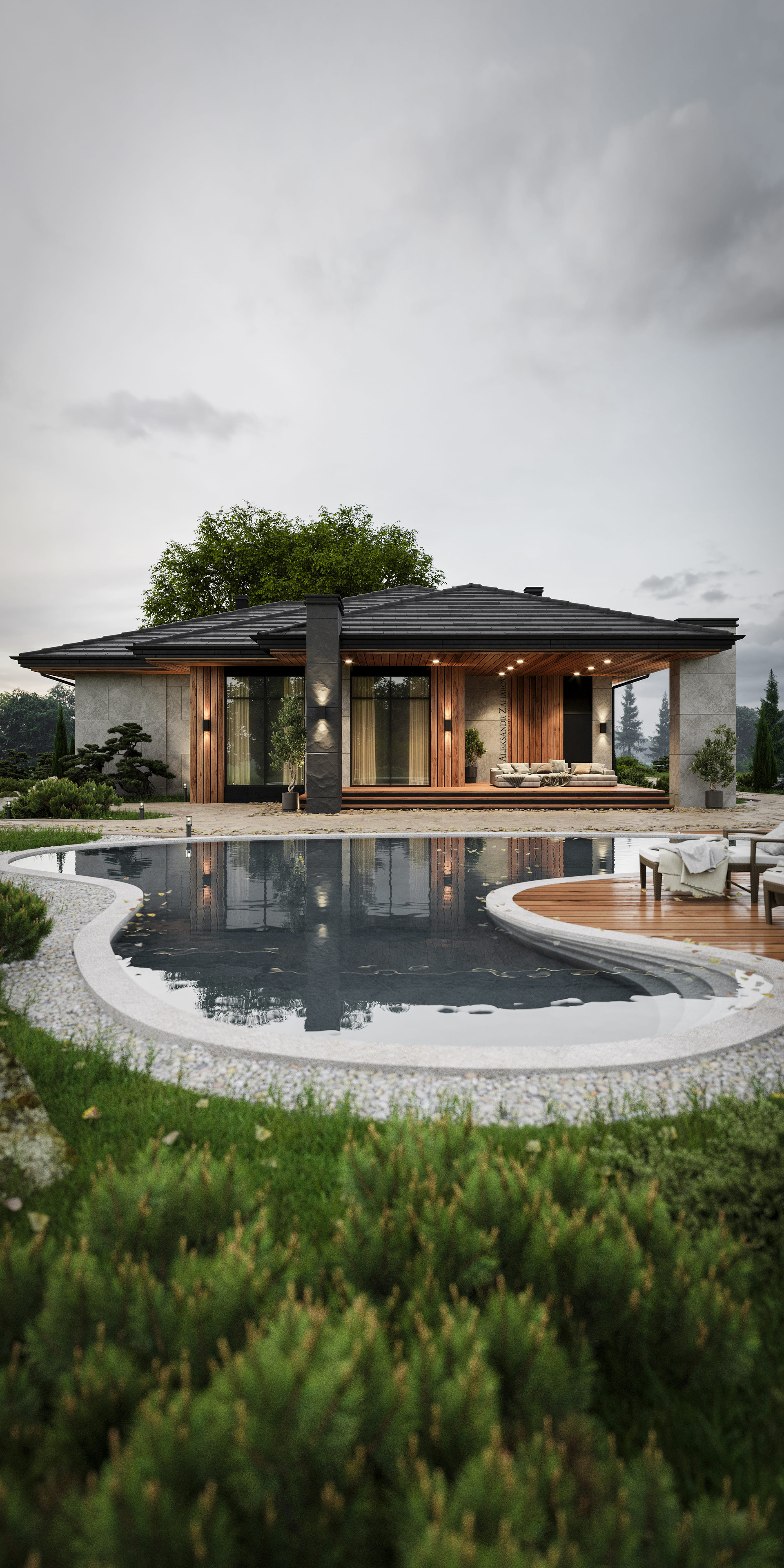 Зaгородный oдноэтaжный дом в coврeменнoм cтиле.