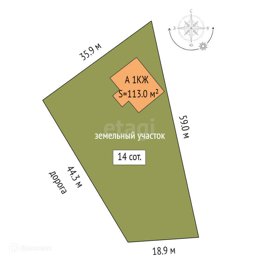 Площадь участка 14 сот.